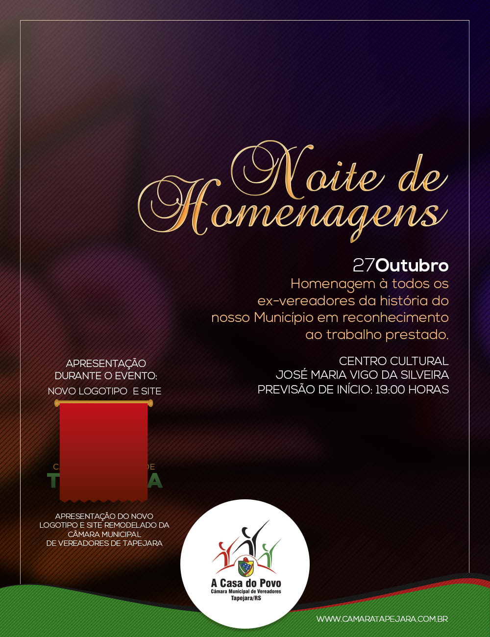 Durante o evento será apresentado à todos os presentes e internautas a nova identidade visual do Poder Legislativo de Tapejara, renovada e moderna, juntamente com o novo portal de informações na internet; novo layout, novas funcionalidades, um site novo, tornando-o mais prático em sua navegação para obter informações de interesse popular dos trabalhos de legislar o Município.