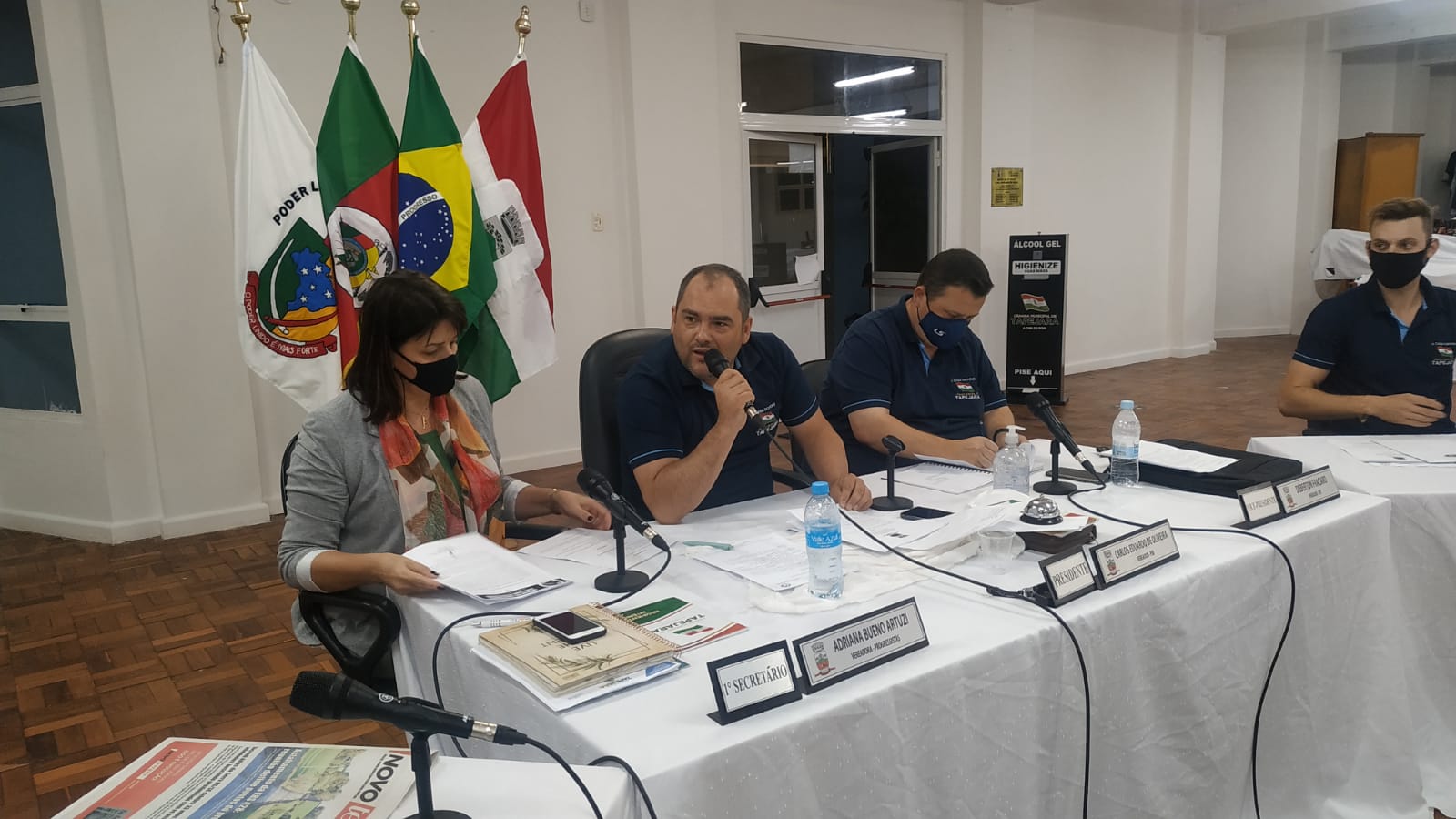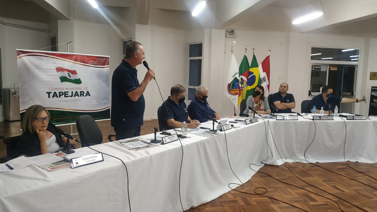 A próxima Sessão Ordinária acontecerá na segunda-feira, dia 04 de outubro, às 20:15 h. Comunicamos que está liberada a entrada do público de no máximo 14 pessoas. A sessão será transmitida ao vivo pela Rádio 101.05 Tapejara, e pela live na página do facebook. A sessão do Legislativo está sendo feita de modo temporário em anexo ao salão da Terceira Idade no Centro Cultural.
