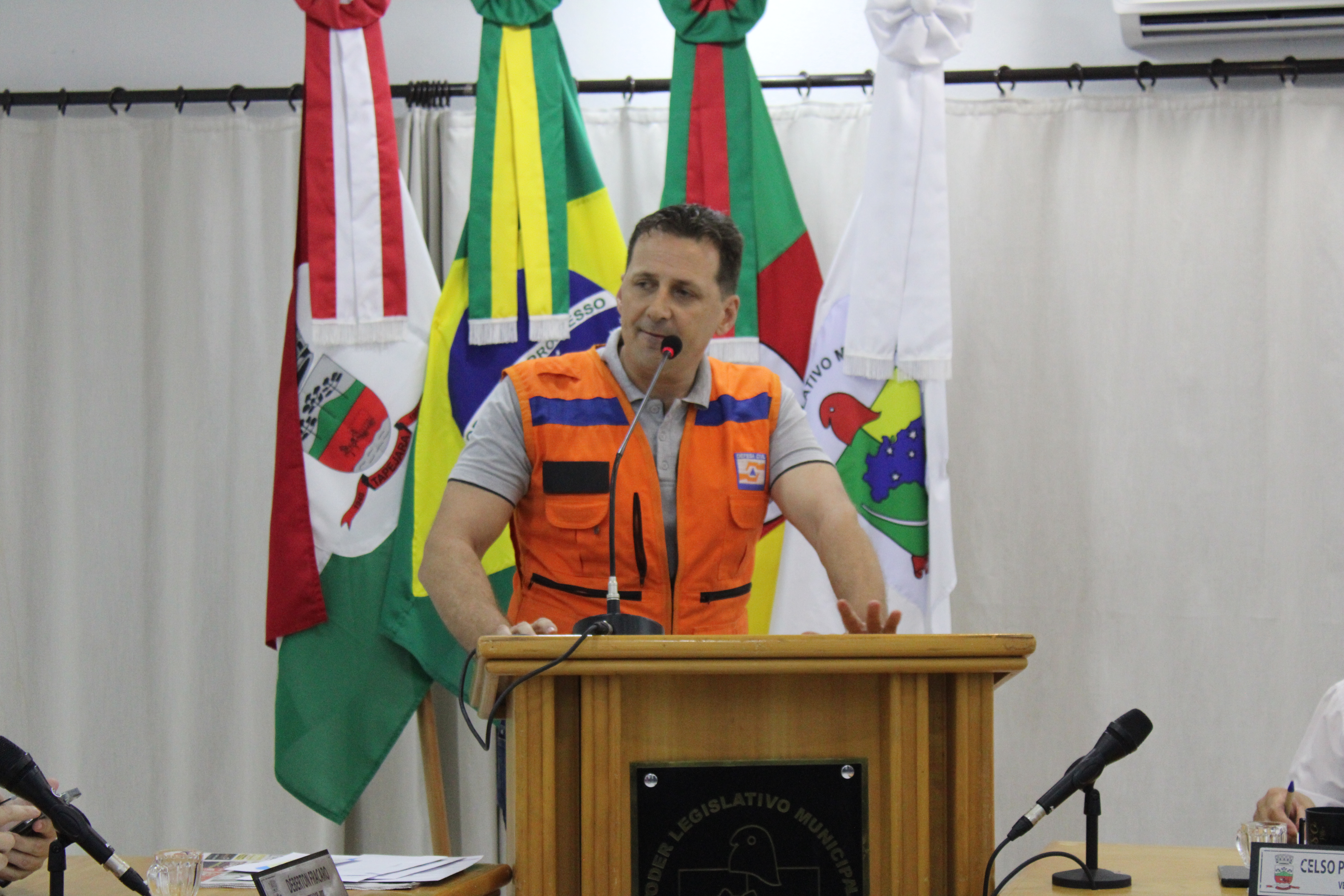 A convite da mesa diretora, utilizou a Tribuna o Coordenador da Defesa Civil Municipal Diego Girardi que destacou as demandas e necessidades enfrentadas dos atingidos pelas cheias.