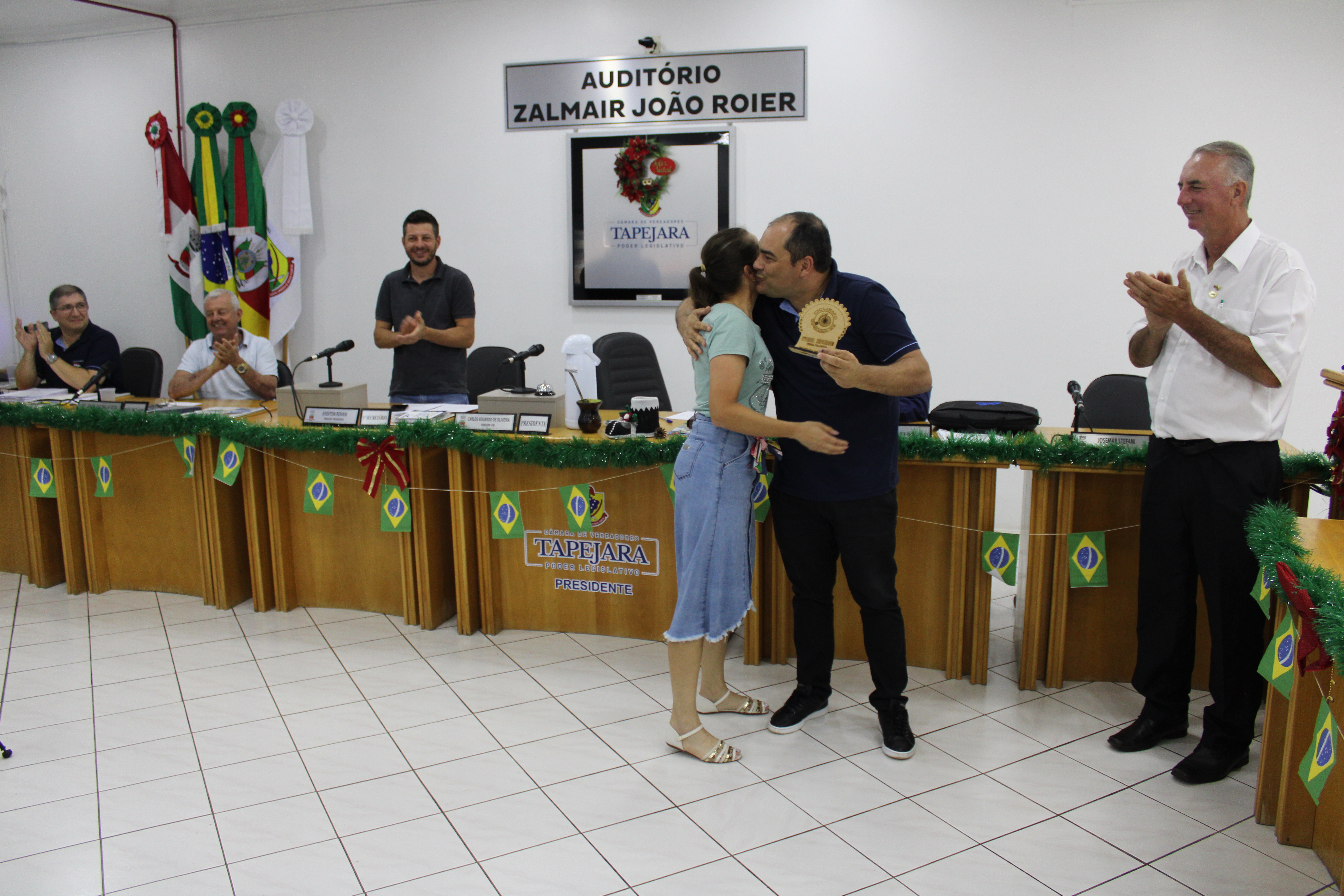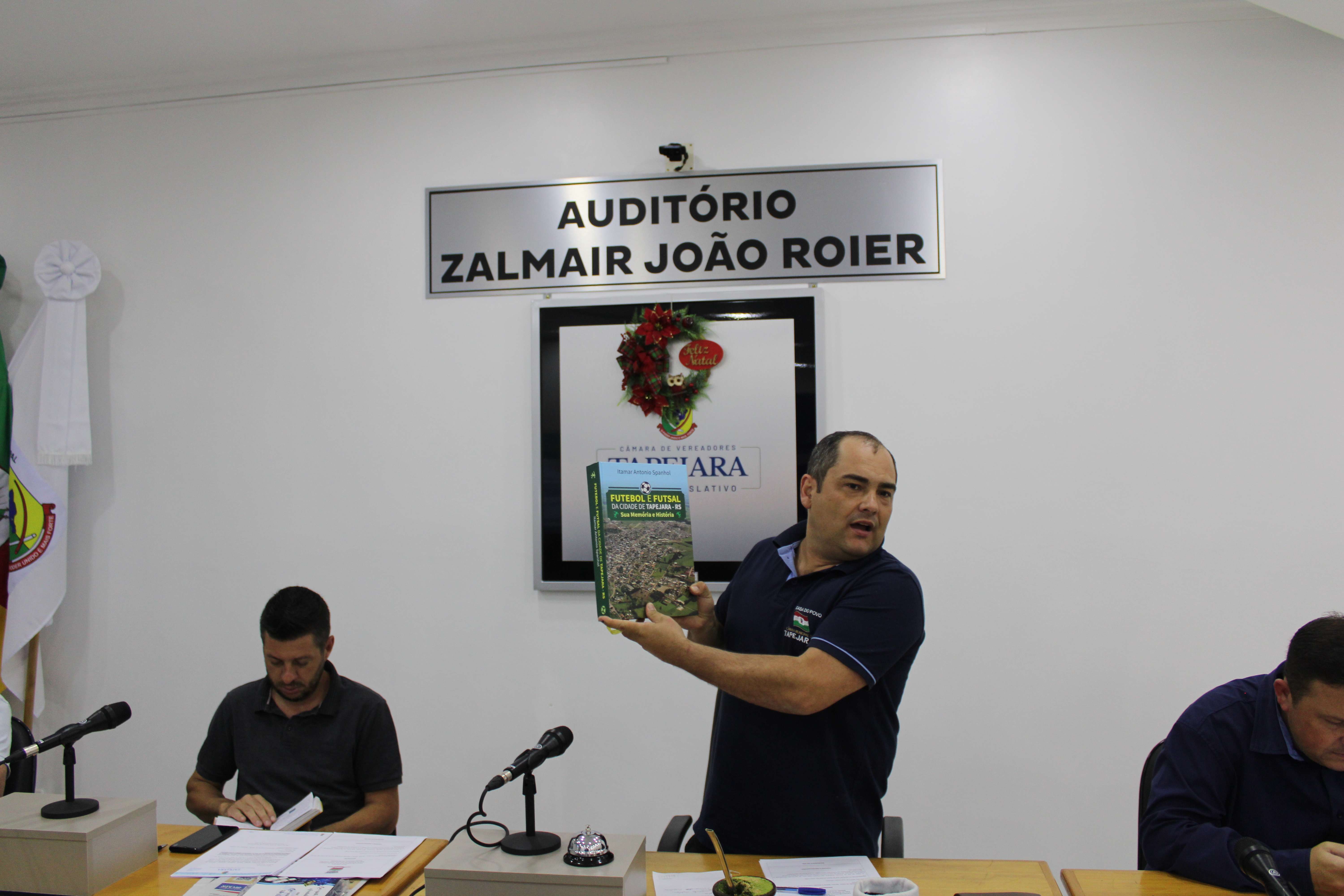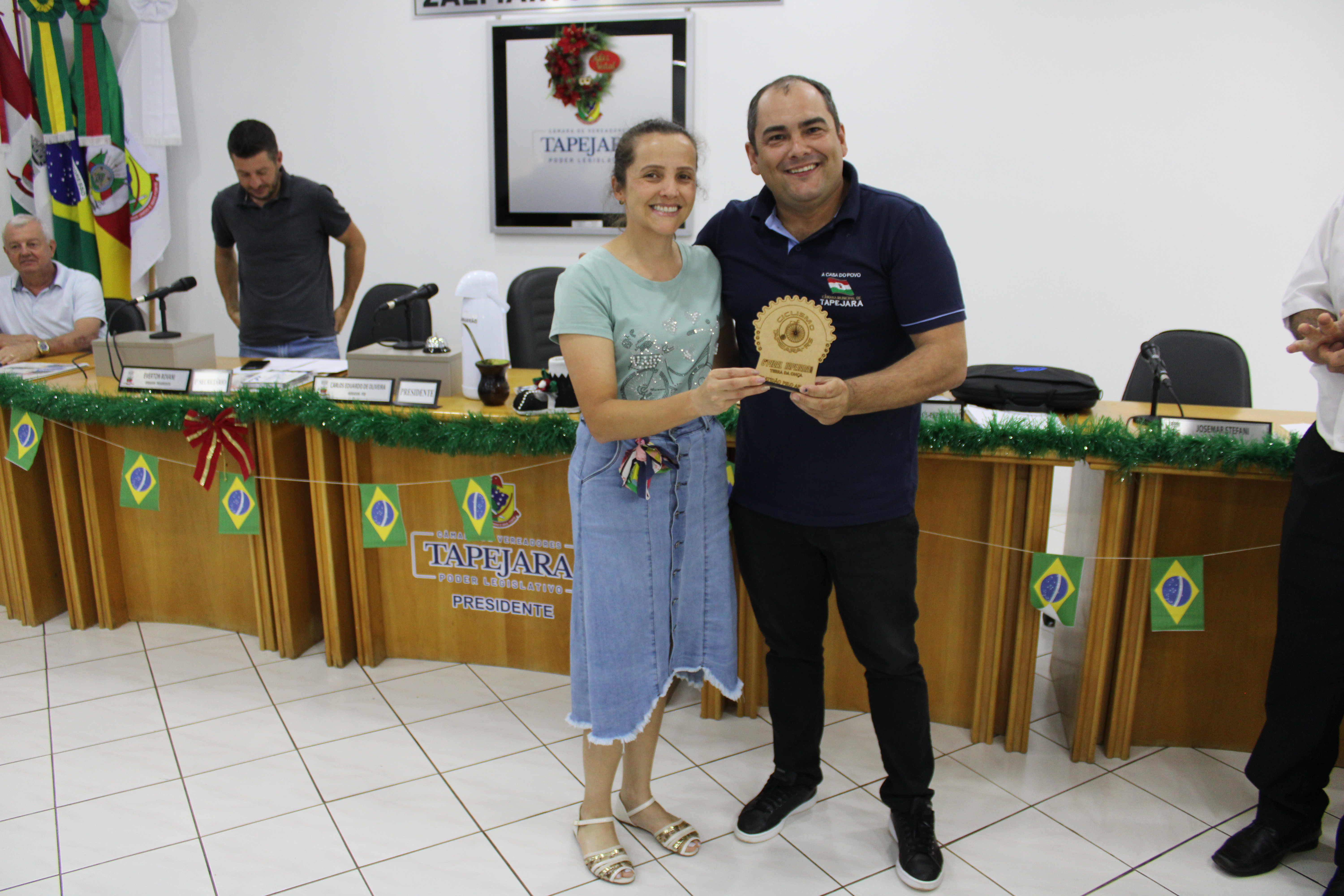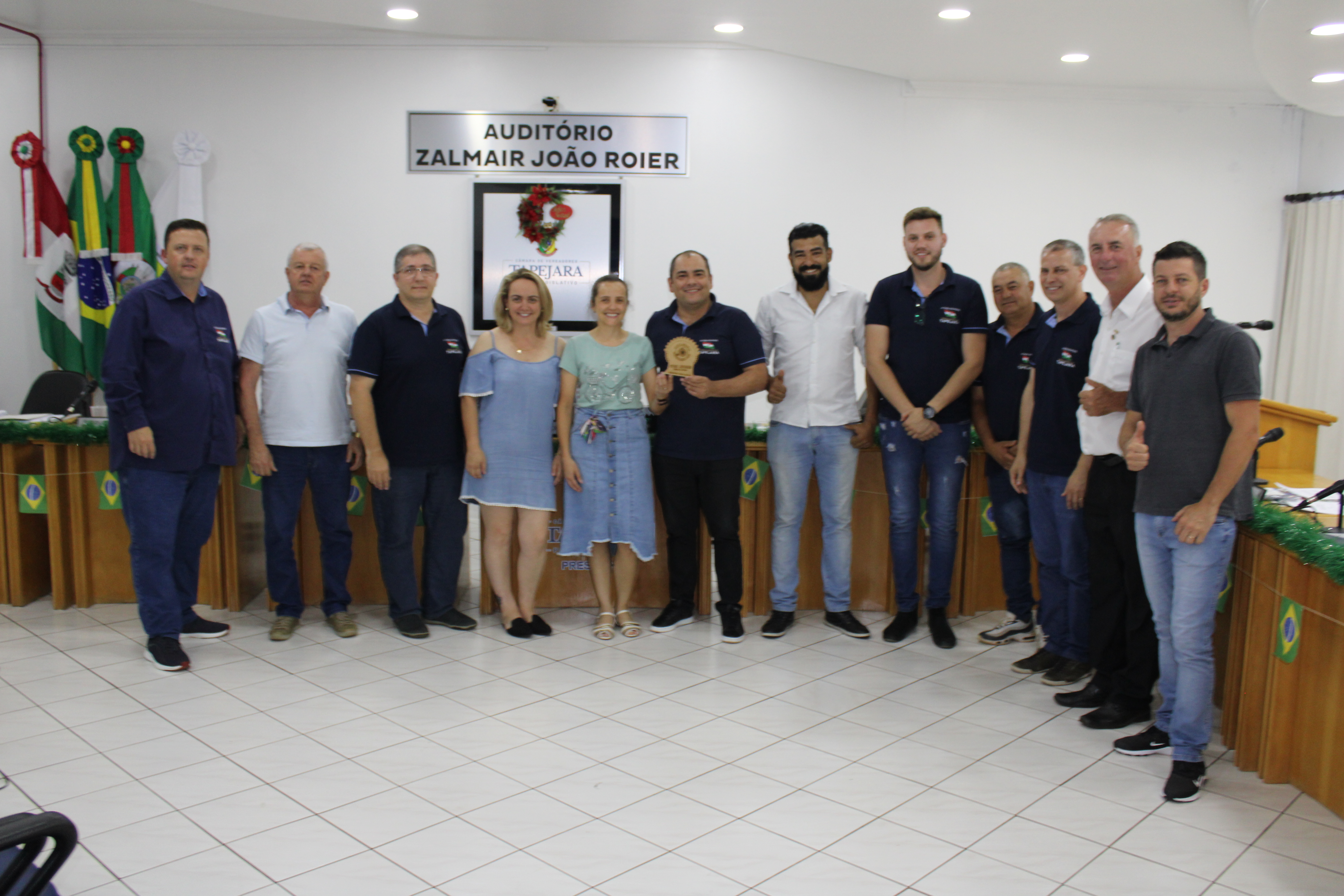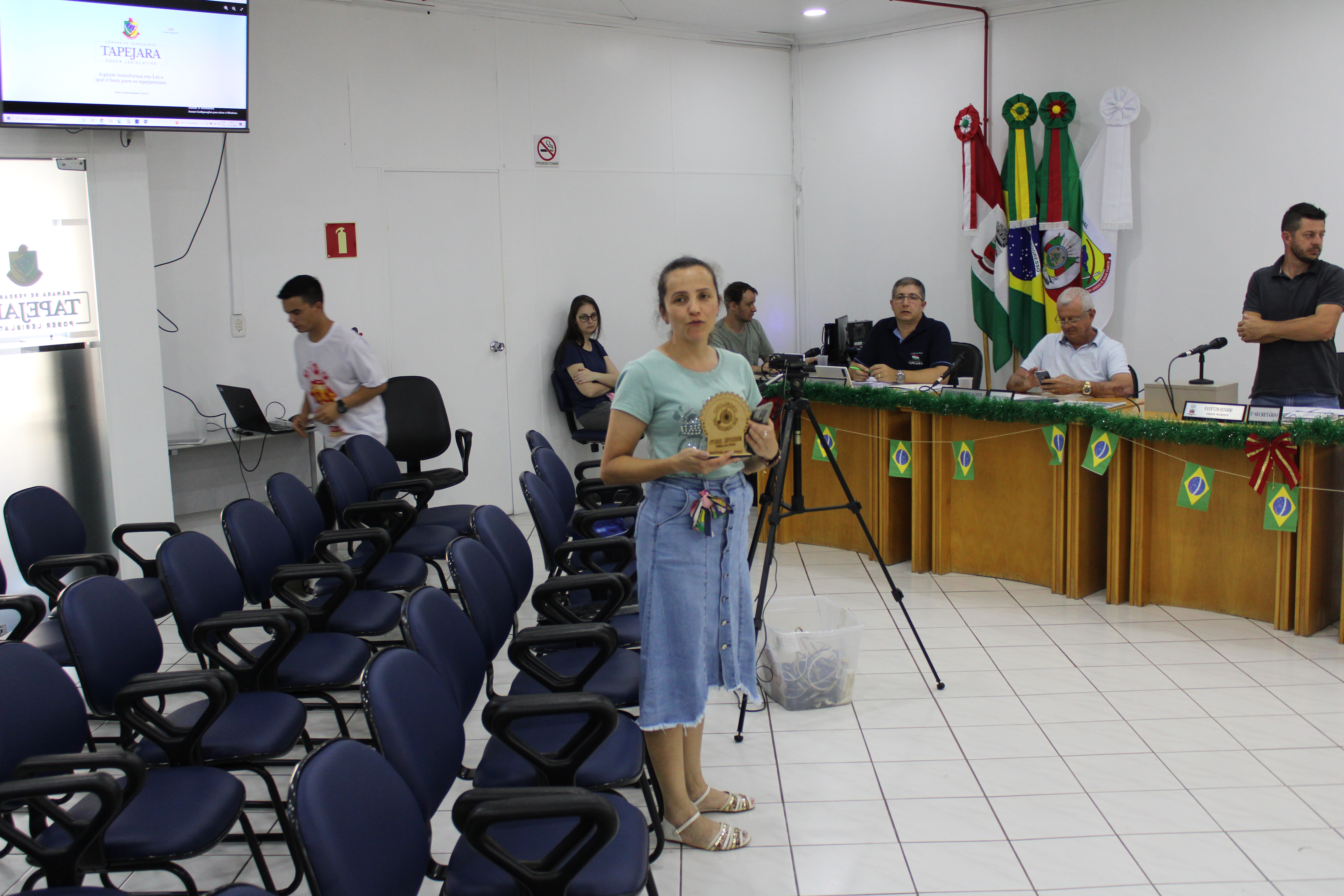 O Presidente Carlos Eduardo de Oliveira recebeu antes de iniciar os trabalhos legislativos a presidente do Grupo de Ciclismo Tapejara Edna Pereira, que esteve no plenário agradecendo o apoio e entregando um troféu referente a sexta edição do Pedal Tapejara que foi realizado no mês de setembro.