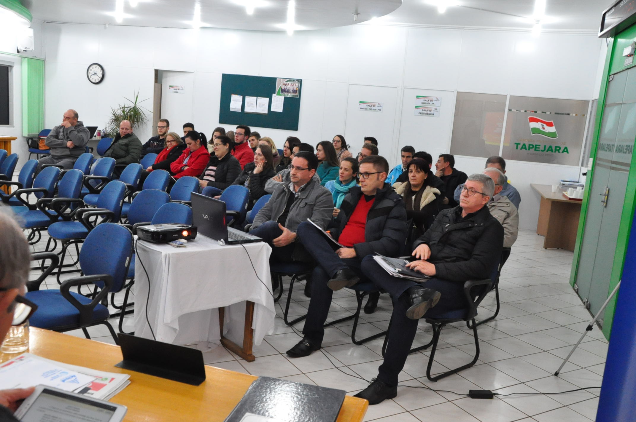 Os projetos nº 062/2019 e nº 064/2019 foram votados em Regime de Urgência. Durante a noite, participaram da sessão representantes: da Acisat, da JCI, do Espaço Gestão, da Expo Tapejara, do COMDICAT, da empresa Cimisa, da empresa Forplast Plásticos e a comunidade tapejarense.