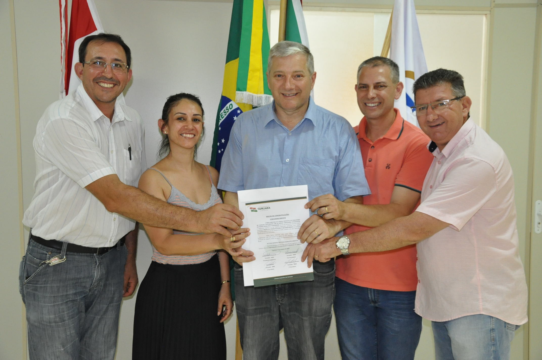 A Câmara Municipal de Tapejara por meio do presidente Altamir Galvão Waltrich (MDB), do vice-presidente, Volmir Danelli (MDB) e do vereador Gilberto Scariot (PSB) entregaram na tarde de hoje, segunda-feira 30), duas Moções de Congratulações e Reconhecimento.