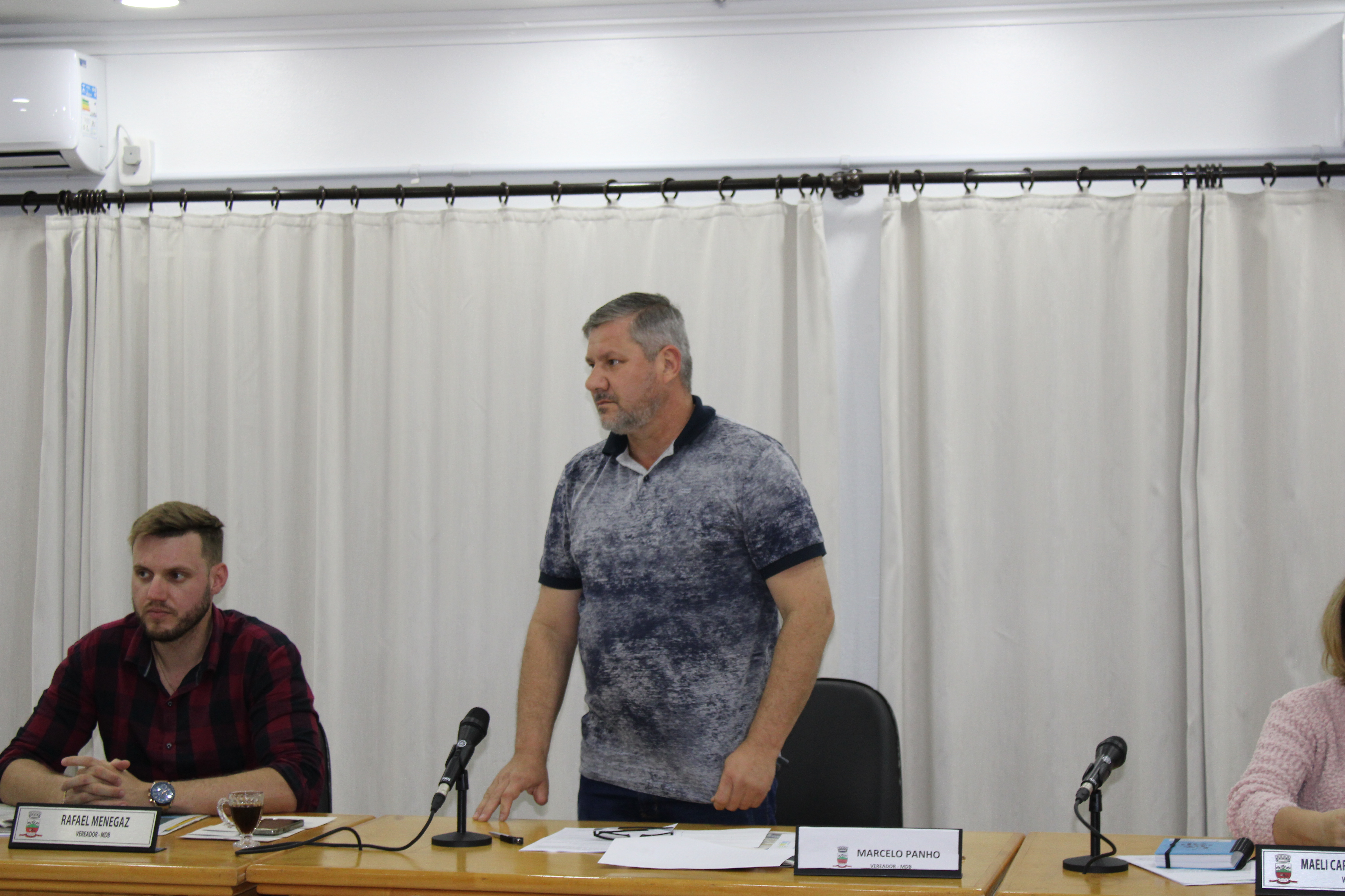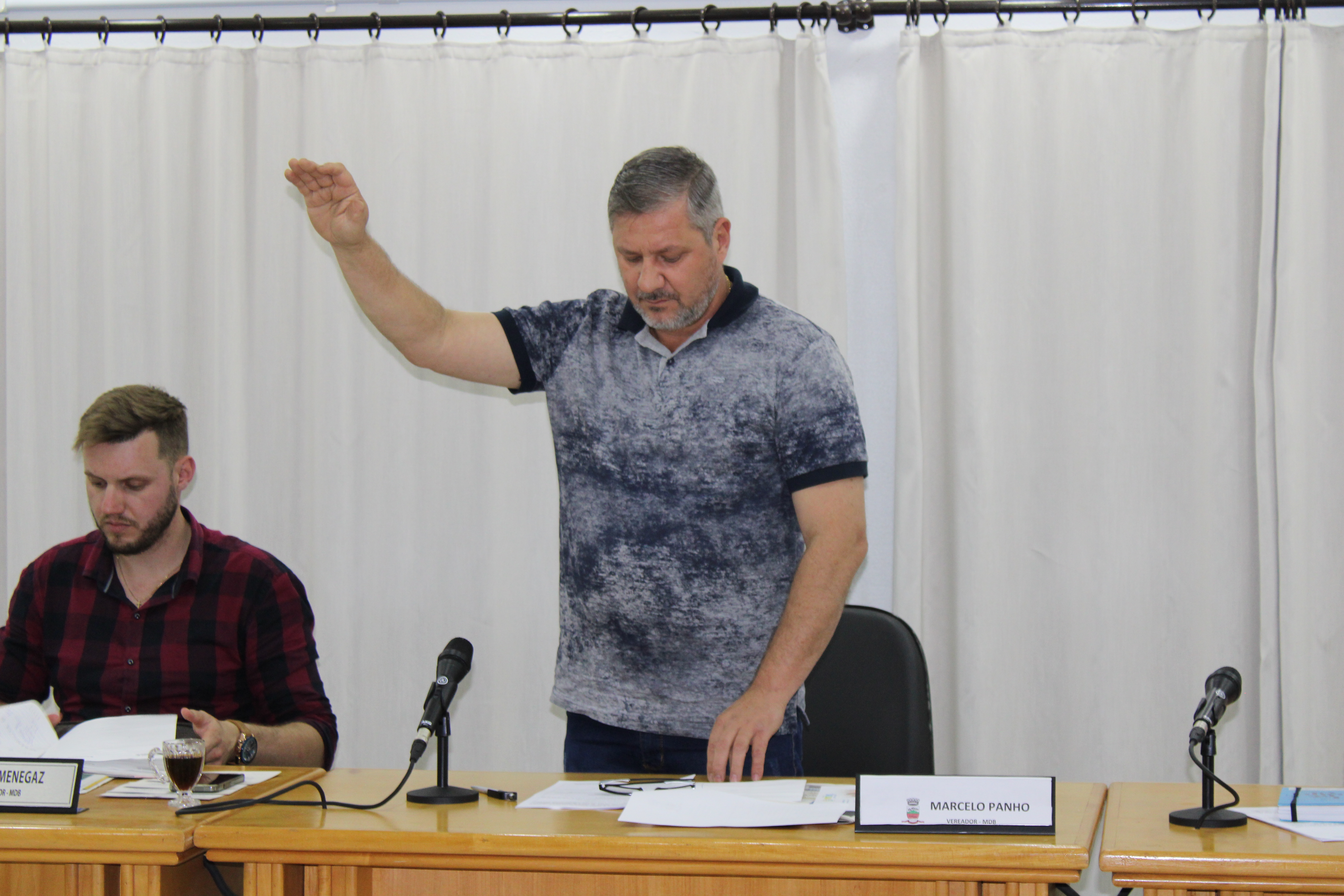 No inicio dos trabalhos, comunicou ao Plenário que em 05 de agosto o Vereador Altamir Galvão Waltrich, do MDB, pediu afastamento de suas funções, pelo período de 31 dias, a iniciar-se no dia 15 de agosto. Foi providenciada a convocação do 1º Suplente da Bancada Sr.ª Elizabete Favaretto, que apresentou justificativa justa não podendo assumir, em seguida Convocou-se o 2ª Suplente da bancada, Sr. Hugo Dalposso que também apresentou justificativa justa não podendo assumir, passando-se a convocar o 3º Suplente da Bancada do MDB, Sr. Marcelo Panho, ao qual tomou posse e fez o juramento.
