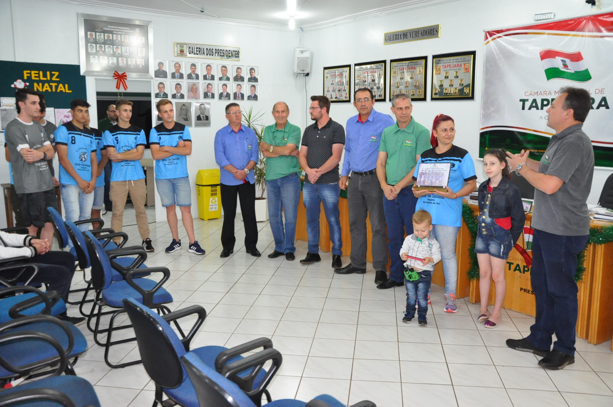O Legislativo Tapejarense, homenageou a equipe de futsal masculina e a professora e treinadora Valéria Langaro