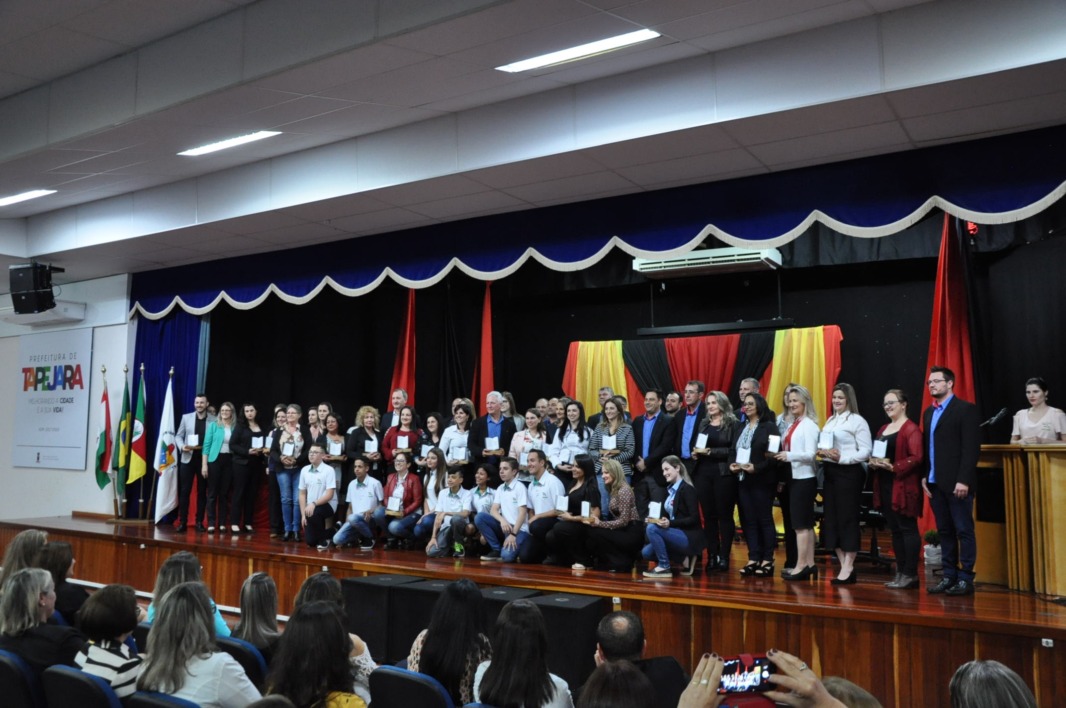 Uma noite de alegria, comemorações e agradecimentos. Assim foi a Sessão Solene de homenagens, promovida pela Câmara de Vereadores, nesta quarta-feira, dia 16 de outubro, no Centro Cultural José Maria Vigo da Silveira. O objetivo do evento foi homenagear profissionais da educação de instituições de ensino do Município de Tapejara.