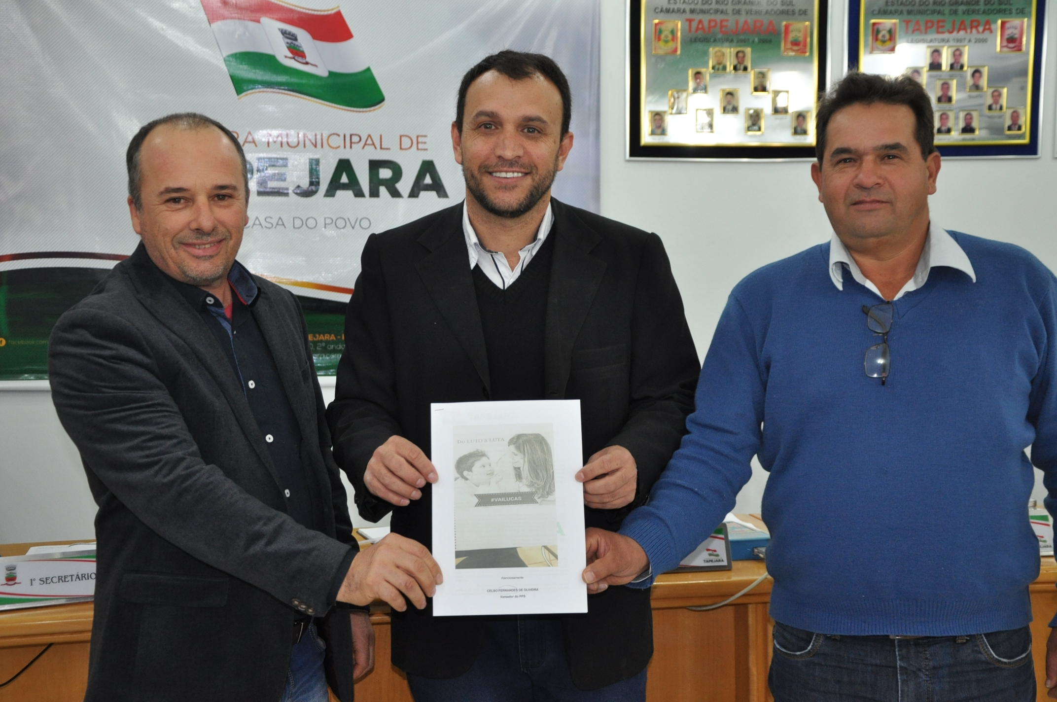 Participaram da sessão o Sr. Marcos Bacega, Vice-Prefeito e Secretário da Saúde de Tapejara, juntamente com alunos e professores da Escola Severino Dalzotto. Também estiveram participando da sessão o Sr. Campolim Pereira Ramos, Presidente da Câmara de Vereadores de Tupanci do Sul e o Sr. Nildo Pelisser, Presidente da Câmara de Vereadores de Santo Expedito do Sul que vieram conhecer o Projeto “VAI LUCAS”, implantado pelo vereador Celso Piffer.