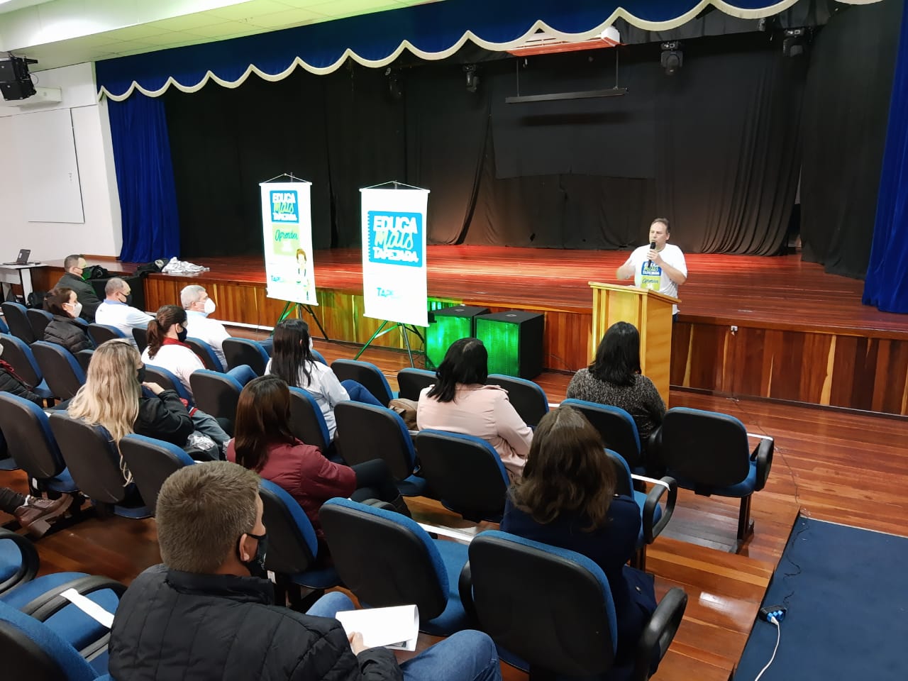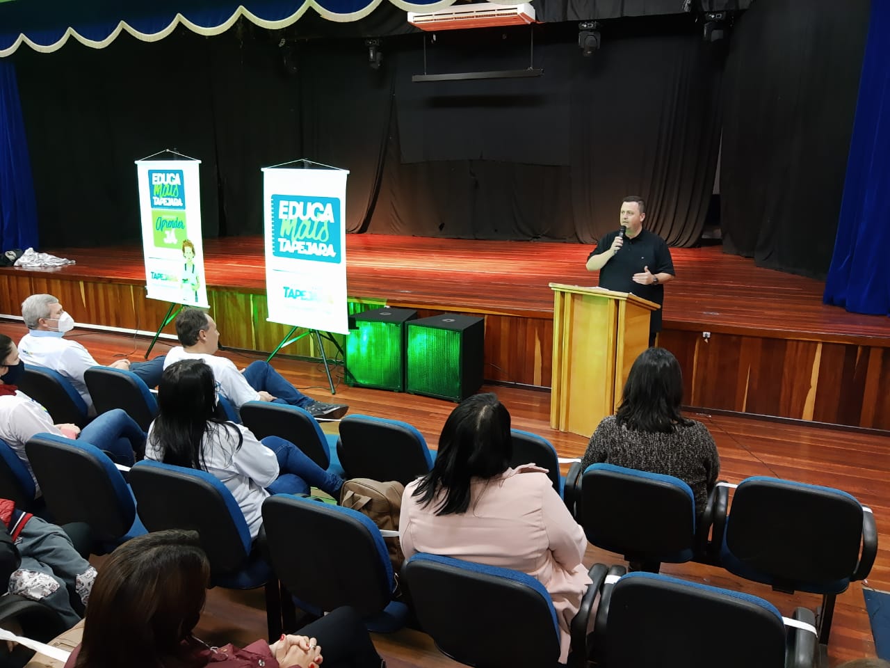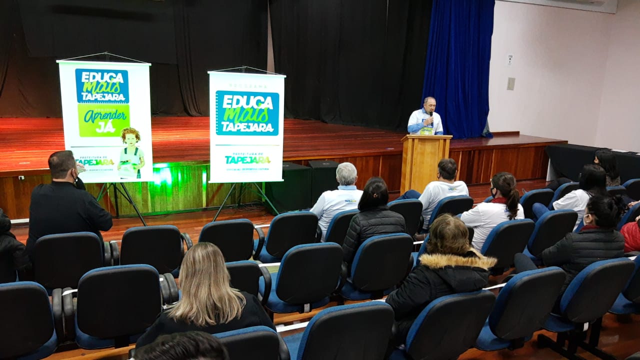 No final da tarde de sexta-feira dia 25 aconteceu no auditório do Centro Cultural de Tapejara, o lançamento do projeto “Aprender já”, que busca recuperar as aprendizagens que foram prejudicadas pela pandemia da Covid-19 e garantir o direito de alfabetização a todos os estudantes, além do levantamento feito pela equipe da educação, temos o aumento de matriculas das crianças estrangeiras, que precisam de maior atenção no ensino da língua Portuguesa. As aulas de reforço acontecerá no turno inverso em todas as escolas, os professores contratados puderam acompanhar o ato de lançamento.