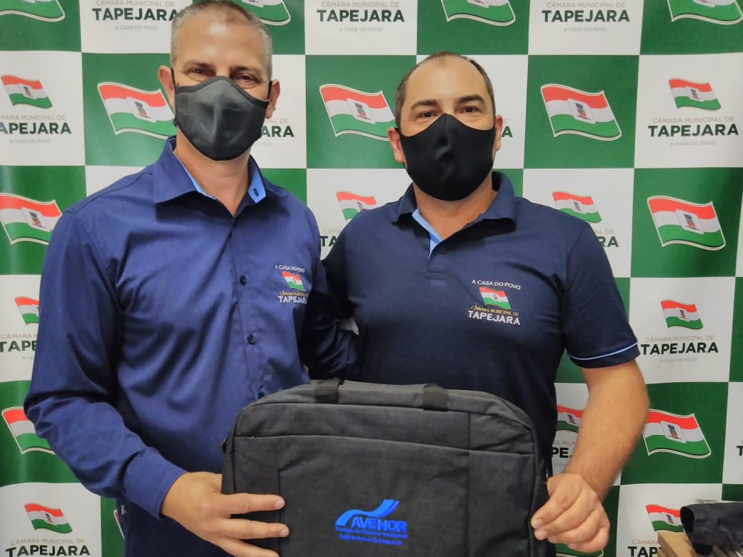 Os vereadores reuniram-se na noite de hoje, segunda-feira, dia 12/04, na Câmara Municipal de Tapejara para realizarem a 10ª Sessão Ordinária. Na ocasião foi feita a entrega pelo Presidente da AVENOR e também vereador do Município o Sr. Altamir Galvão Waltrich do (MDB), uma pasta para documentos de uso pessoal.