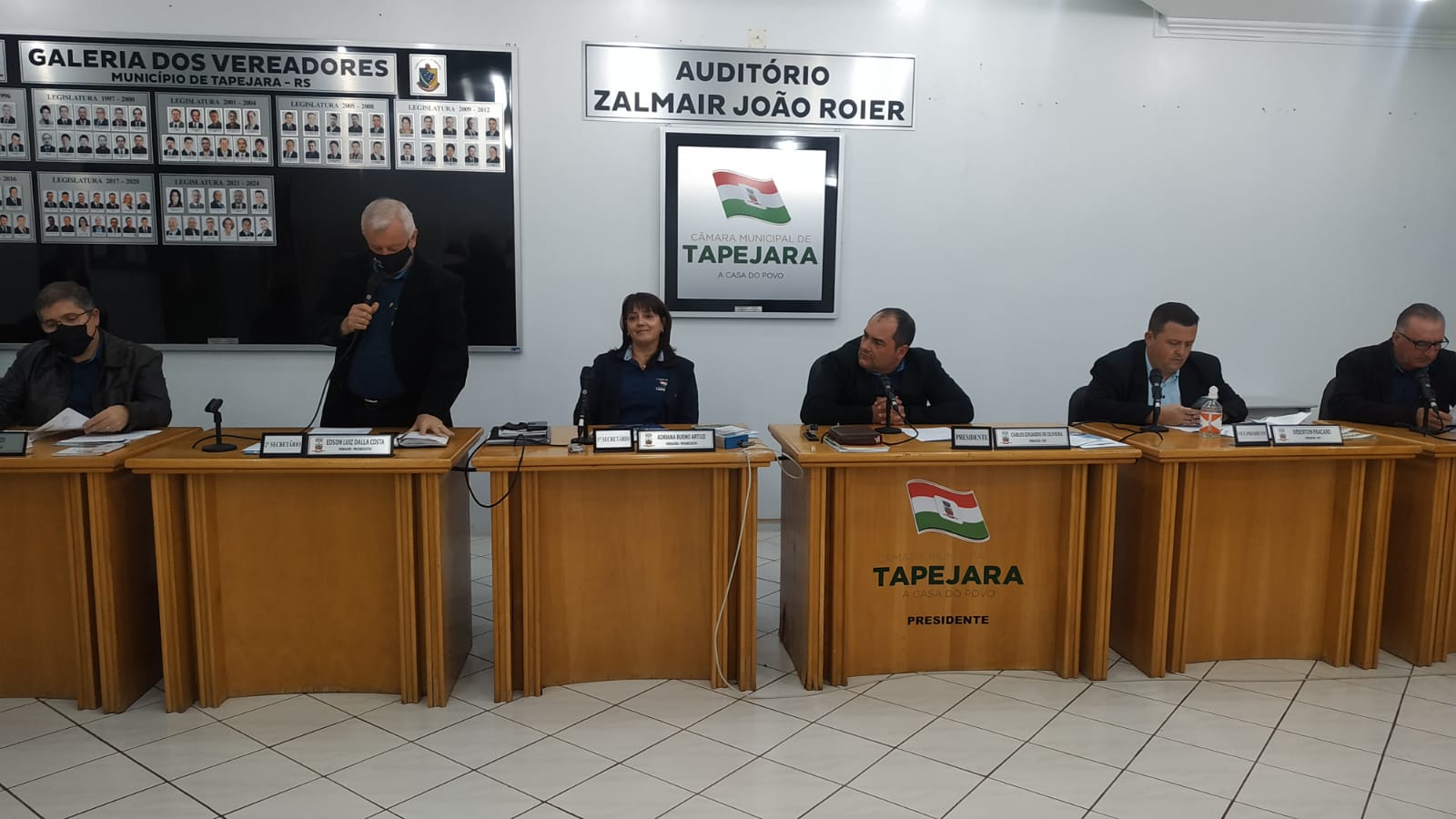A 23ª Sessão Ordinária da Câmara de Vereadores de Tapejara foi realizada ontem, segunda-feira 02 de agosto. Os vereadores apreciaram, votaram e aprovaram dois Requerimentos e dois Projetos de Lei do Executivo por unanimidade. Após a votação, os nobres Edis dirigiram-se para o auditório, onde aconteceu uma Sessão Solene alusiva a semana do Municipio, com homenagens aos 11 primeiros ex-pesidentes do Legislativo.