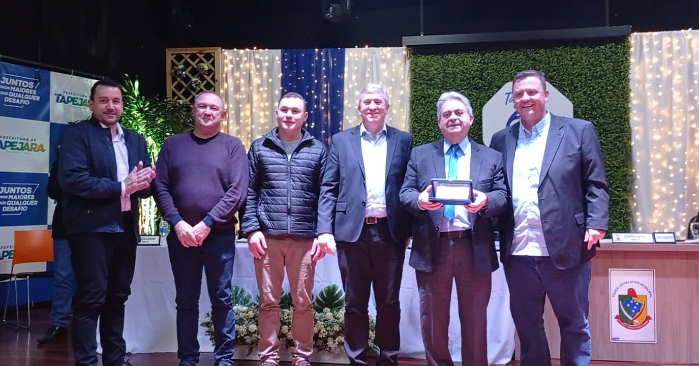 Além dos Vereadores estiveram compondo a Mesa de Honra da solenidade o Sr. Evanir Wolf – Prefeito Municipal, Sr. Rodinei Bruel – Vice Prefeito, o Dr. Johnny Dorval Zoppas – Homenageado da Honraria, o Sr. André da Silva – Secretário Municipal da Saúde e o Sr. Verani Bacchi – Suplente de Vereador e autor da Lei