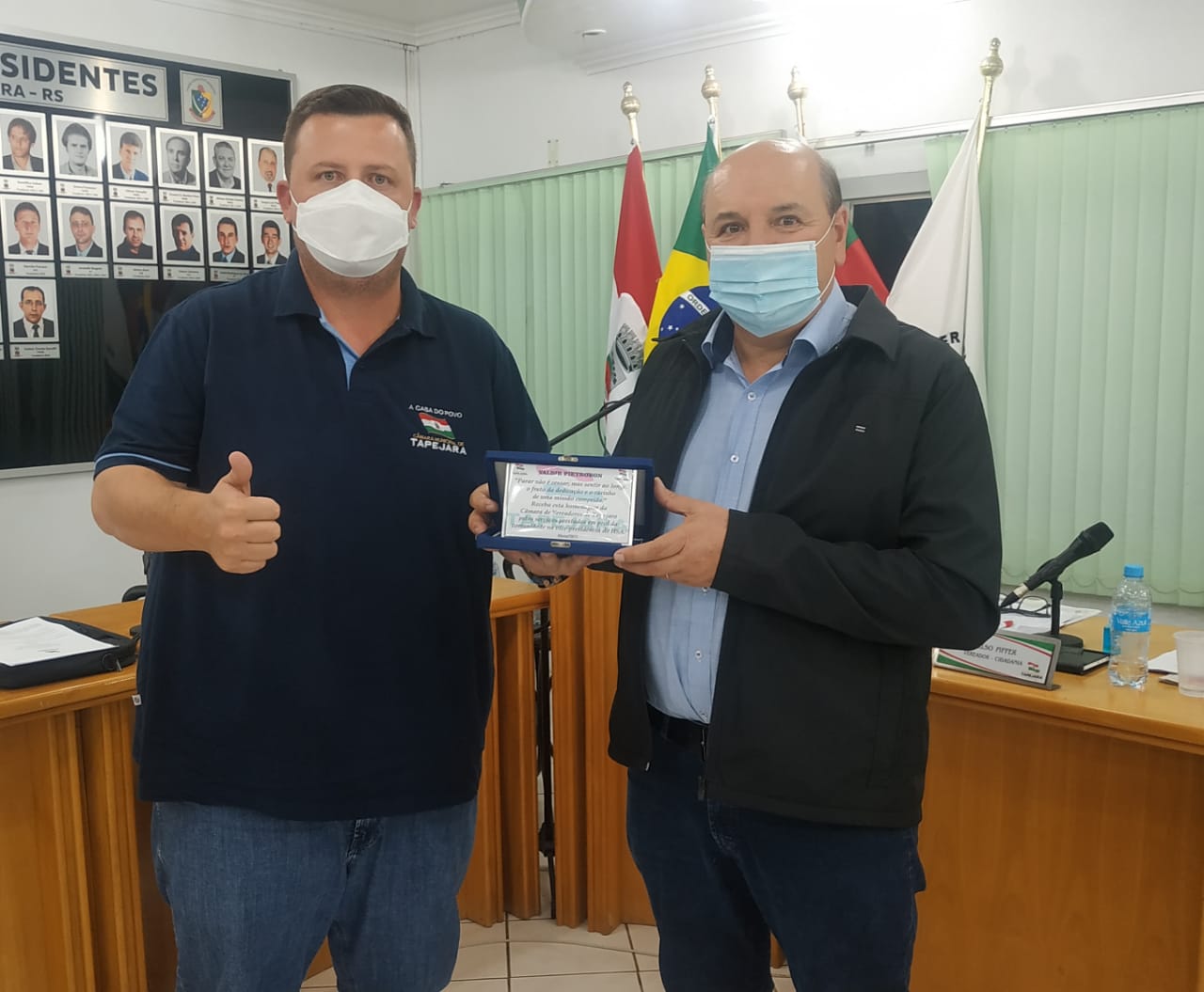 O presidente do Legislativo o senhor Eduardo de Oliveira PSB, agradeceu aos ex-presidentes pelo trabalho prestado a comunidade, e na oportunidade foi entregue uma placa de homenagem a cada um dos mesmos.