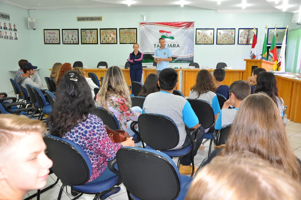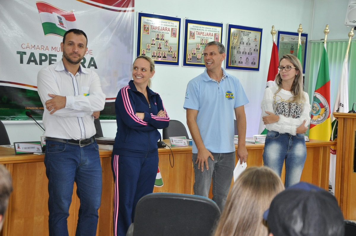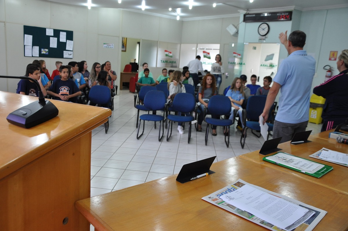Na tarde desta segunda-feira (26), aconteceu na Câmara de Vereadores de Tapejara, a primeira reunião com os alunos candidatos ao Projeto Vereador Mirim. Nesta segunda-feira eles participaram da primeira reunião e tiraram fotos que serão utilizadas na campanha.