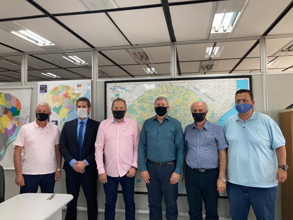 Em visita ao Departamento Autônomo de Estradas de Rodagem (Daer), o prefeito BIG esteve acompanhado do presidente da Acisat Cristiano da Silva; do assessor jurídico da entidade Irapuan Teixeira; do empresário Odil Léo Bianchini; do ex-deputado estadual Gilmar Sossella e dos vereadores Déberton Fracaro (Betinho) e Edson Luiz Dalla Costa (Kuki). A audiência foi realizada com o secretário estadual de Logística e Transportes, Juvir Costella, para tratar sobre a pavimentação asfáltica na ERS-430 que liga Tapejara a Charrua. “Conversamos muito sobre a execução desta obra, que deve acontecer através do Projeto PIAA. Colocamos o governo à disposição naquilo que podemos auxiliar de forma concreta e para fazer com que o asfalto deste trecho tão importante para toda a região possa fluir”, salientou BIG, acrescentando que foi solicitado ao Departamento que o trevo de acesso à Agrodanieli seja executado de forma ágil.