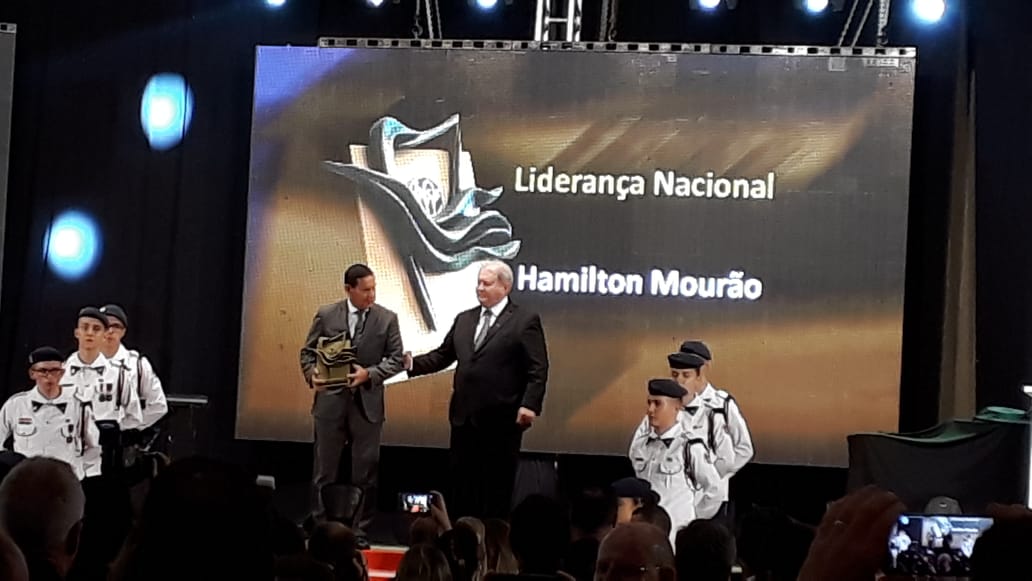 O vice-presidente da República, general Hamilton Mourão, foi homenageado com o Troféu Expodireto na Categoria Liderança Nacional. Após receber a distinção, ele falou em nome dos 20 homenageados.