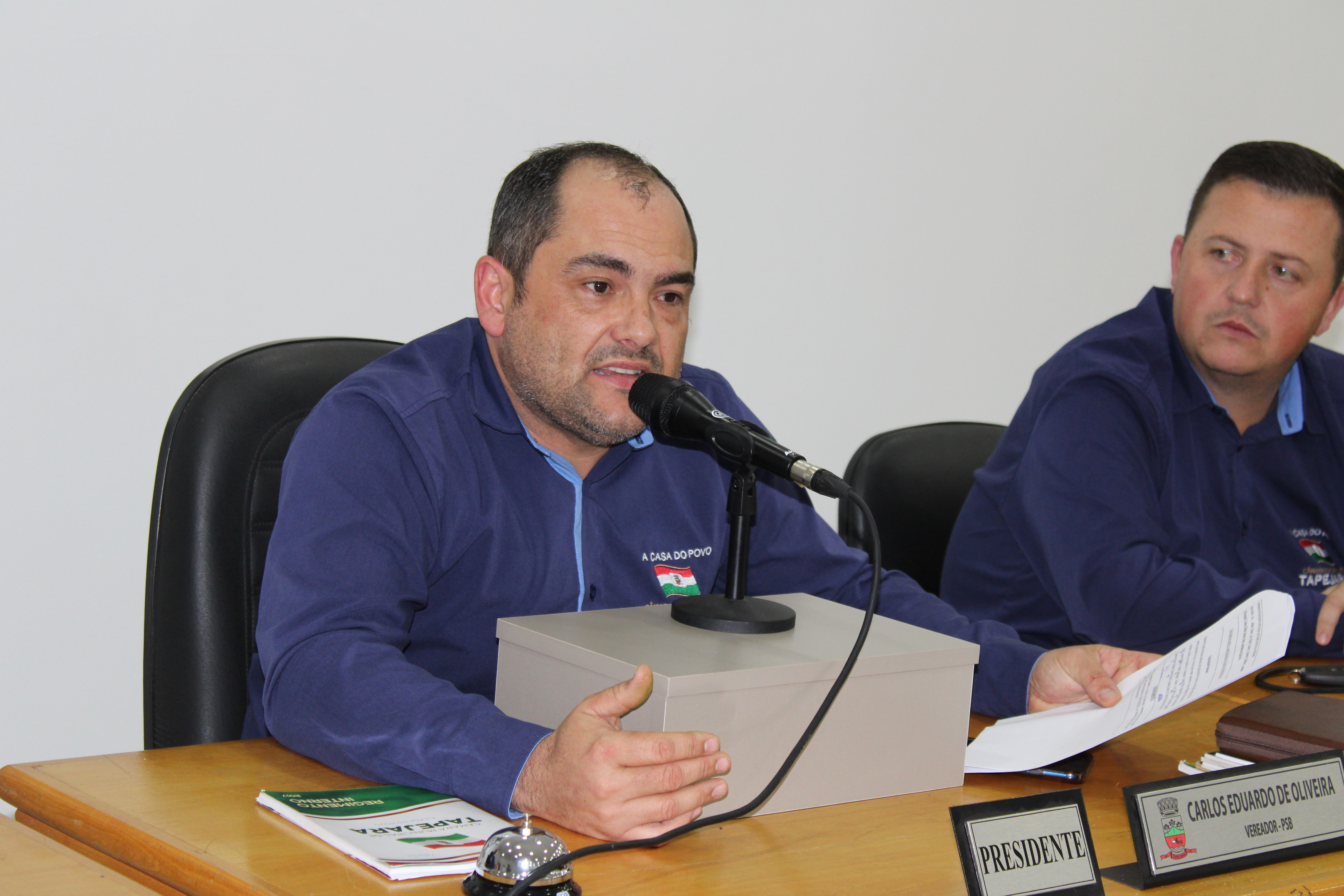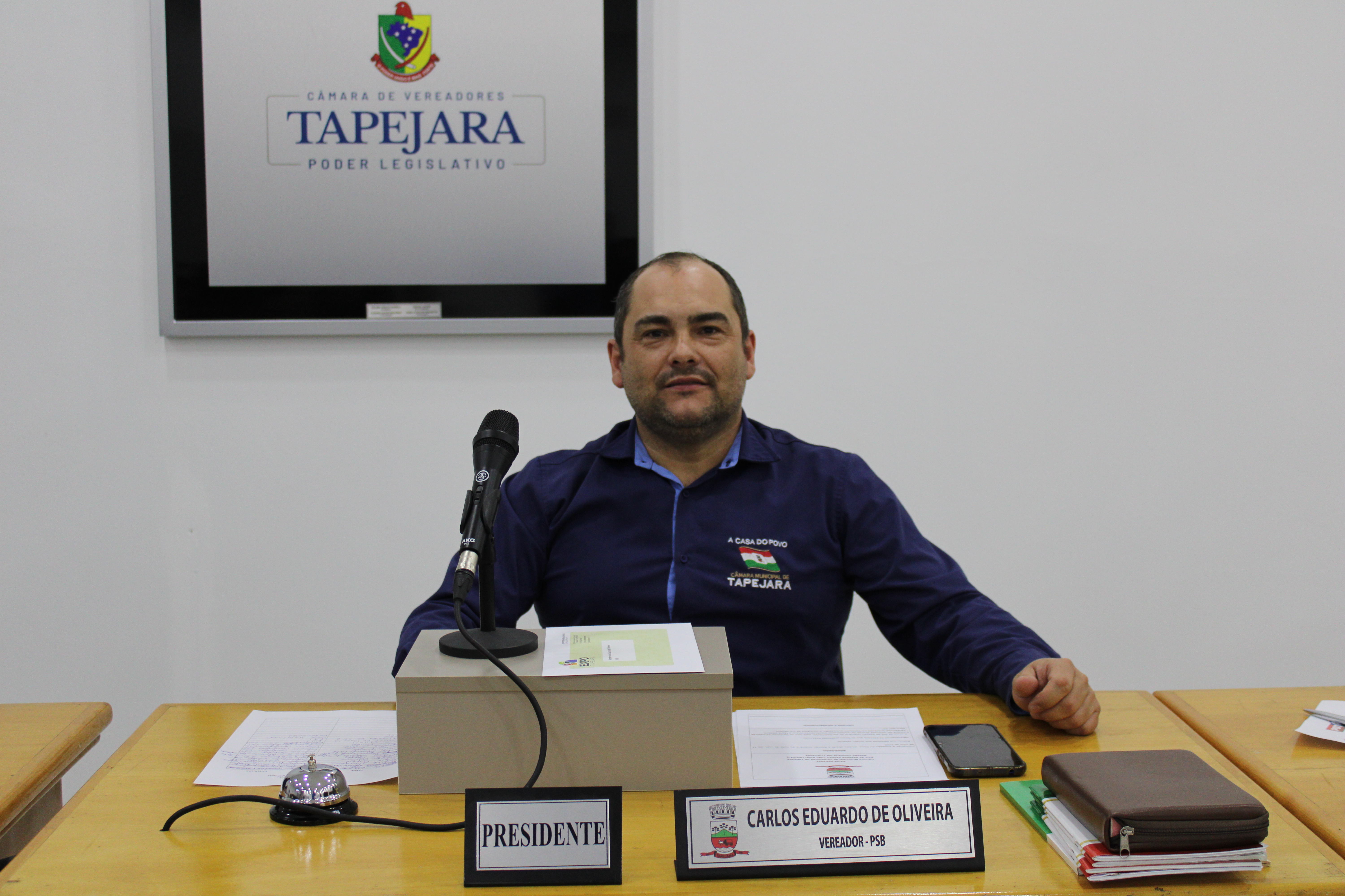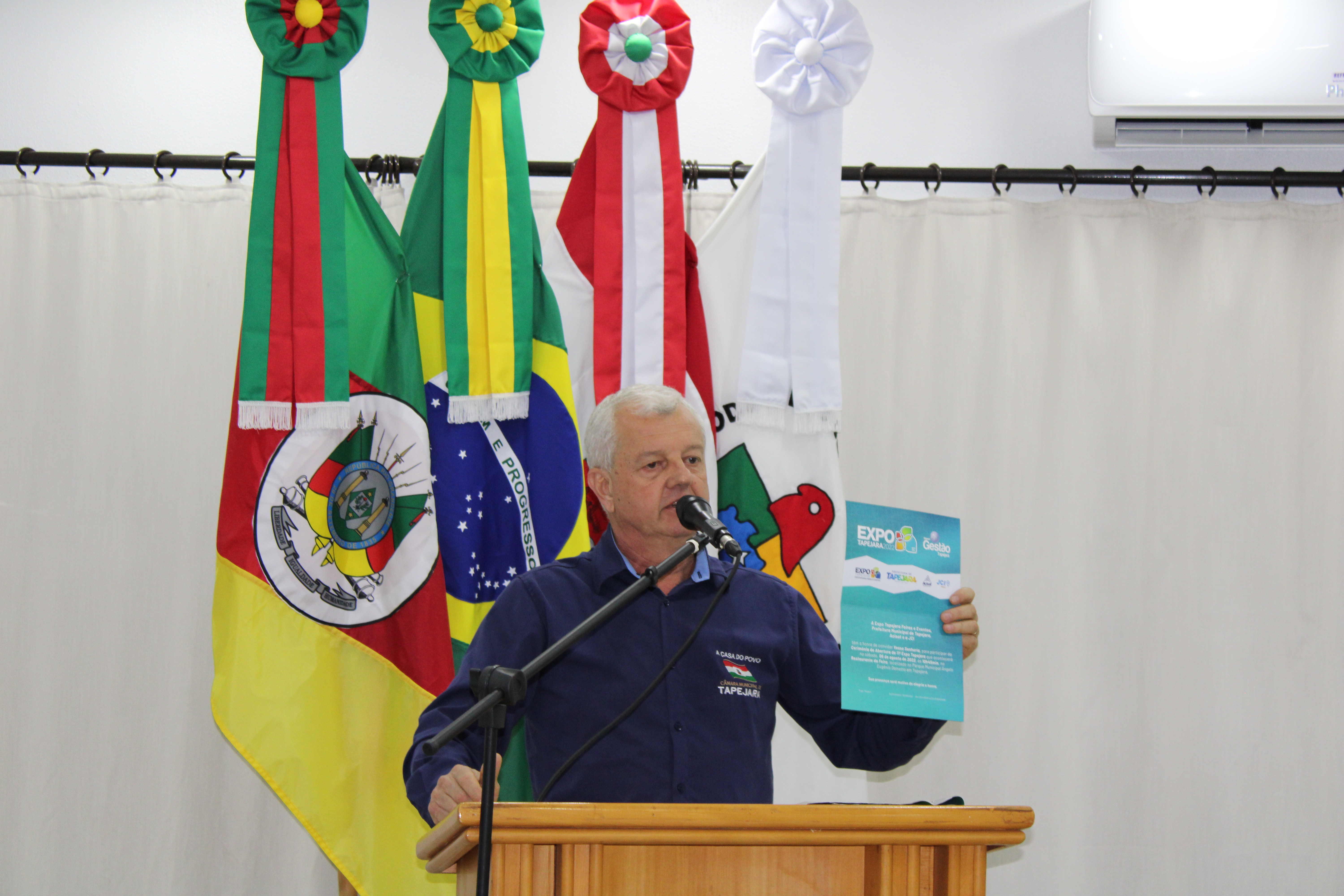 Antes do inicio dos trabalhos o Presidente Carlos Eduardo de Oliveira esteve recebendo em mãos o convite e a programação da Expo Tapejara 2022.