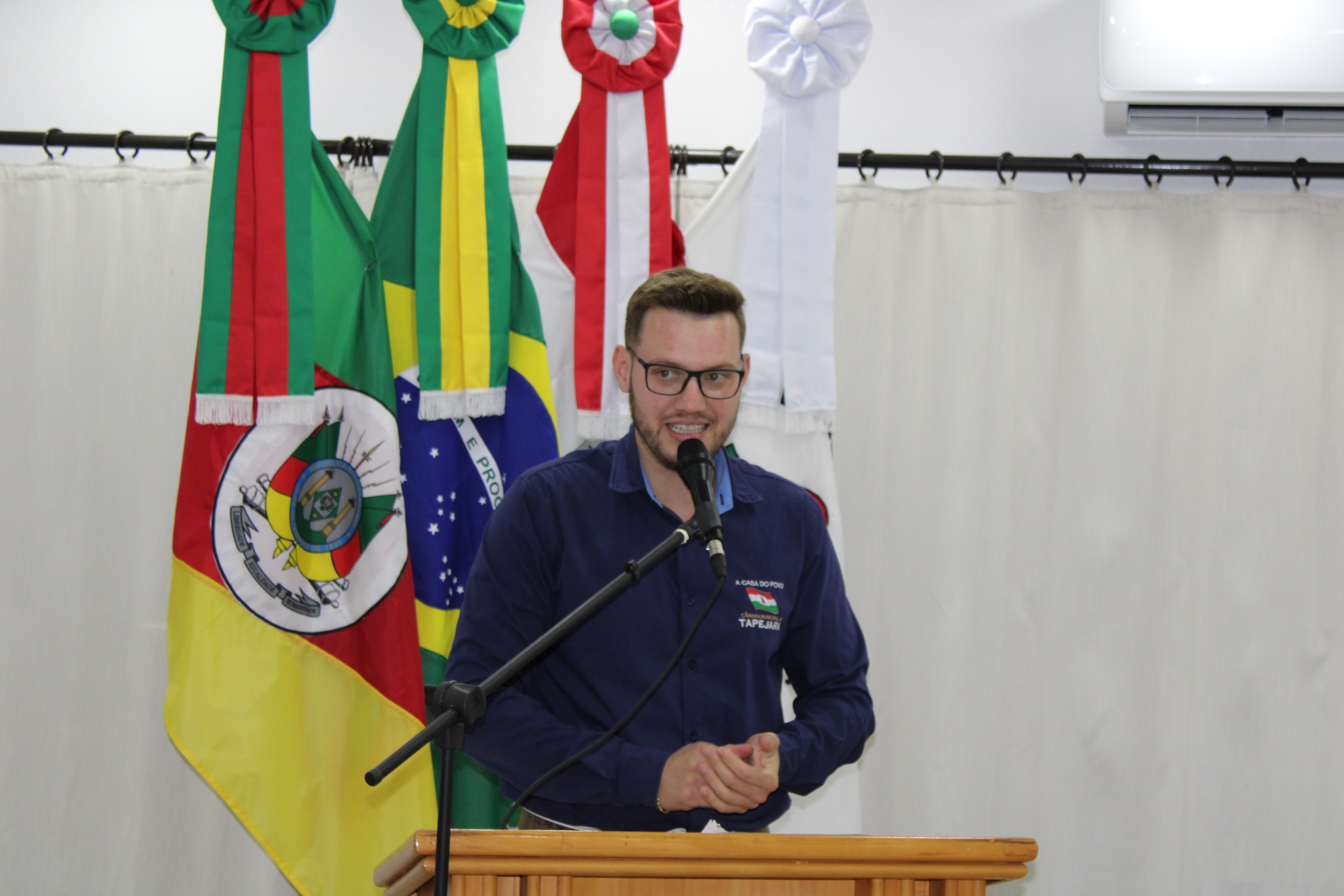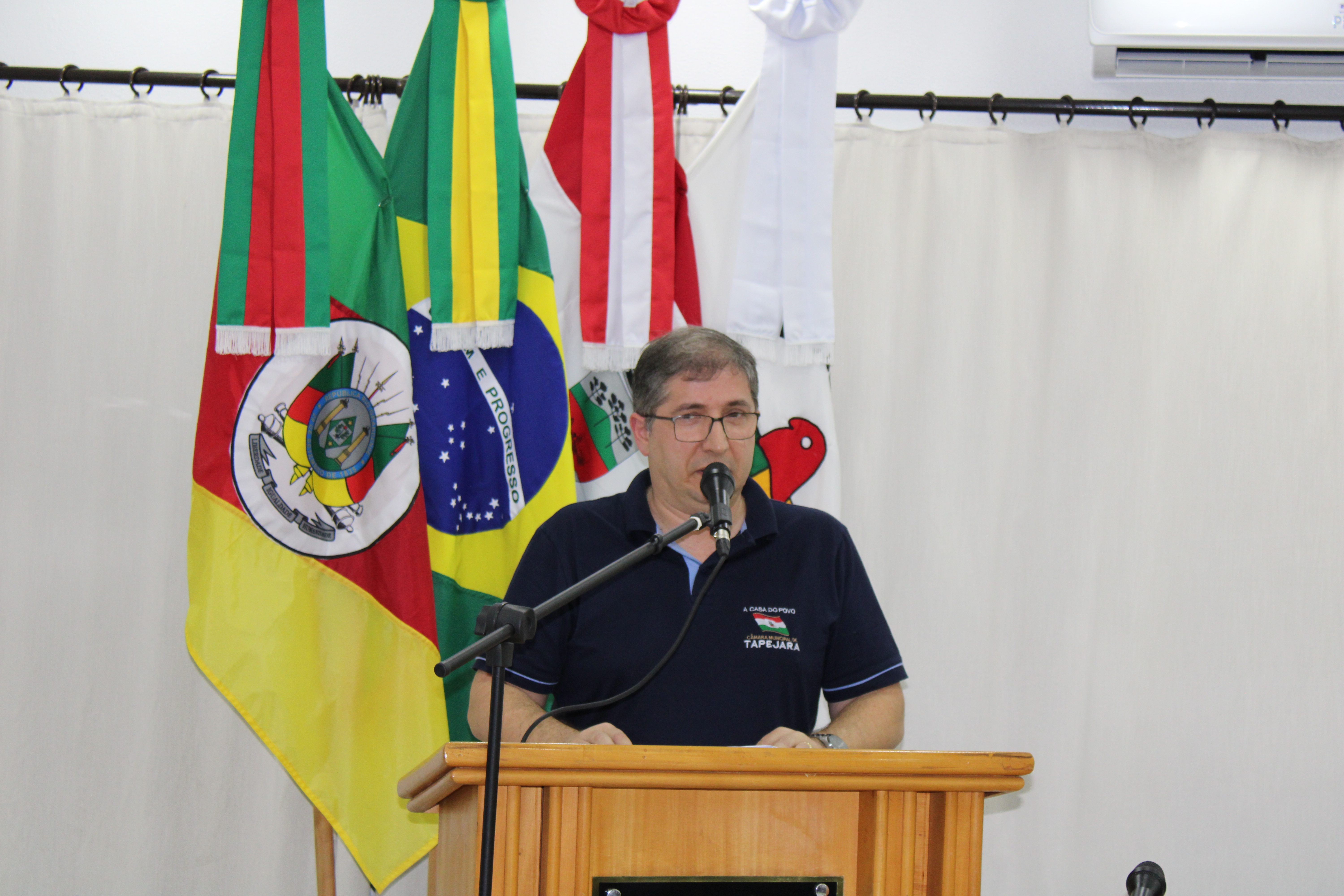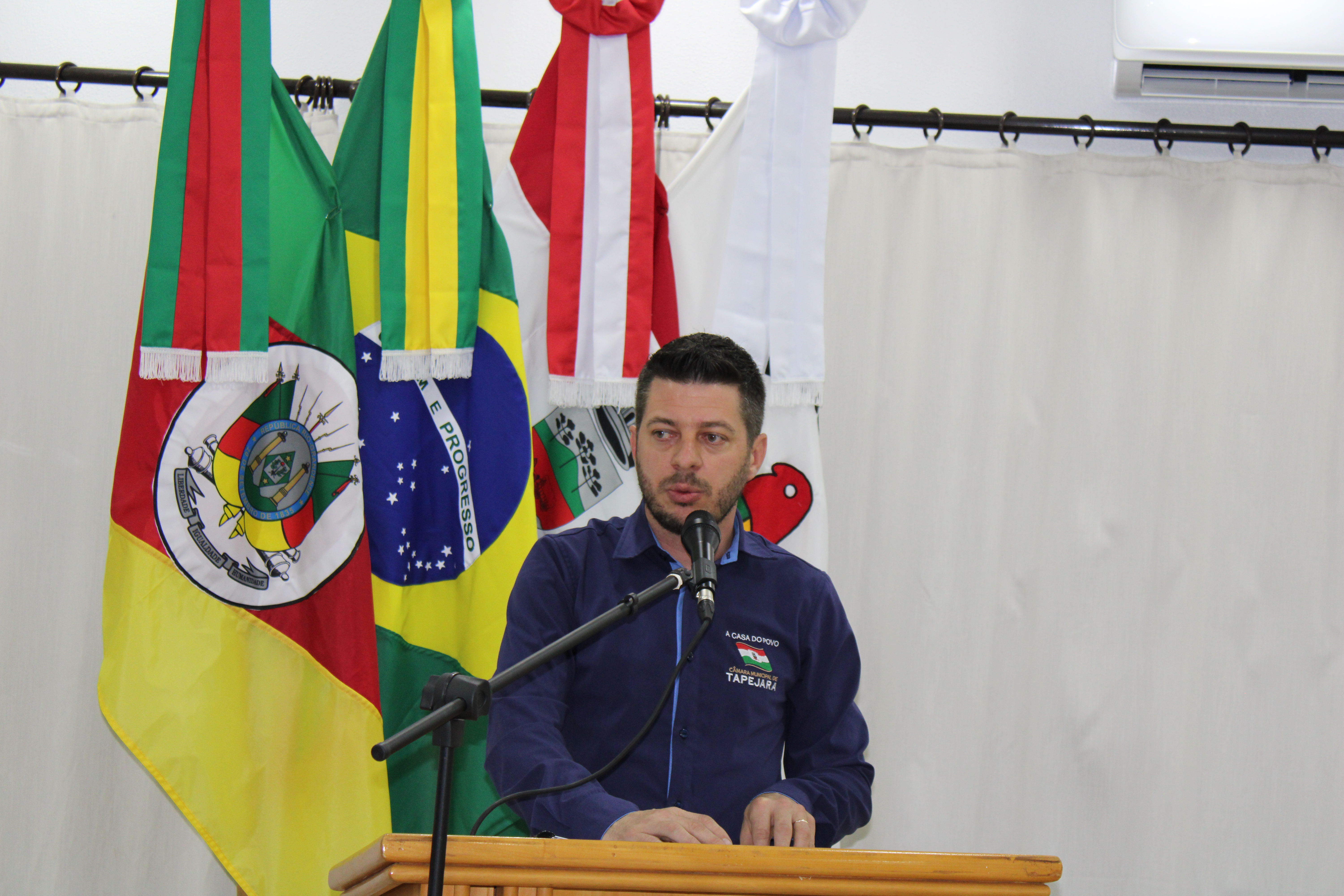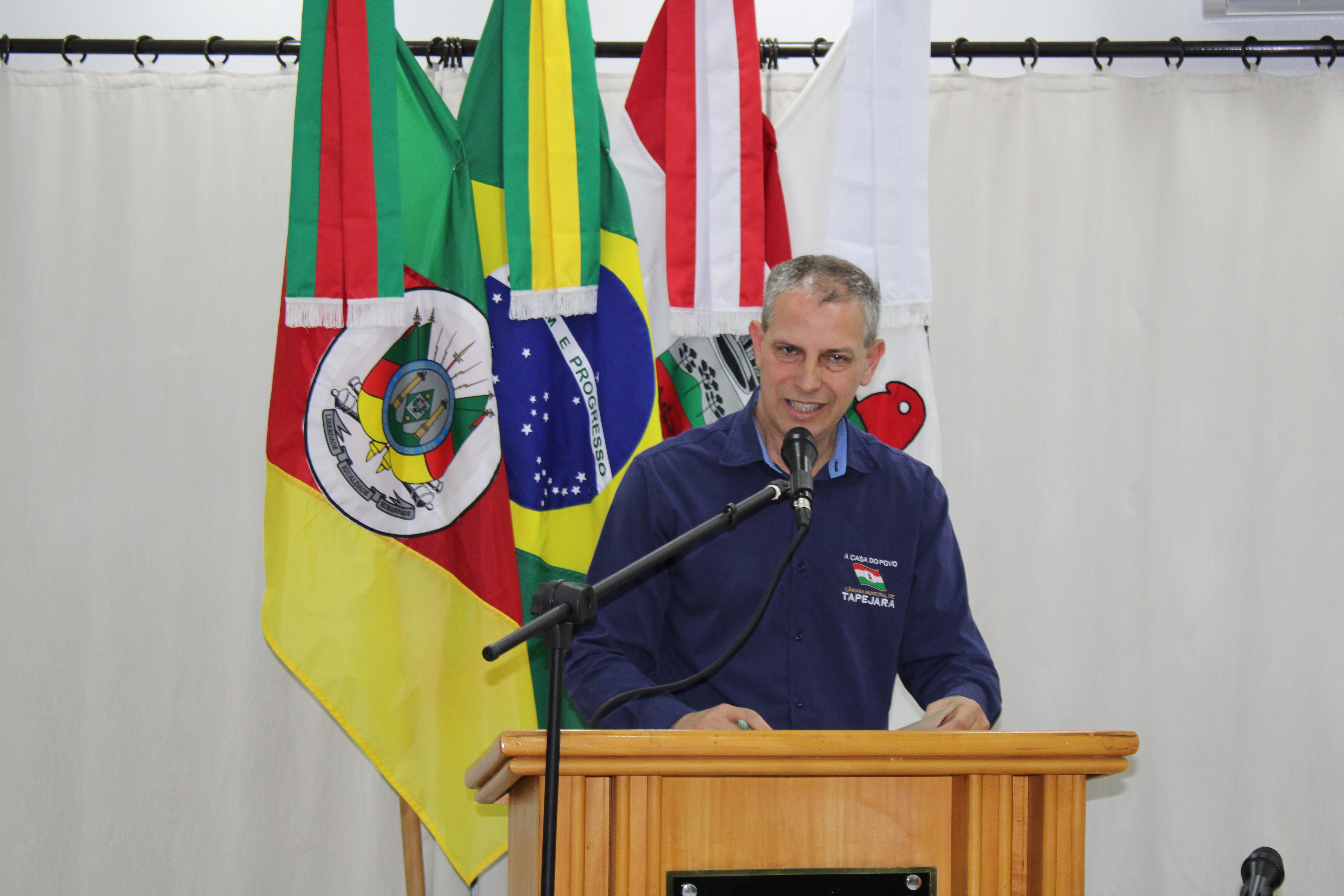Antes do inicio dos trabalhos o Presidente Carlos Eduardo de Oliveira esteve recebendo em mãos o convite e a programação da Expo Tapejara 2022.