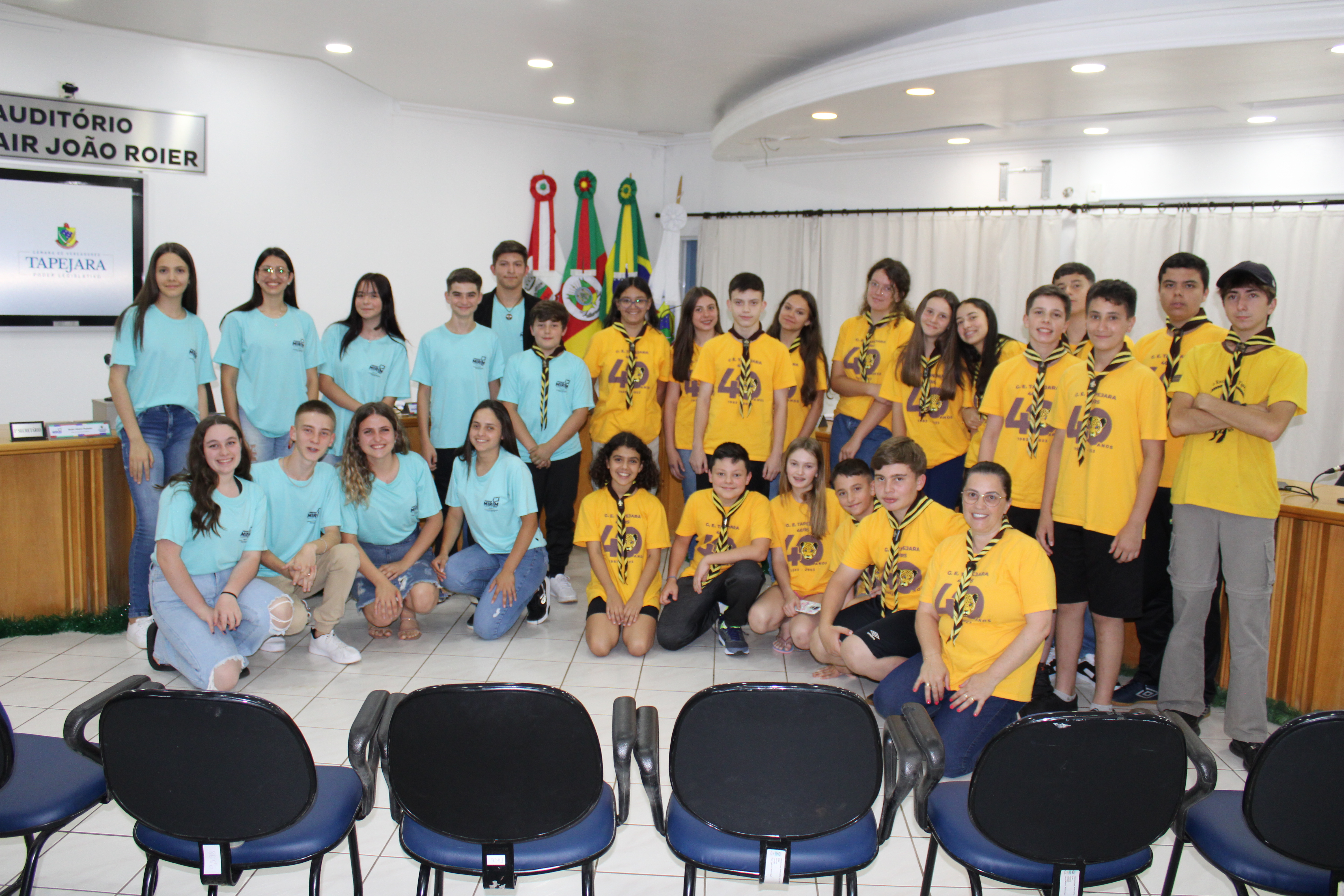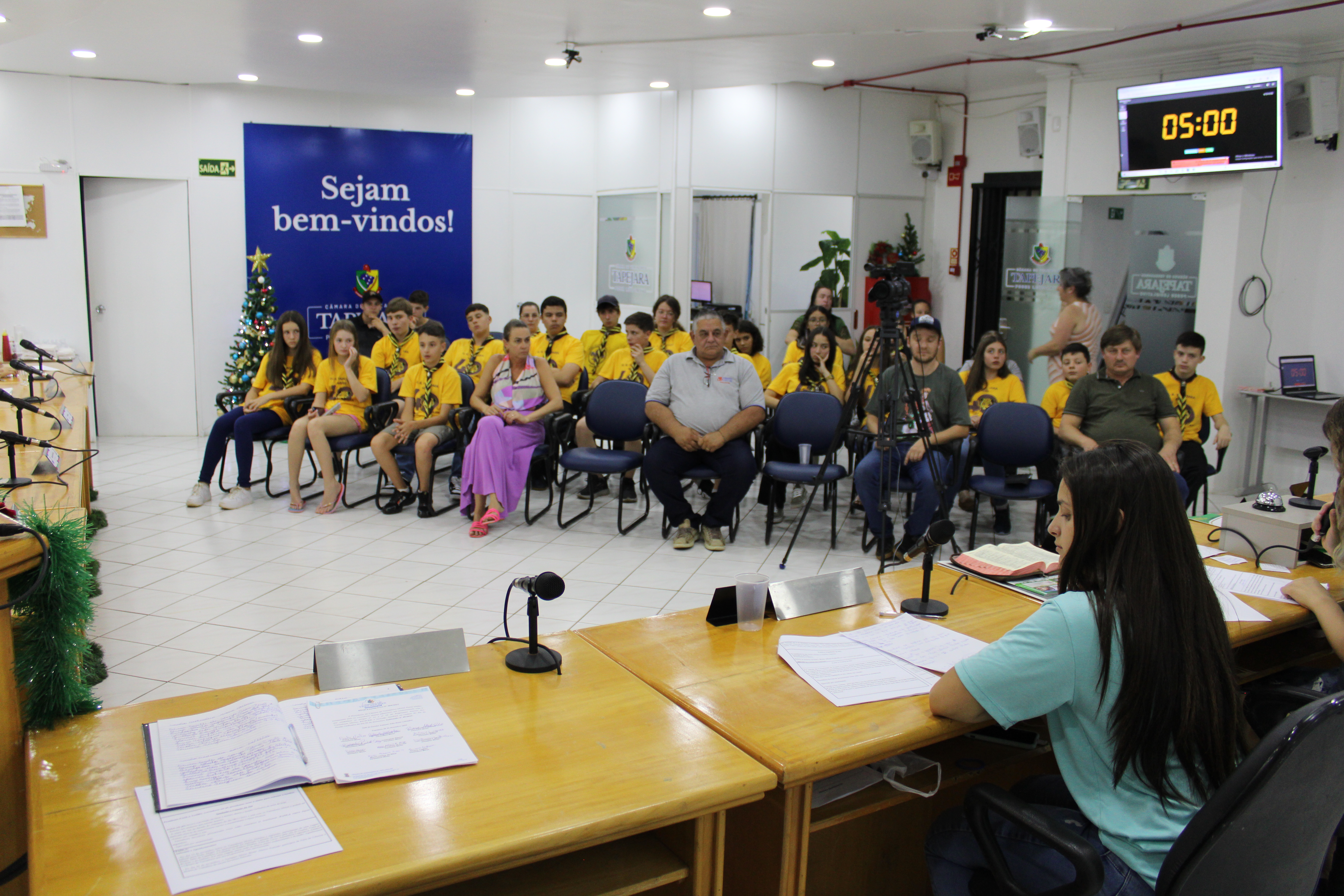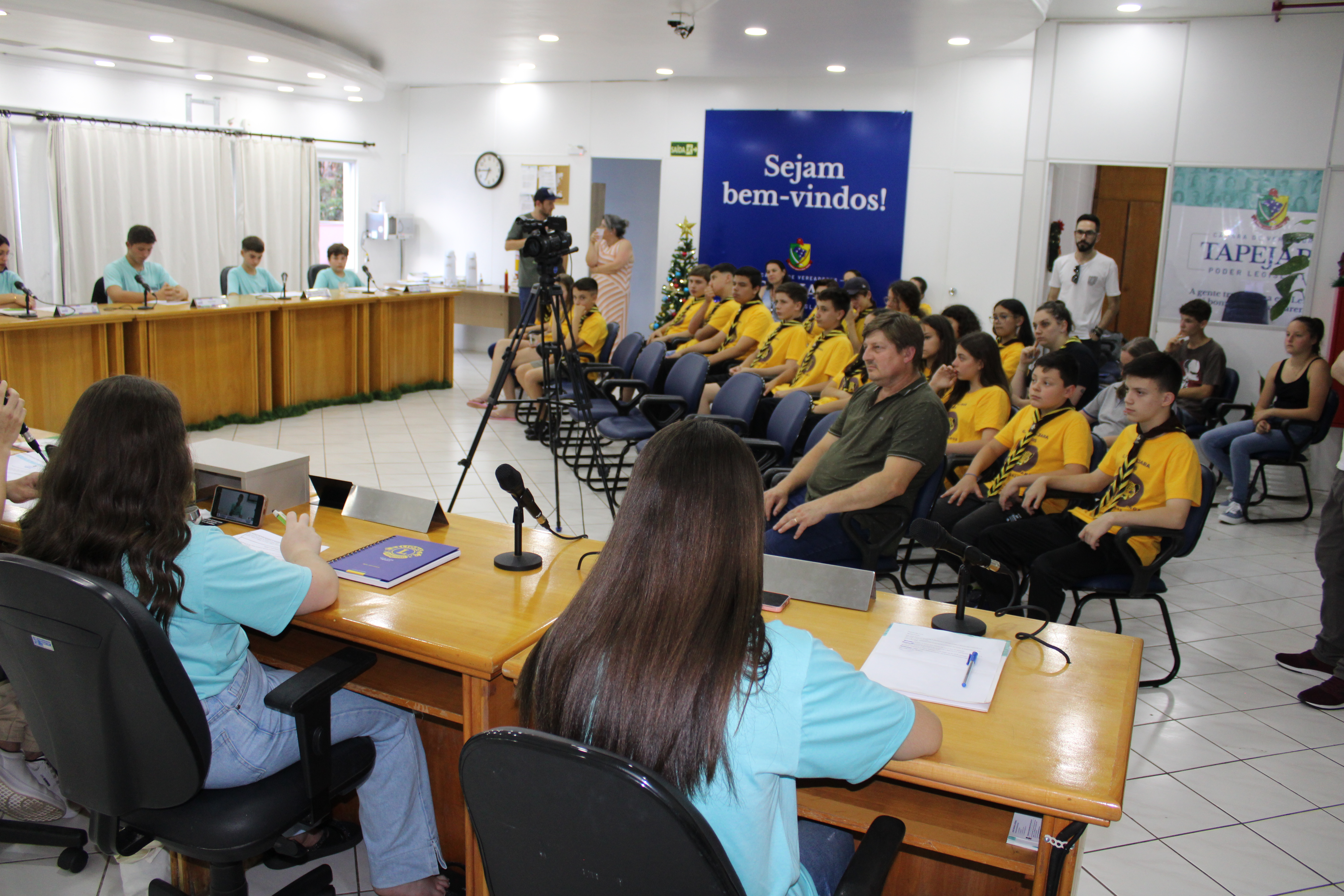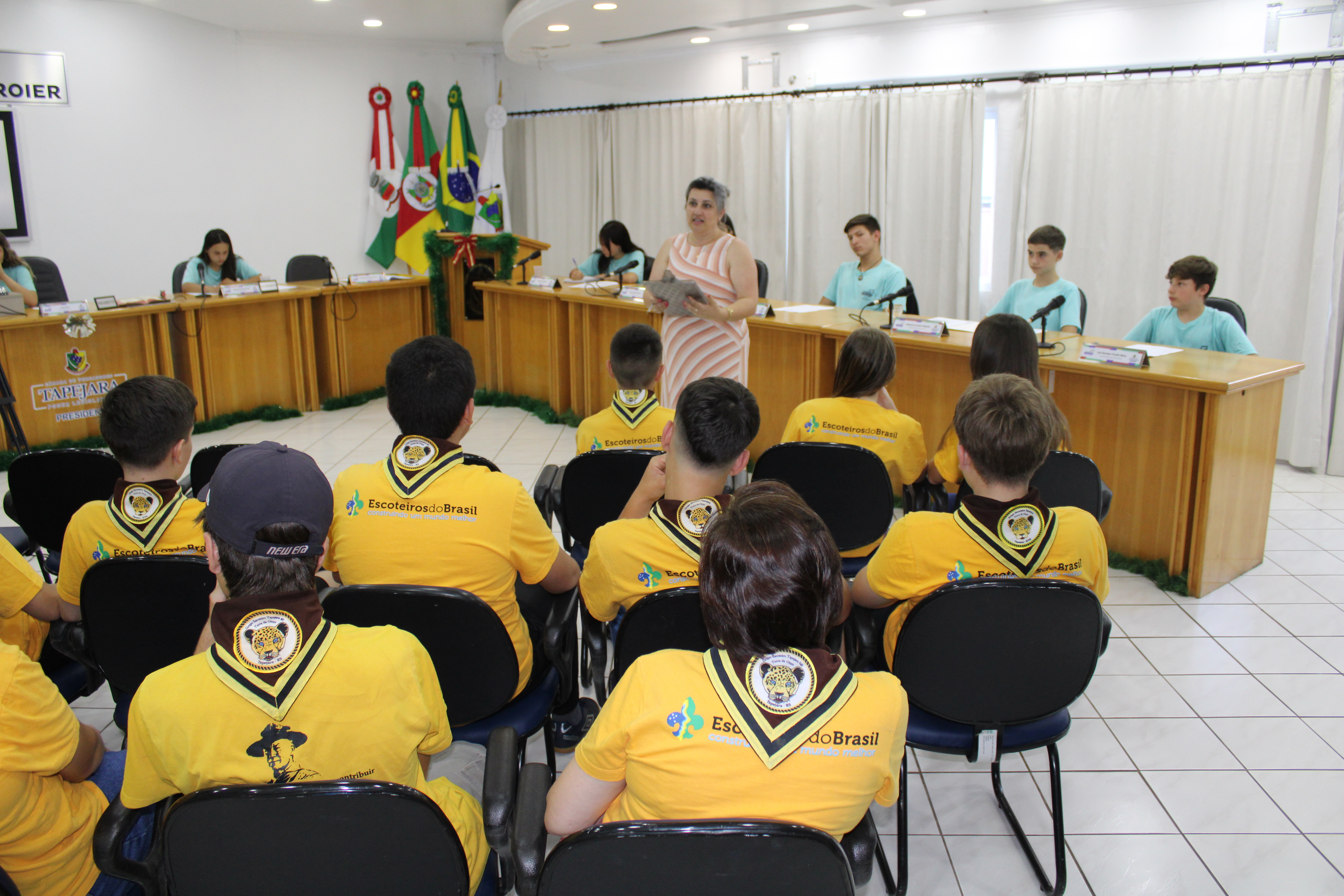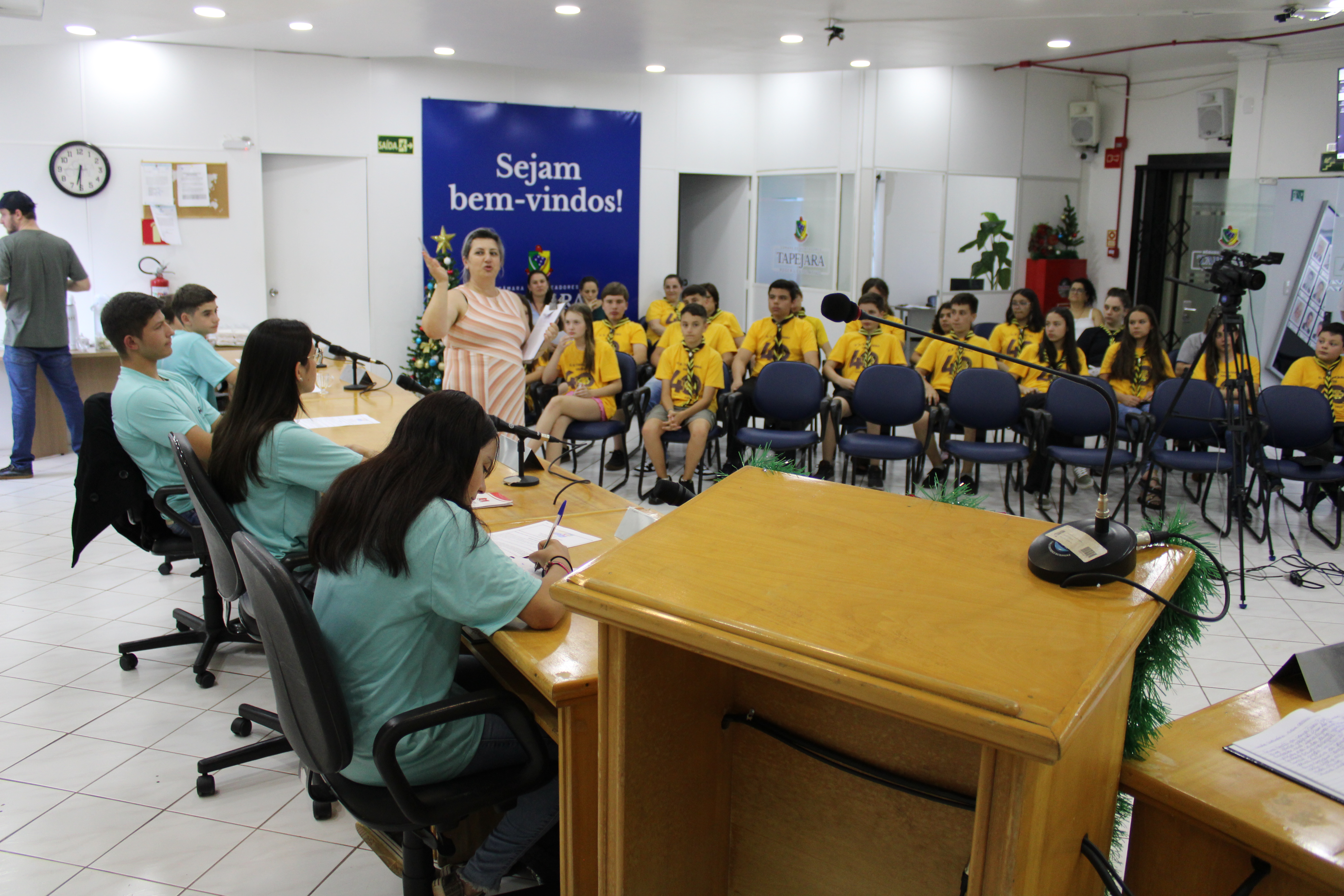 A Presidente Paola Naibo saudou a todos os presentes, principalmente ao Grupo Escoteiro Tapejara que esteve prestigiando presencialmente os trabalhos, bem como convidados e familiares que lotaram o auditório. Informou que no dia 14 de novembro todos os Vereadores Mirim, titulares e suplentes, participaram de uma viagem cultural para Porto Alegre. Na oportunidade foi realizado o passeio de barco pela orla do Guaíba, Visita ao Museu Júlio de Castilhos, à Catedral, ao Palácio Piratini, Feira do Livro, Assembleia Legislativa, Estádios do Inter e do Grêmio. Foi uma viagem única onde se obteve muito conhecimento e diversão.