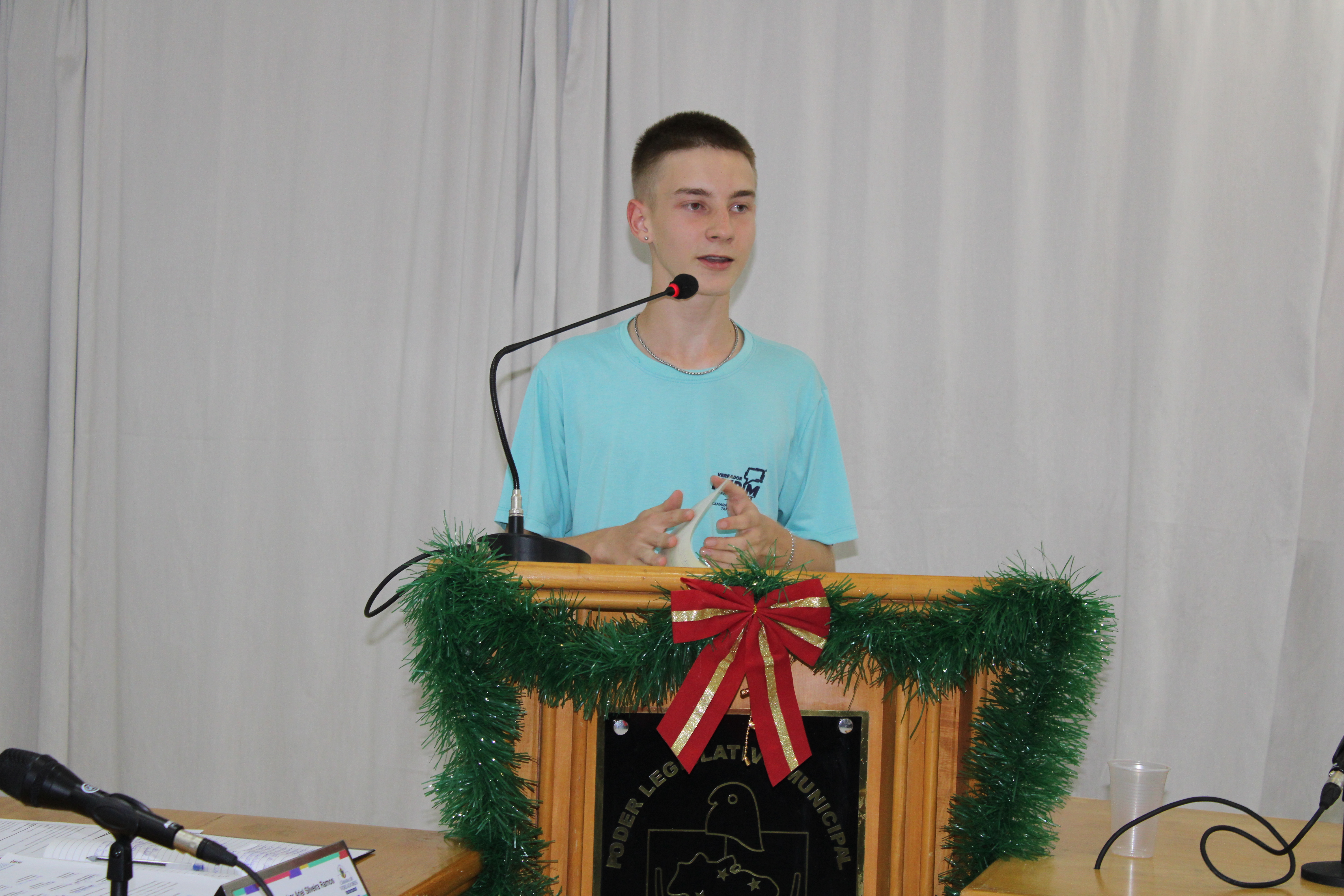 Foram 45 Indicações, 04 Requerimentos, 04 Votos de Pesar, 02 Tribunas Populares e 01 Sessão Solene. Também no decorrer do ano tivemos Curso de Regimento Interno e Legislação com a equipe da Casa. Além disso, curso de Oratória com o Pessoal da JCI. E por fim a nossa viagem para Porto Alegre na qual foi uma experiência única de muito aprendizado e diversão.