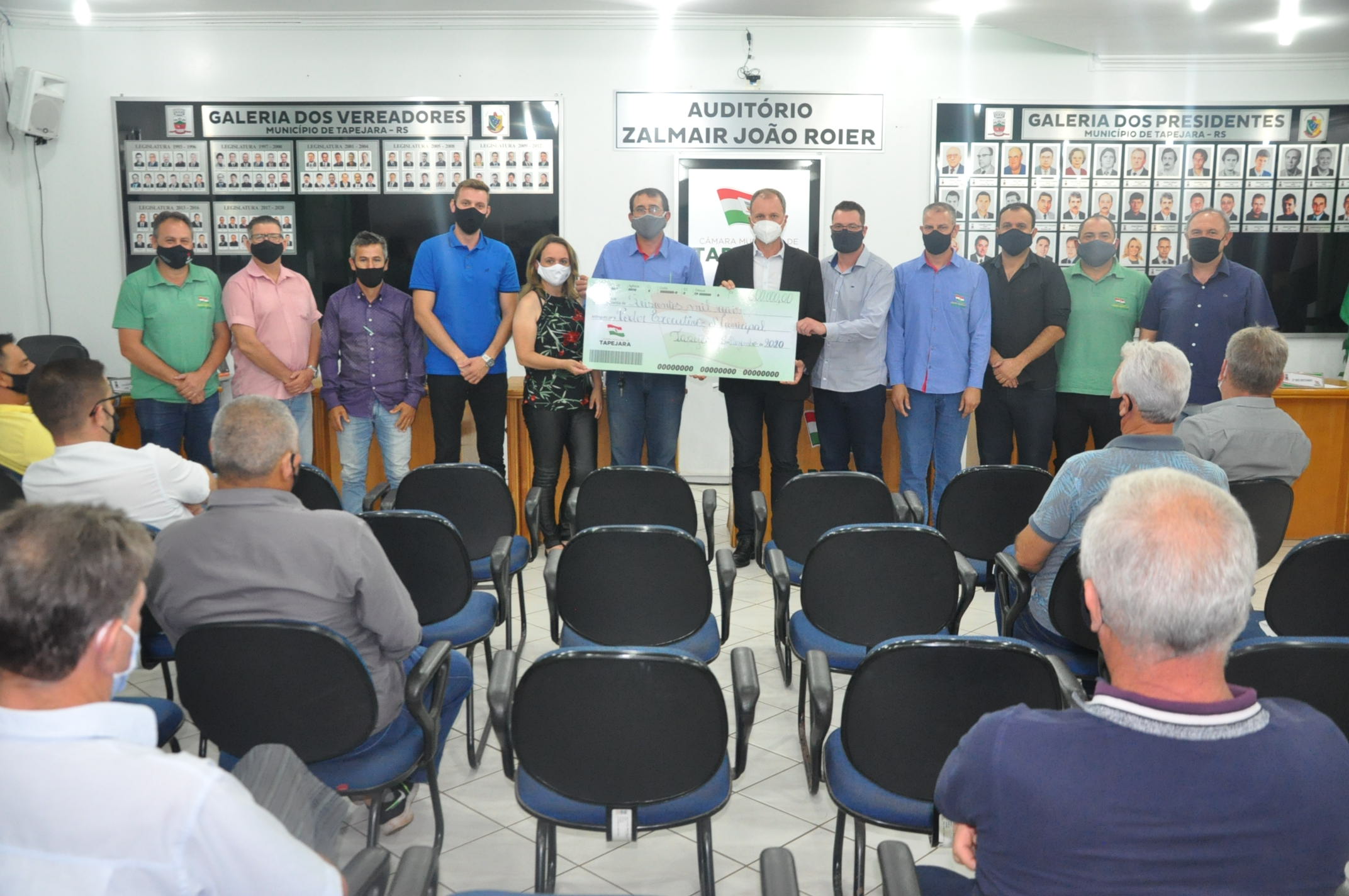 A 43ª e última Sessão Ordinária de 2020 foi realizada na noite de hoje, segunda-feira (28/12) no auditório Zalmair João Roier. Inicialmente, o presidente da Câmara de Vereadores, Volmir Danelli, realizou a devolução de R$600 mil à Prefeitura Municipal de Tapejara. O prefeito Vilmar Merotto esteve presente para receber o cheque simbólico.