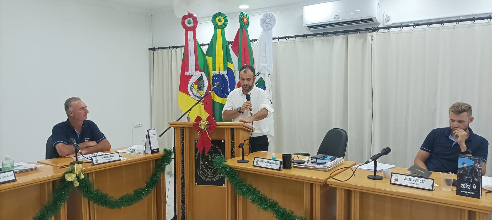 Os vereadores e servidores do Legislativo receberam uma agenda em mãos do presidente Edu, para os trabalhos de 2022. Confira as matérias aprovadas: