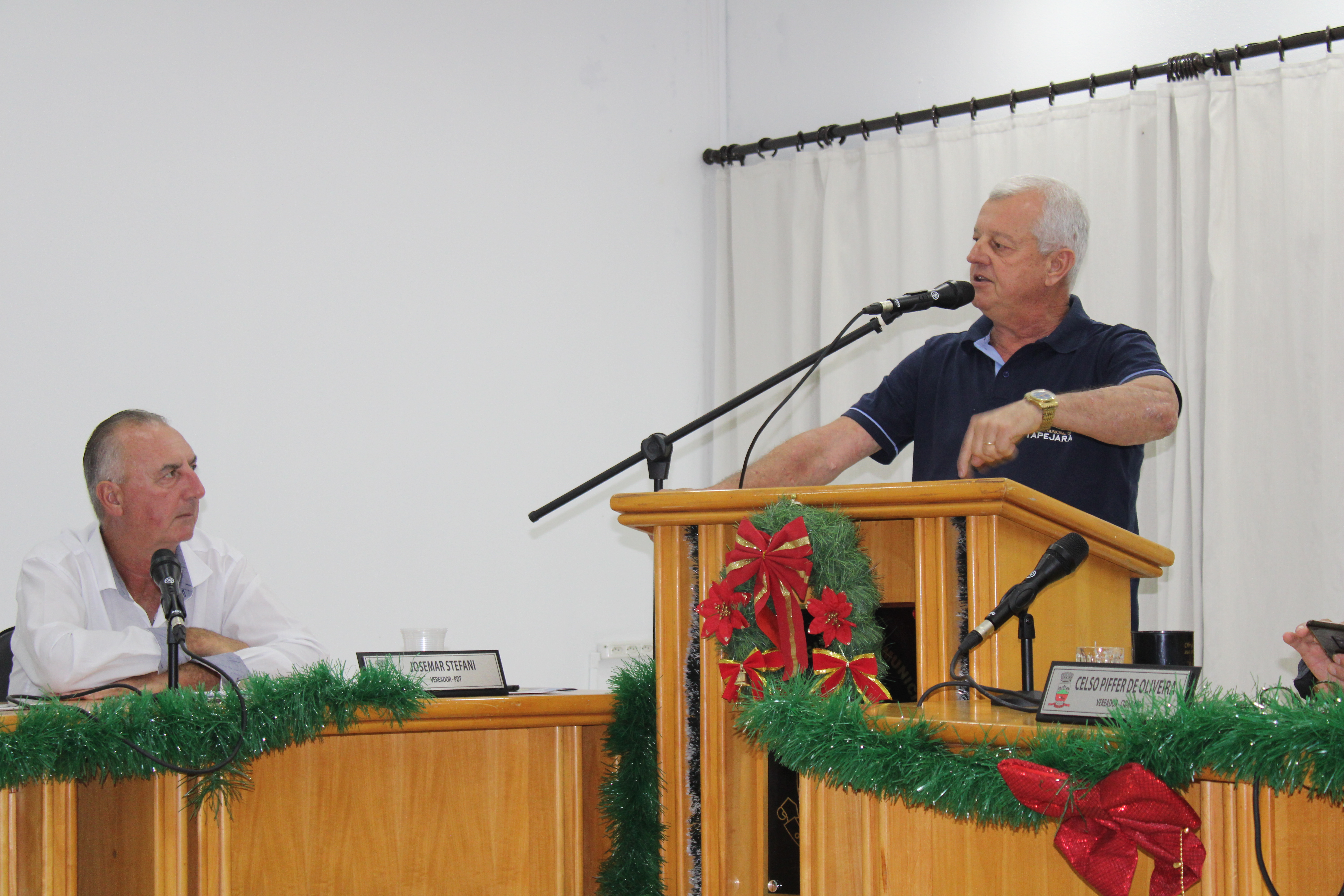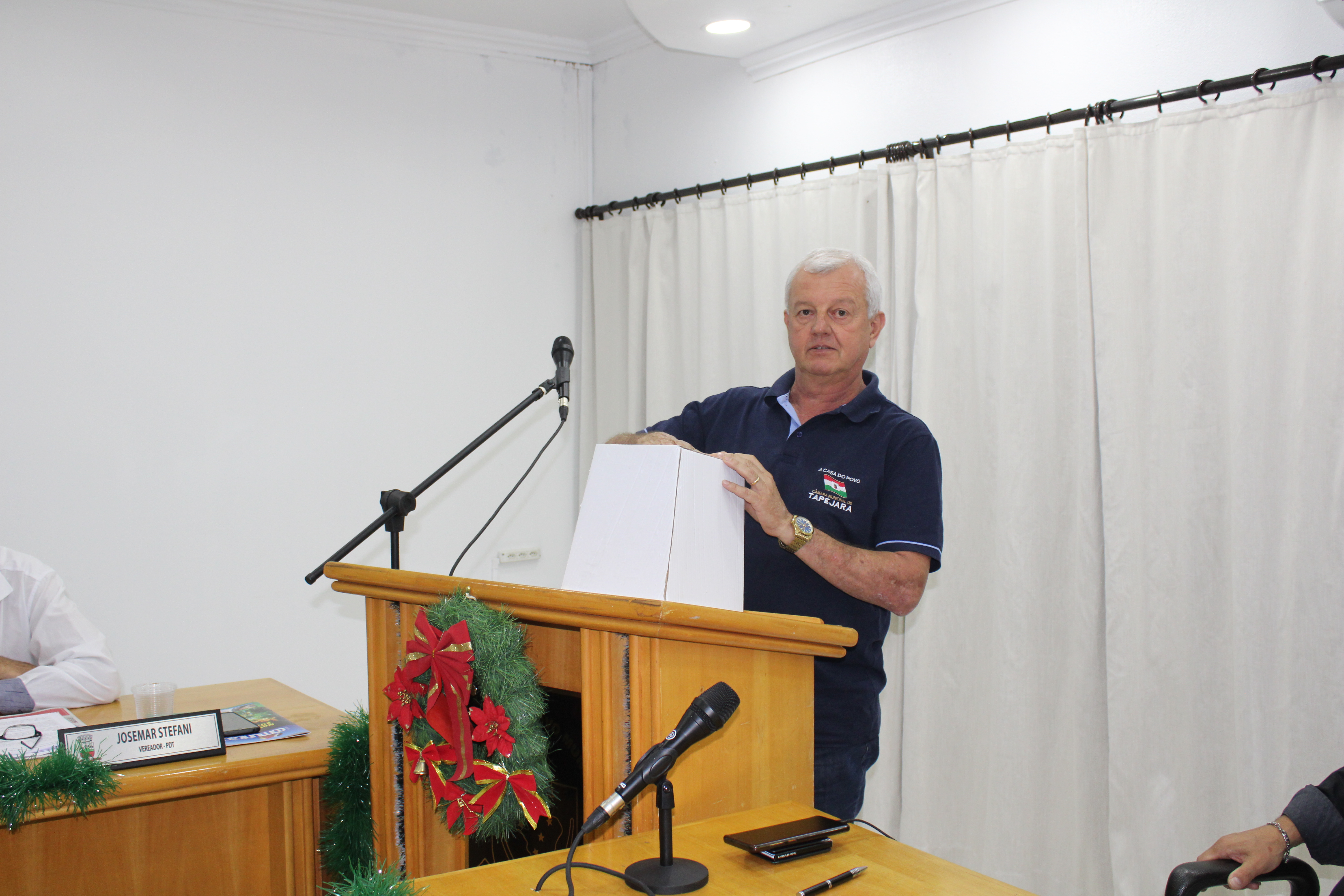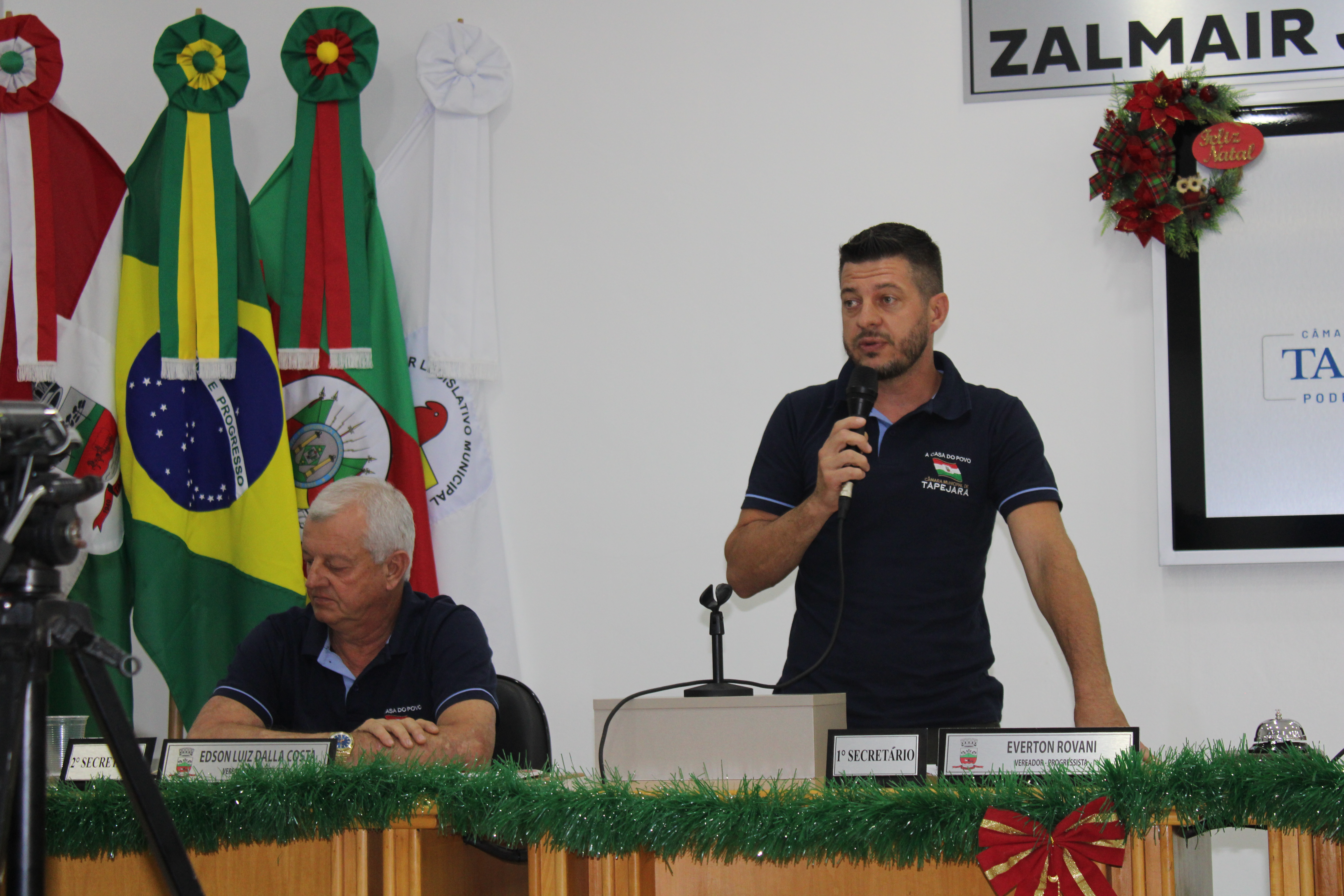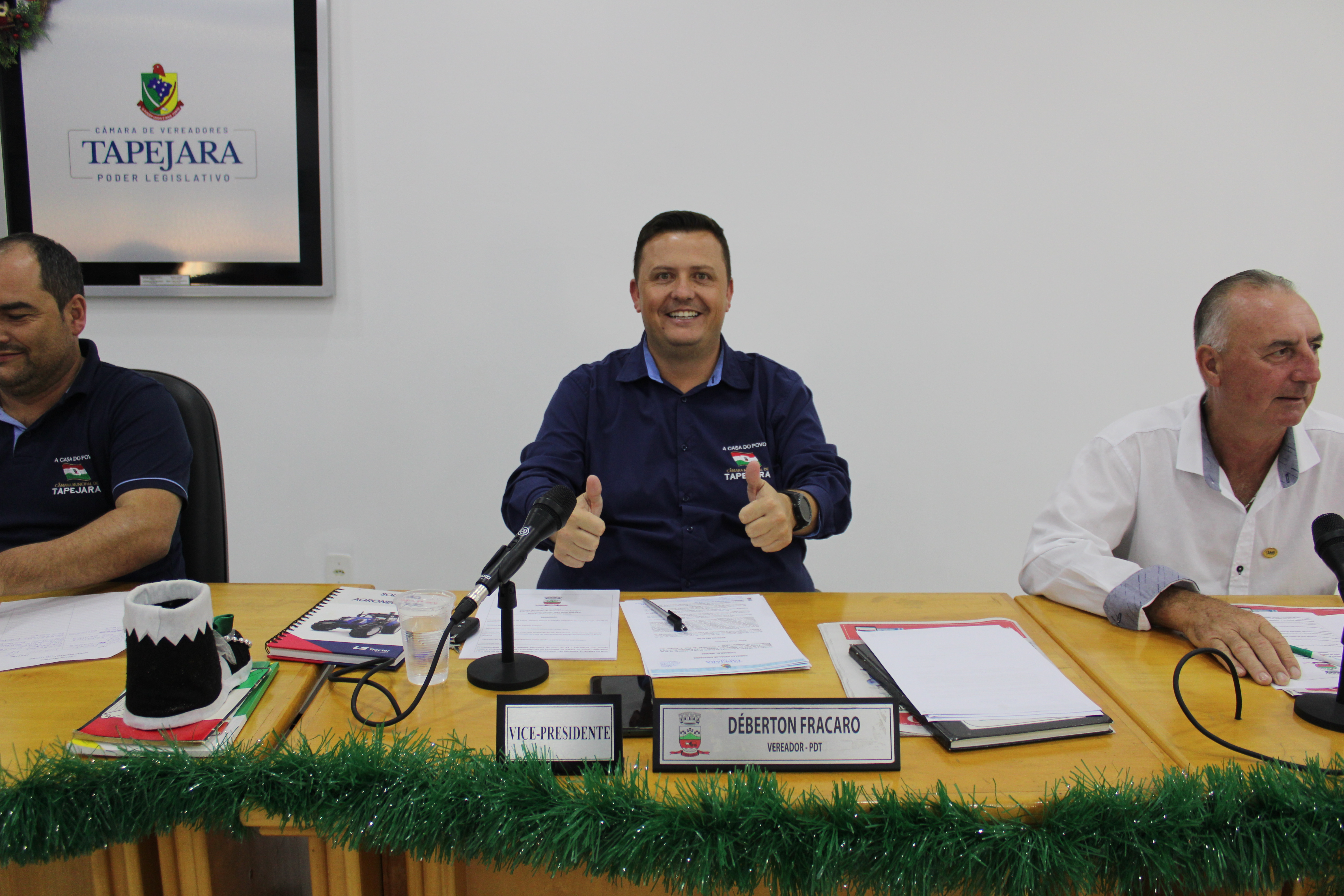 O Presidente Carlos Eduardo de Oliveira iniciou os trabalhos realizando a entrega simbólica do valor de R$ 1.150.000,00 (um milhão cento e cinquenta mil reais) provenientes da economia de gastos do Poder Legislativo até o mês de dezembro/2022, referente ao duodécimo, não utilizados. O procurador do município Leonardo Frigeri esteve representando o executivo neste ato. O repasse foi feito em duas etapas, sendo a primeira de R$ 600.000,00 (seiscentos mil reais) em meados deste ano para auxílio na implantação do sistema de vídeo monitoramento da cidade de Tapejara e agora mais a quantia de R$ 550.000,00 (quinhentos e cinquenta mil reais), que ainda estão disponíveis e em caixa do Poder Legislativo.