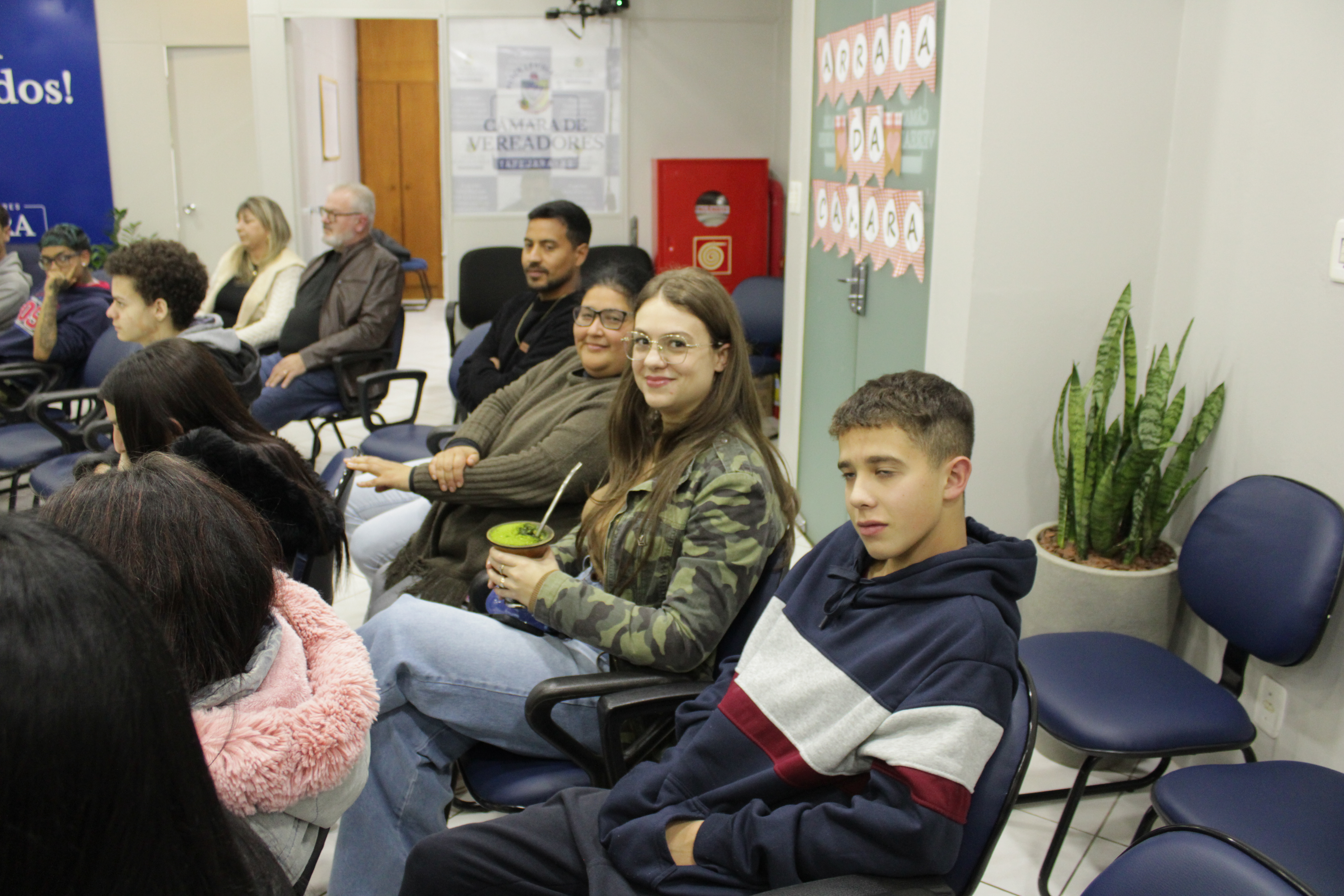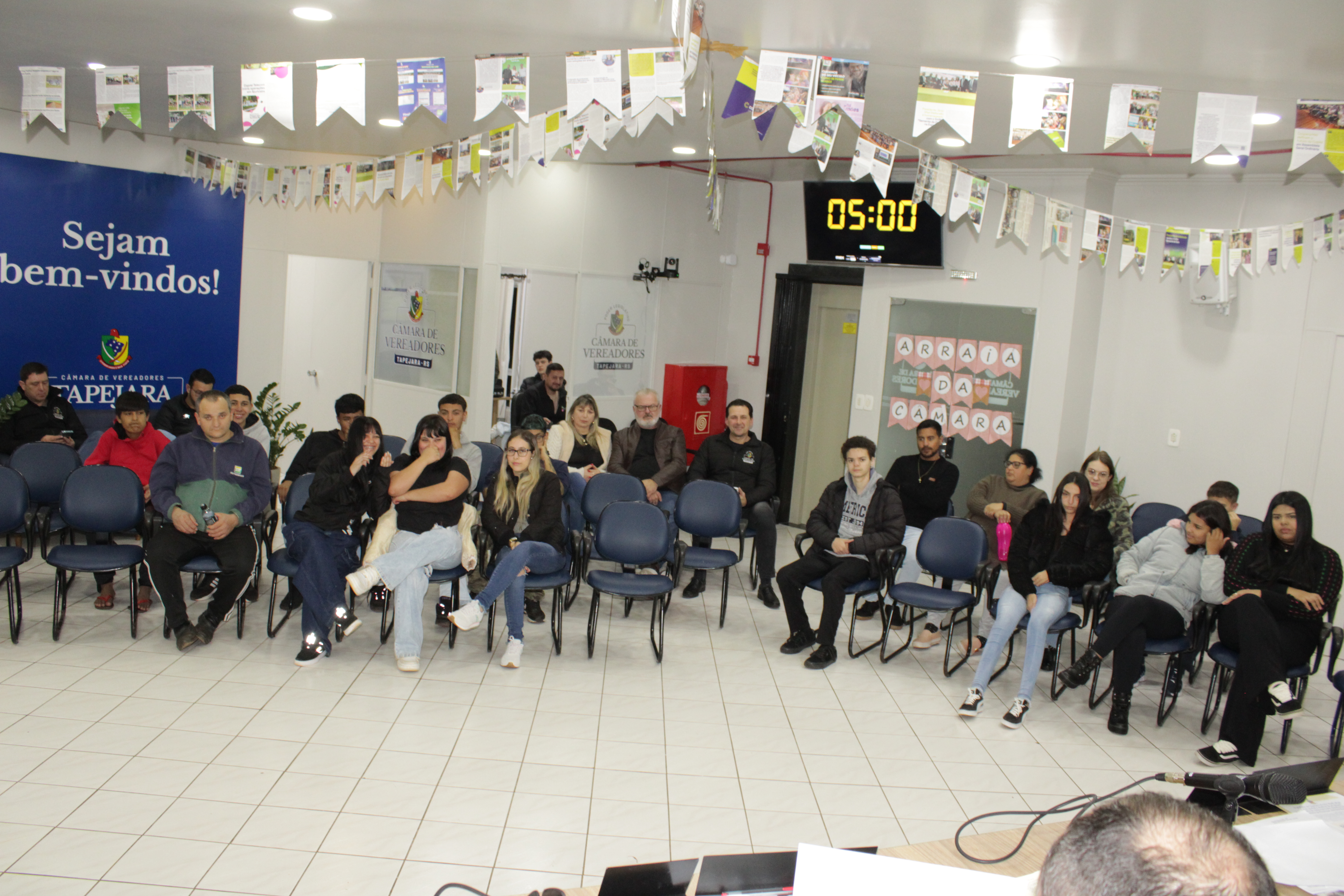 Alunos do EJA do Ensino Fundamental da Escola Severino Dalzotto, estiveram acompanhando os trabalhos dos Vereadores e aprendendo um pouco mais sobre o Legislativo.