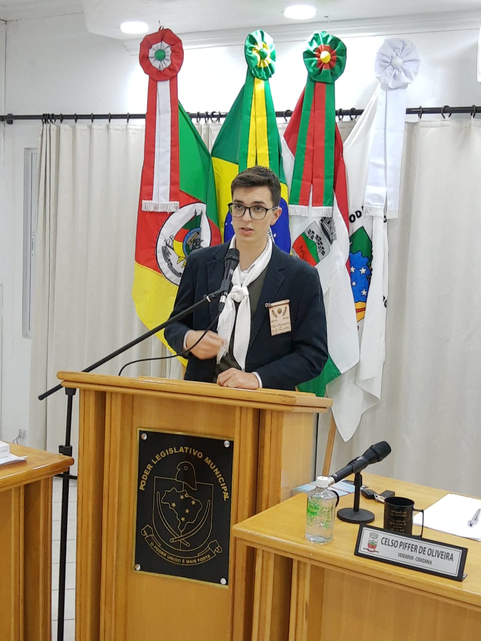 Na abertura dos trabalhos foi destinado espaço na tribuna para Homenagem ao 3° Guri Farroupilha do RS, Leonardo Aloísio Andreolla, que destacou o quanto se preparou para representar bem a nossa região e quais foram as provas e quesitos avaliados e julgados nessa edição.
