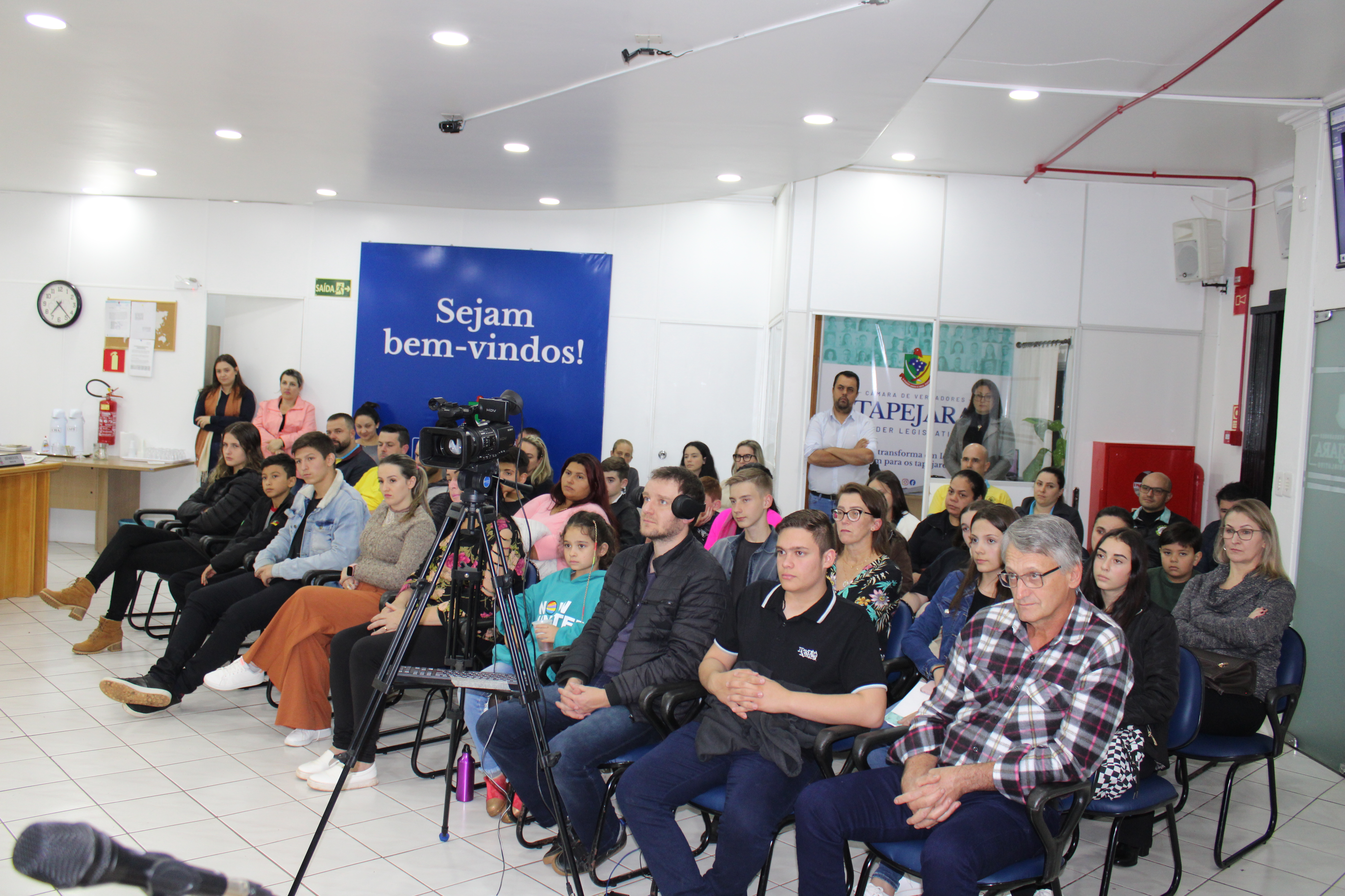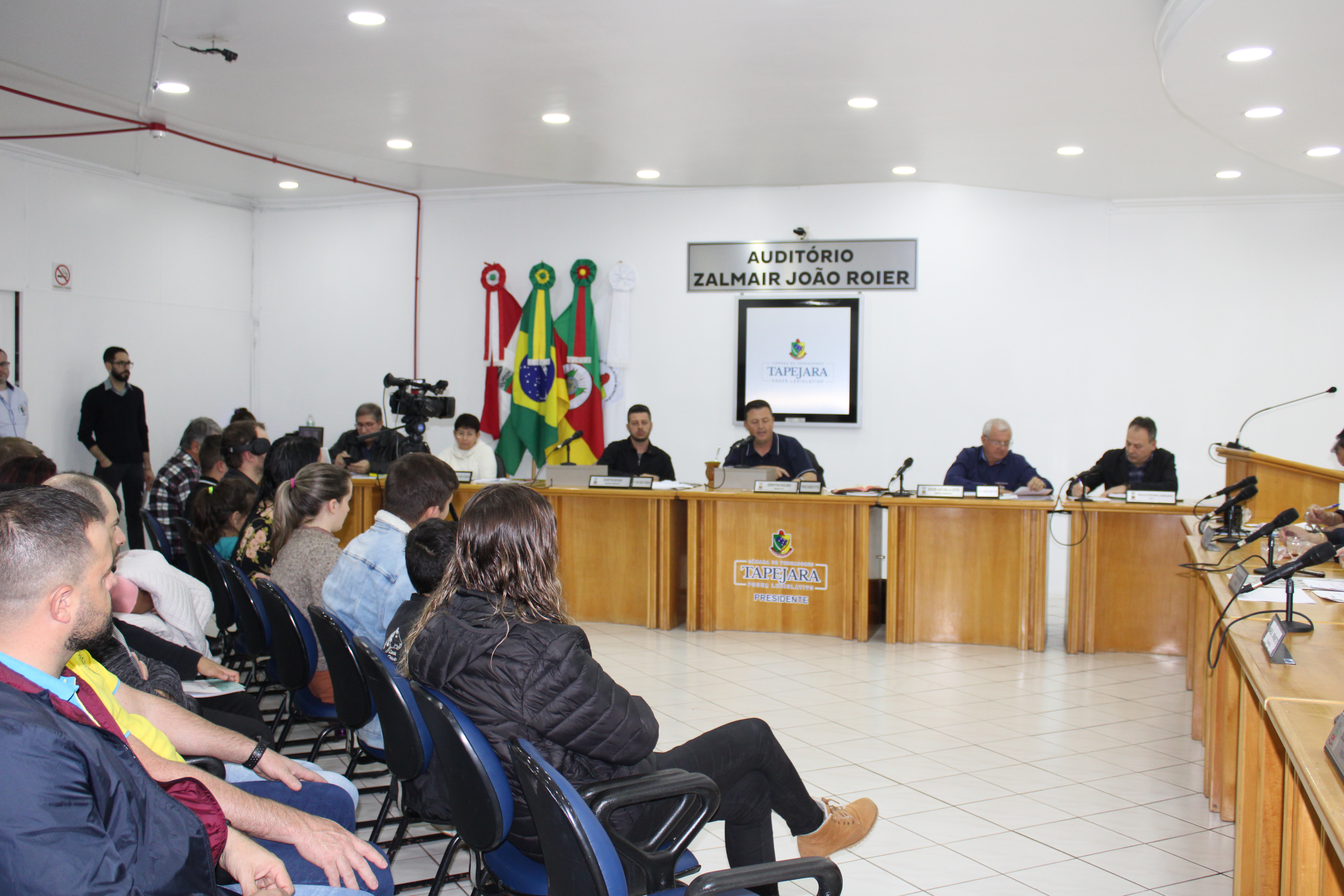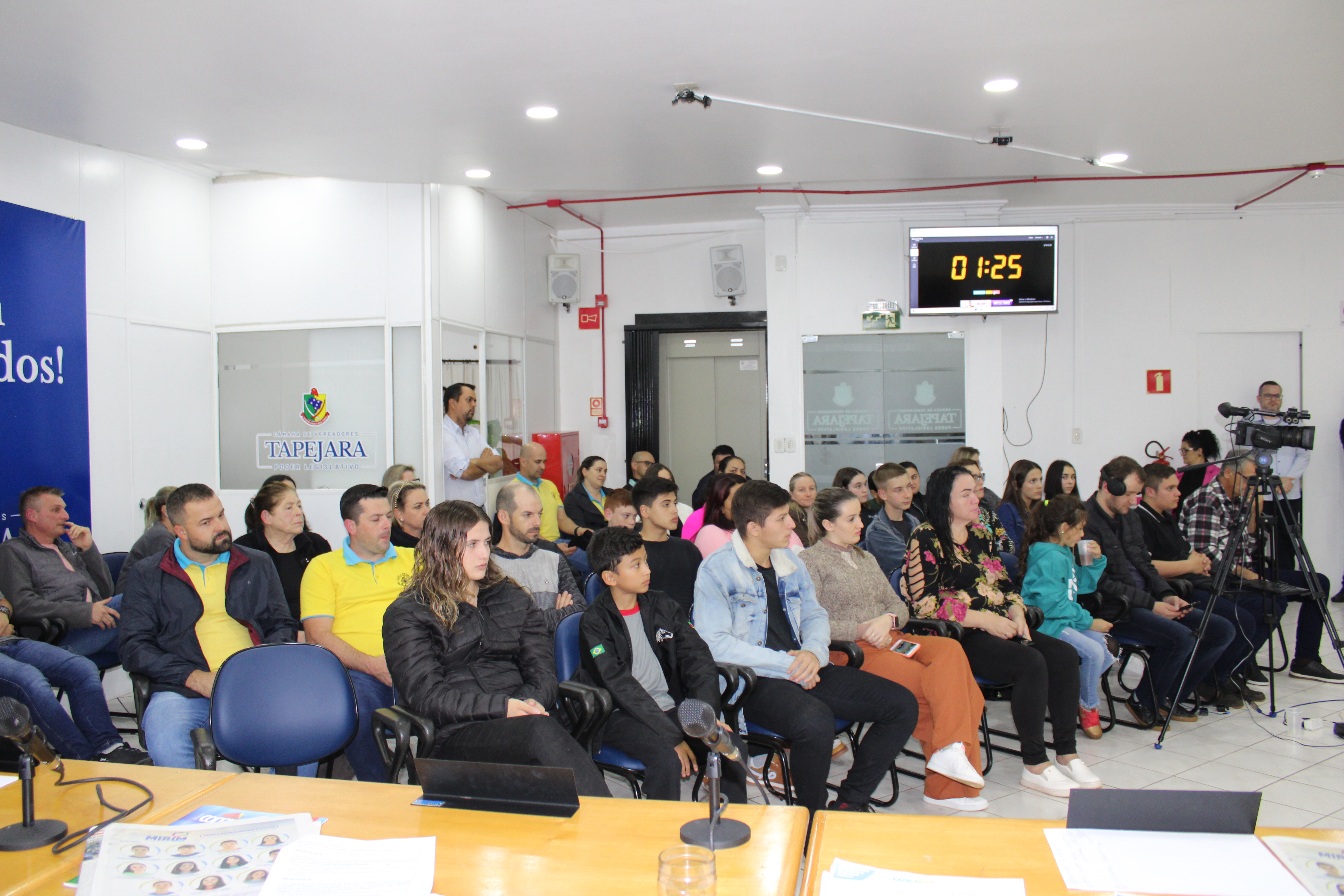 A Sessão Ordinária do dia 22 de maio contou com uma grande participação de público, entre eles os Vereadores Mirins e seus Suplentes que vieram acompanhados de seus familiares, Professores e representantes da Direção das Escolas. Ainda a presença dos integrantes do Grupo de Ciclismo Tapejara, do Sr. Elso Scariot - Vice Presidente da Coprel, Jaqueline Palma - Coordenadora da Educação, Jackson G. da Silva - Secretário da Habitação.