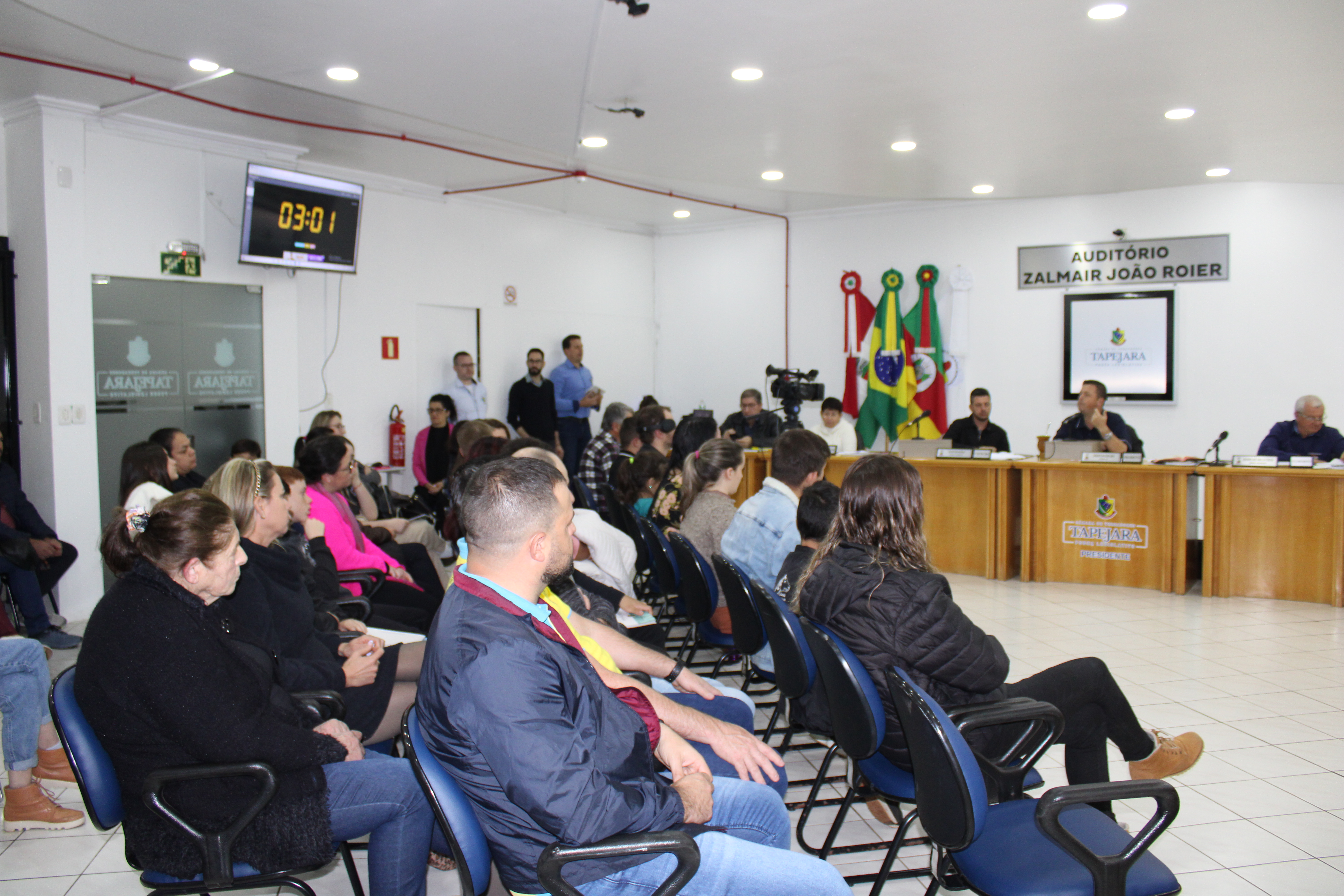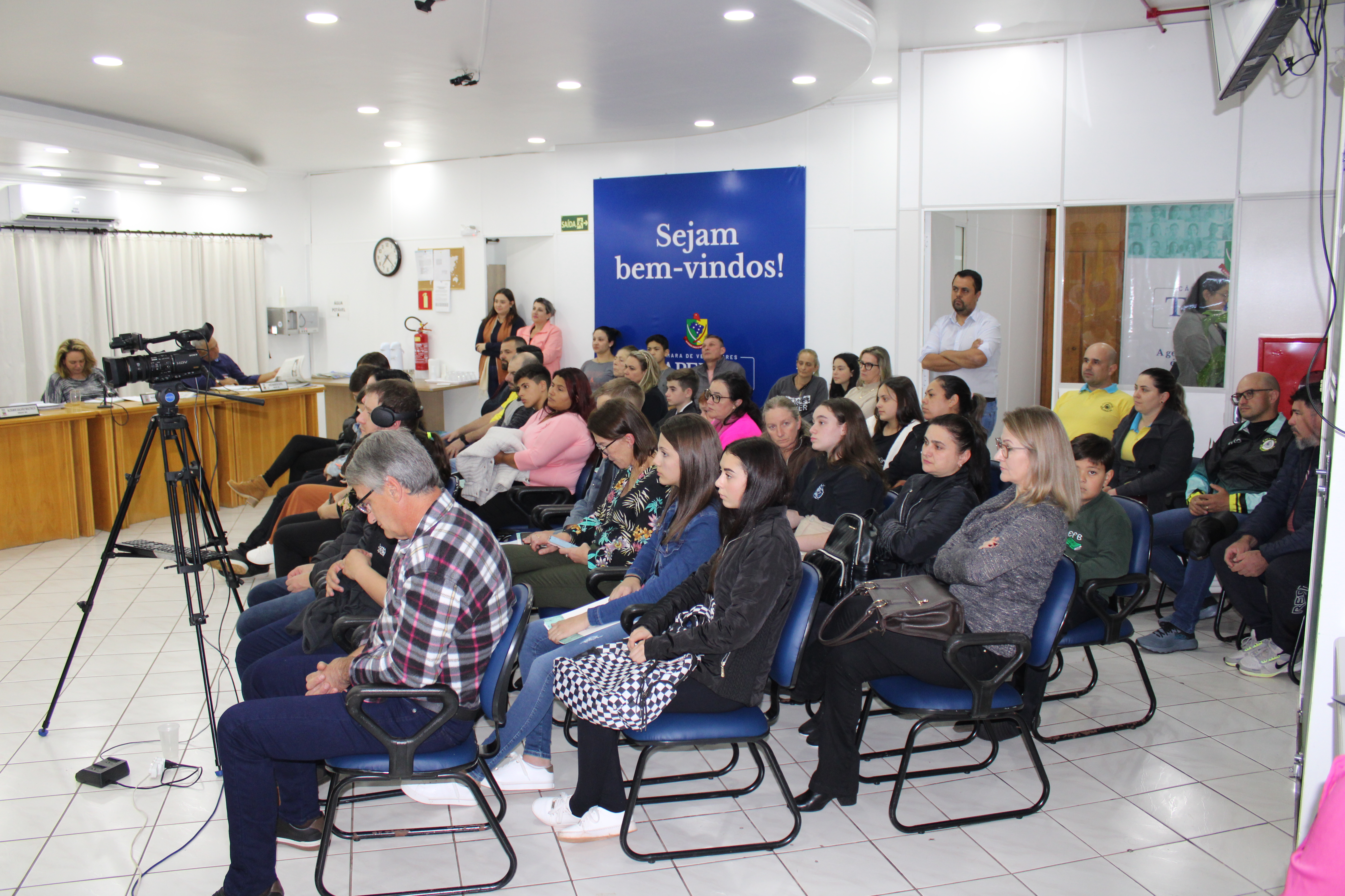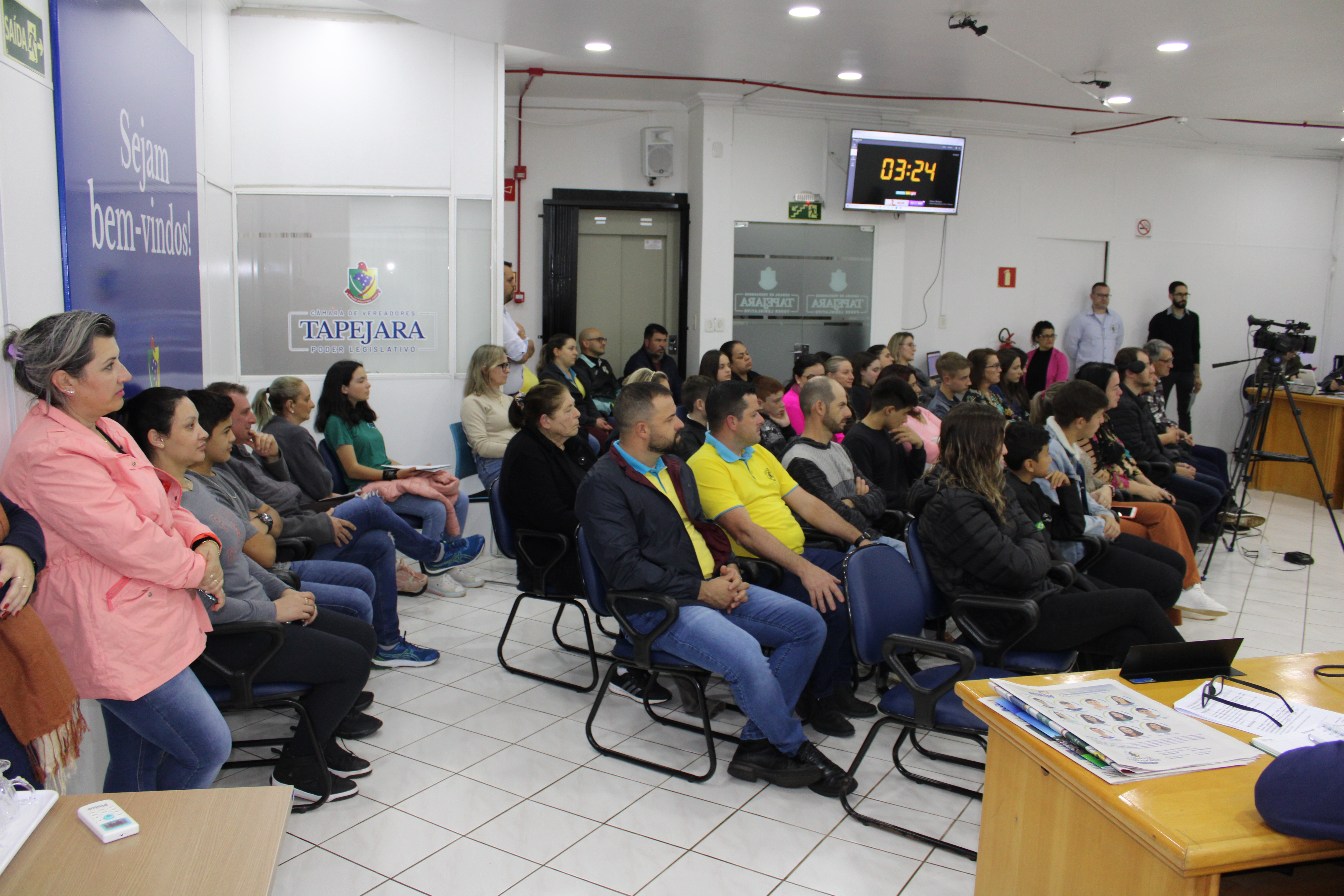 A Sessão Ordinária do dia 22 de maio contou com uma grande participação de público, entre eles os Vereadores Mirins e seus Suplentes que vieram acompanhados de seus familiares, Professores e representantes da Direção das Escolas. Ainda a presença dos integrantes do Grupo de Ciclismo Tapejara, do Sr. Elso Scariot - Vice Presidente da Coprel, Jaqueline Palma - Coordenadora da Educação, Jackson G. da Silva - Secretário da Habitação.