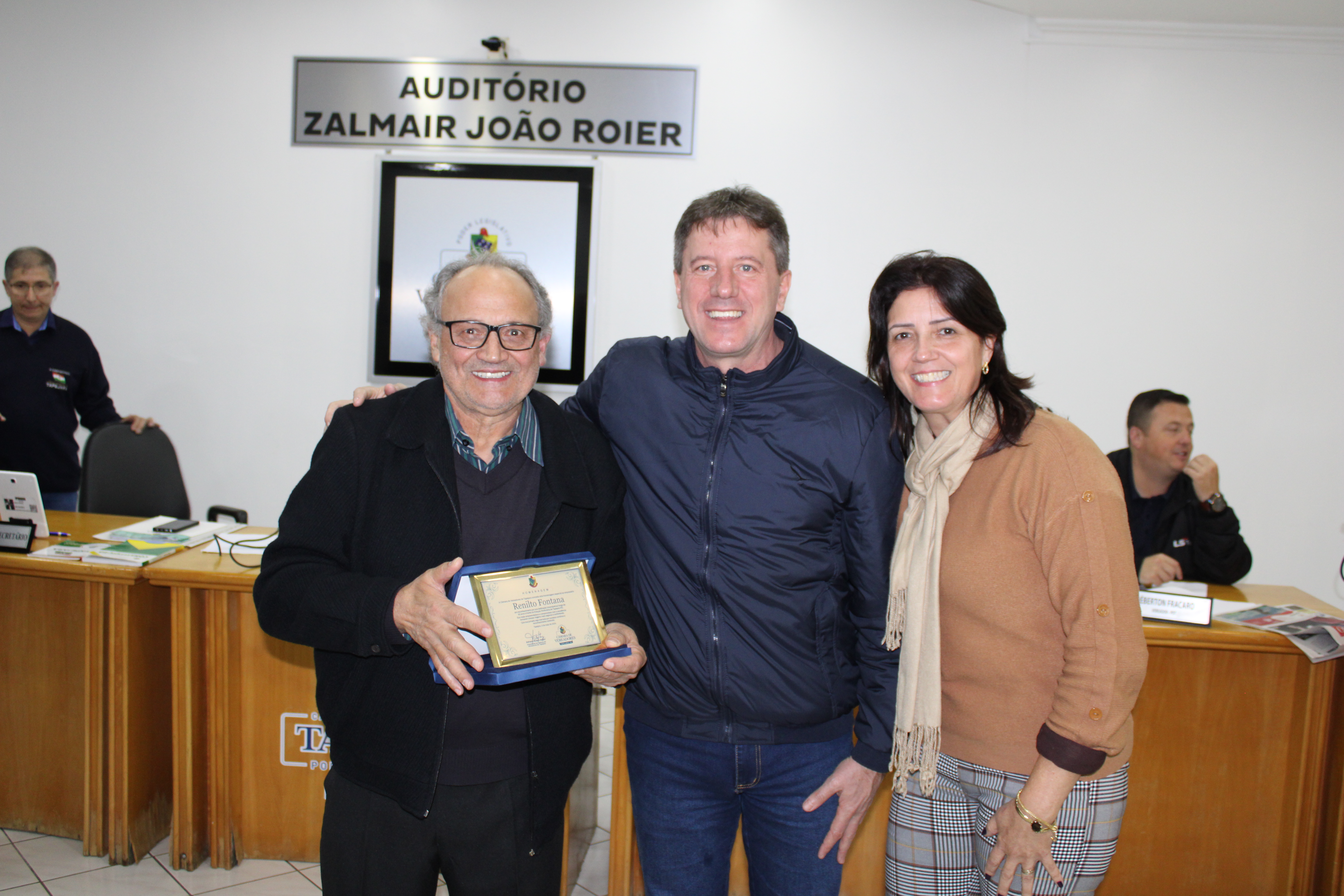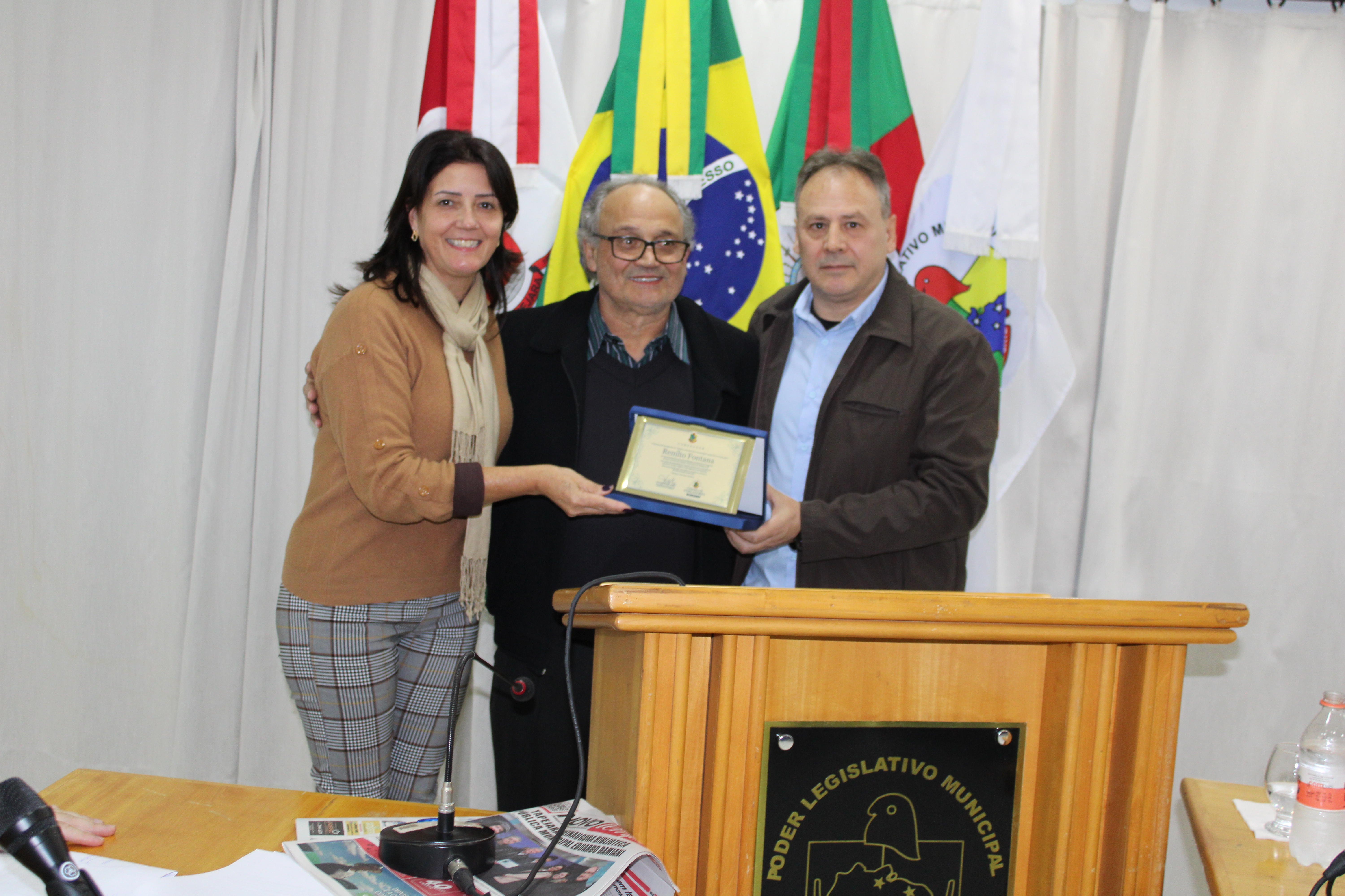 A Sessão Ordinária do dia 03 de junho, contou com a participação do Prefeito Evanir Wolf (Big), Secretário da Habitação Darcilo Fracaro, Secretário da Industria e Comércio Claudio Sossella, Secretário da Fazenda Alcir Bianchi, Coordenador da Habitação Jackson Geisel da Silva, Coordenador do Parque de Rodeios Pita Lângaro, Assessor do Deputado Luciano Silveira Ramir Sebben, Integrantes da Assessoria de Comunicação Eduardo Canali e Guilherme Parizotto, Vereador Mirim Arthur Willian Zeferino, Integrantes do Partido Liberal Letícia Ghibaudo e Marcos Mello, Advogado Sidinei Teixeira e os familiares do Homenageado da noite: Issac Fontana (Filho) Ajadil Fontana e Vagner Fontana (Sobrinhos).