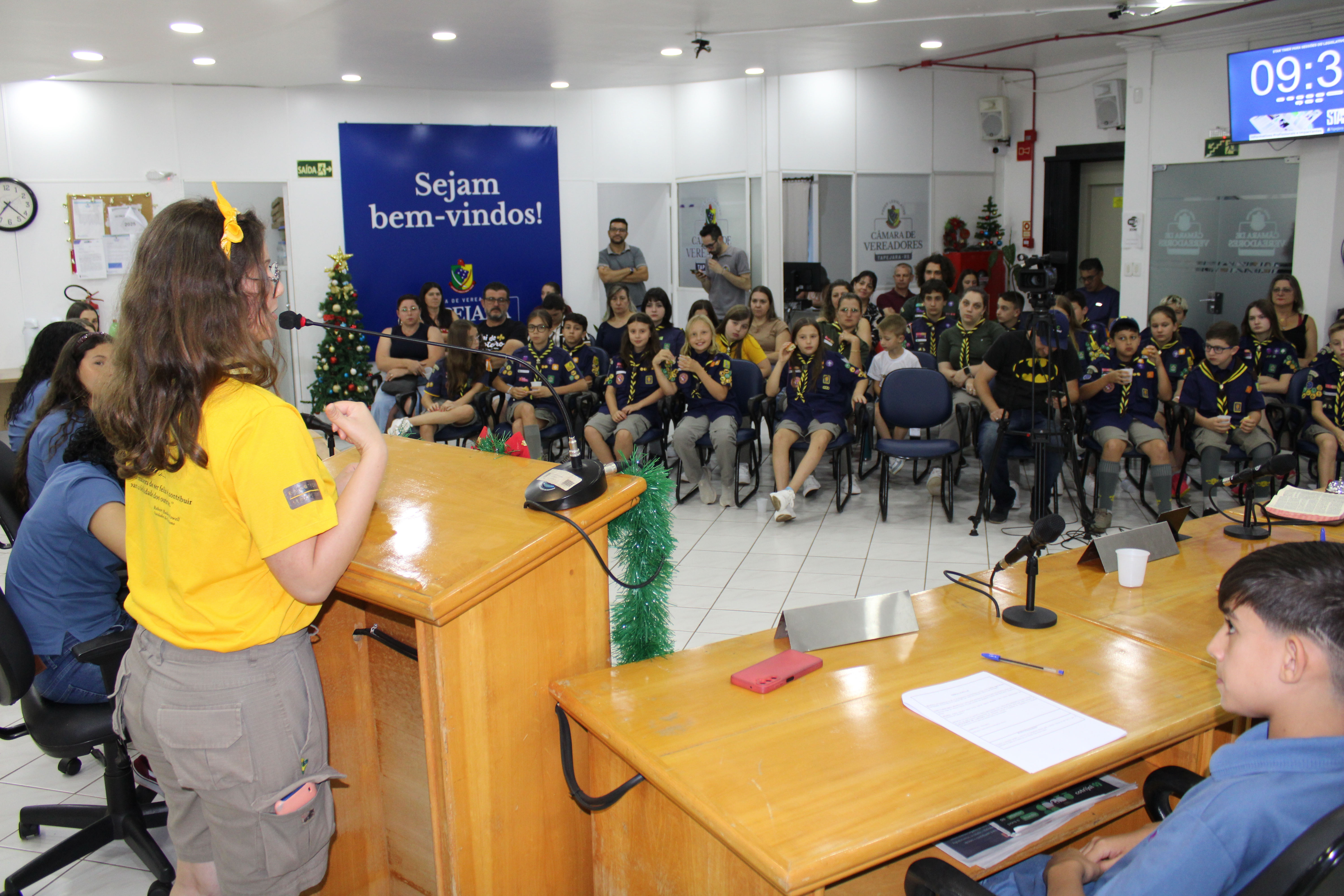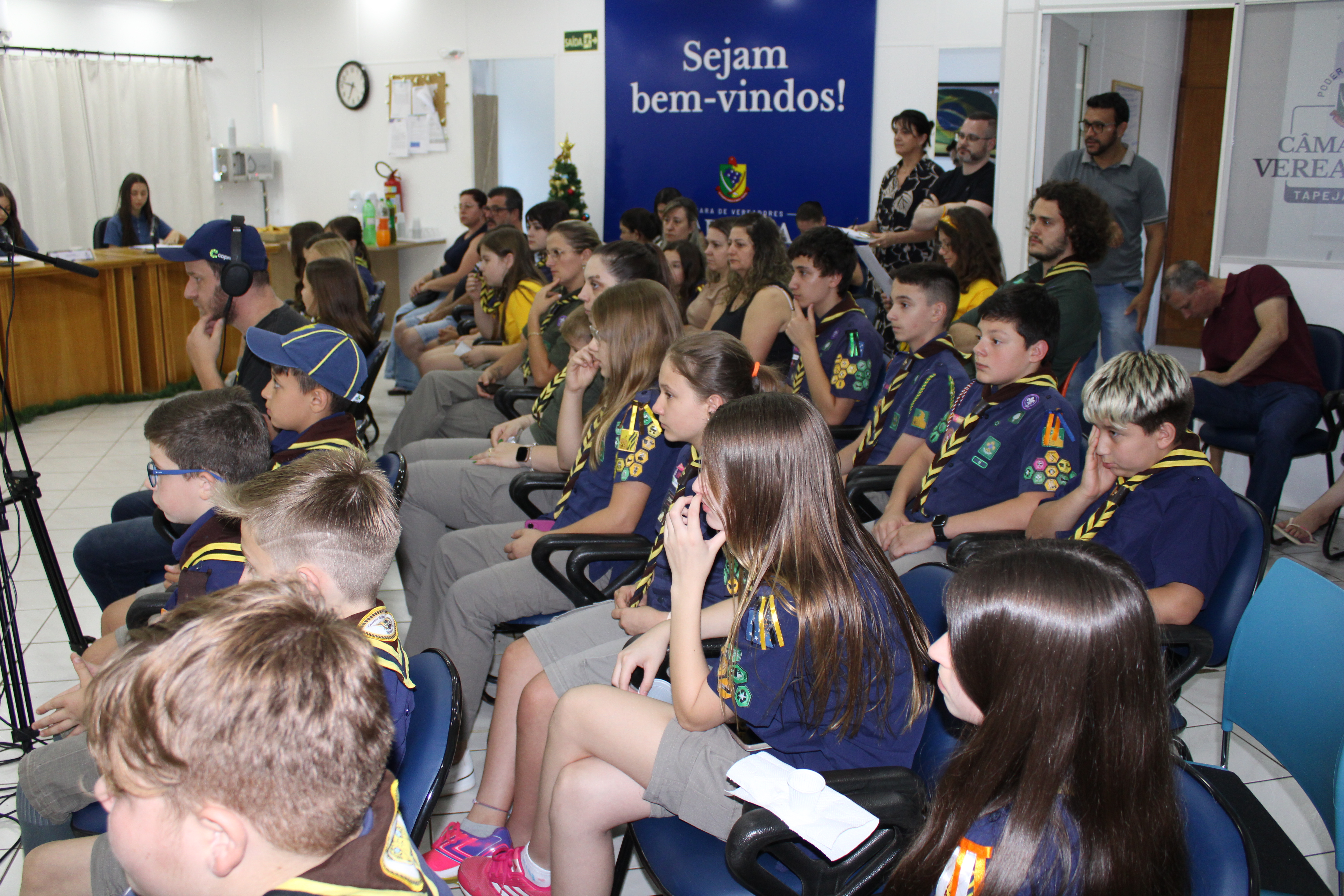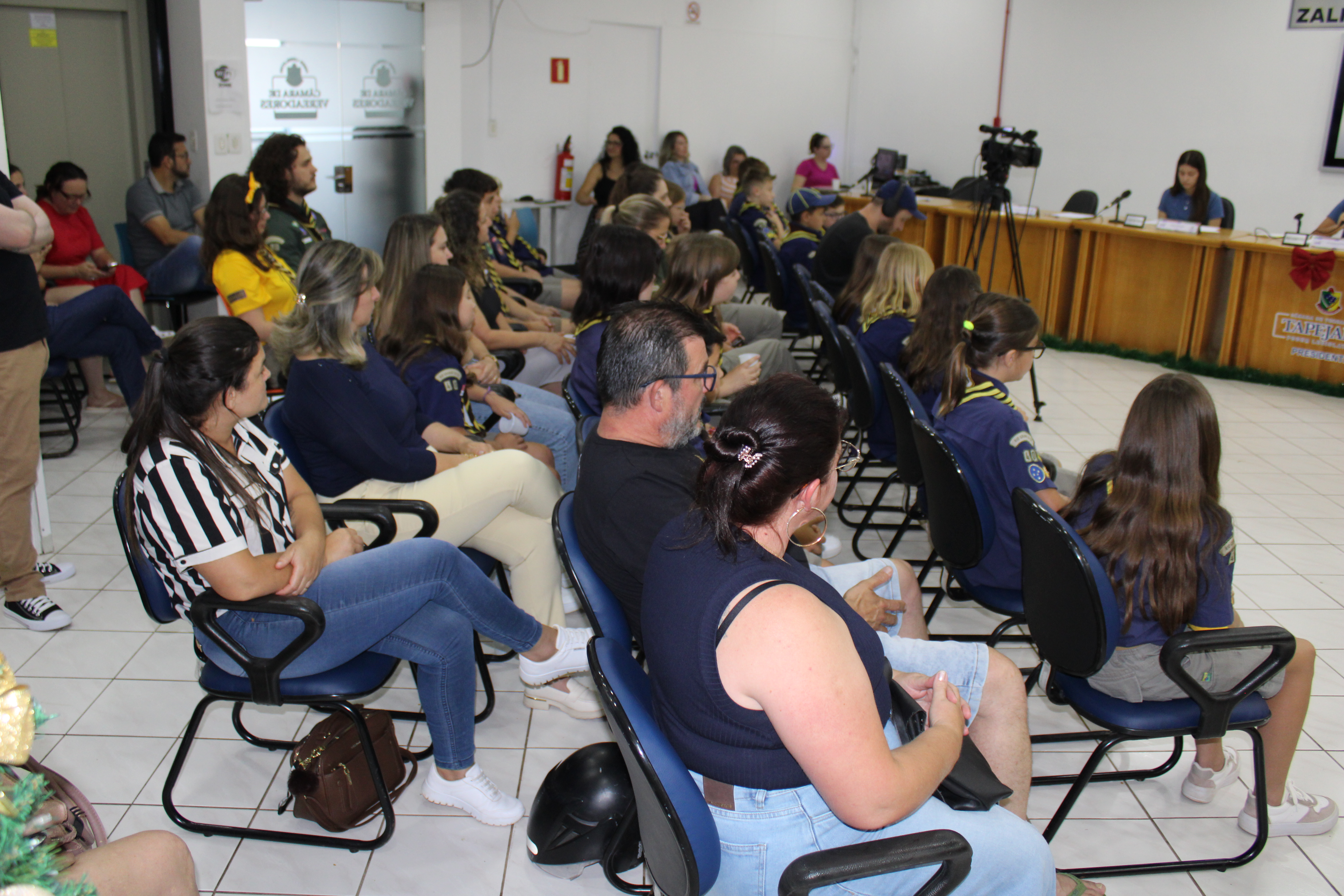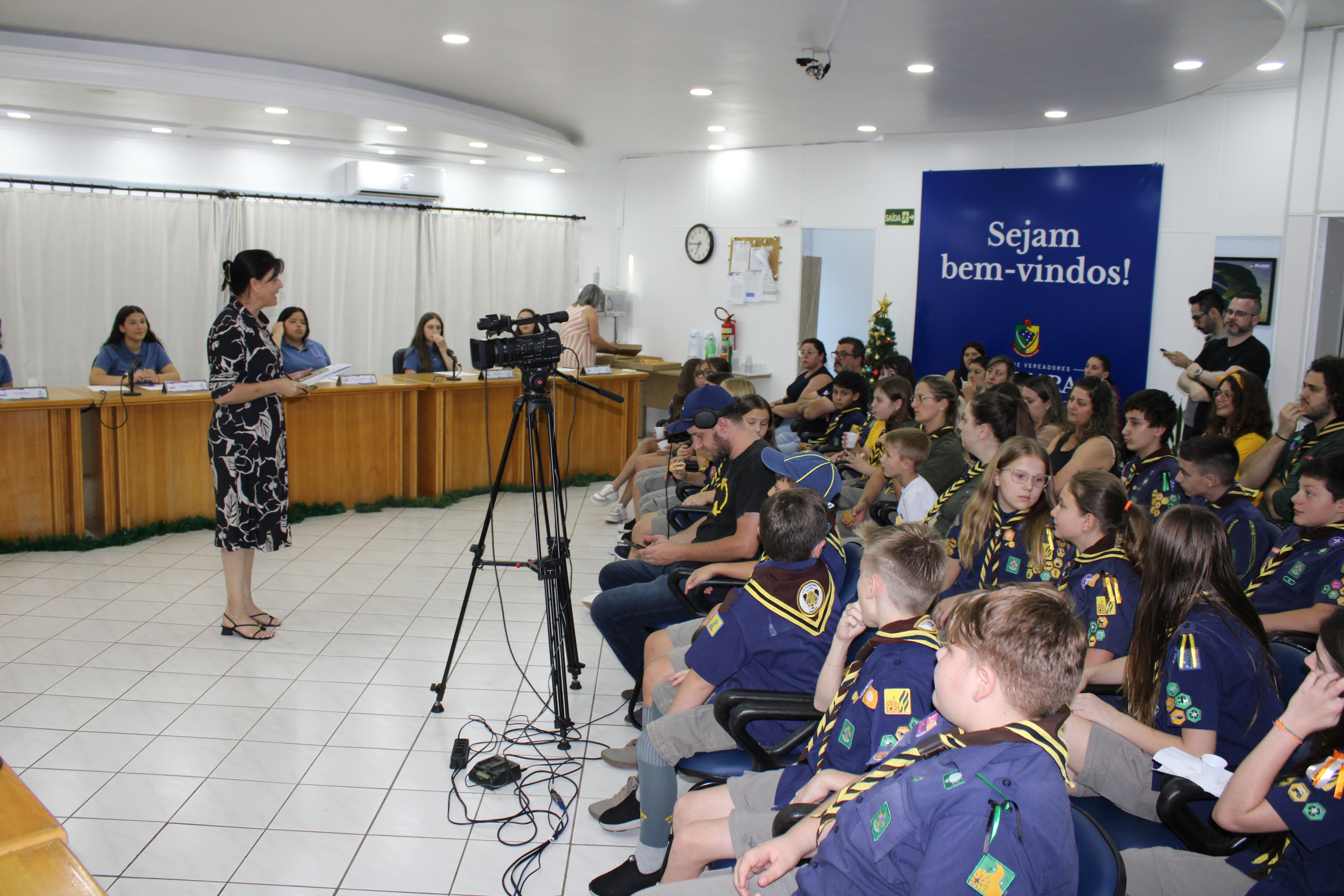 Com fundamento no art. 43 do Regimento Interno Mirim, foi convidada a Sra. Letícia Agnes Bruch, Representante dos Escoteiros de Tapejara para utilizar da tribuna e fazer uma explanação sobre o Movimento e em especial ao Grupo Escoteiro Tapejara. Na oportunidade os Verreadores Mirins puderam fazer muitas perguntas e esclarecer várias dúvidas e curiosidades que tinham sobre o assunto.