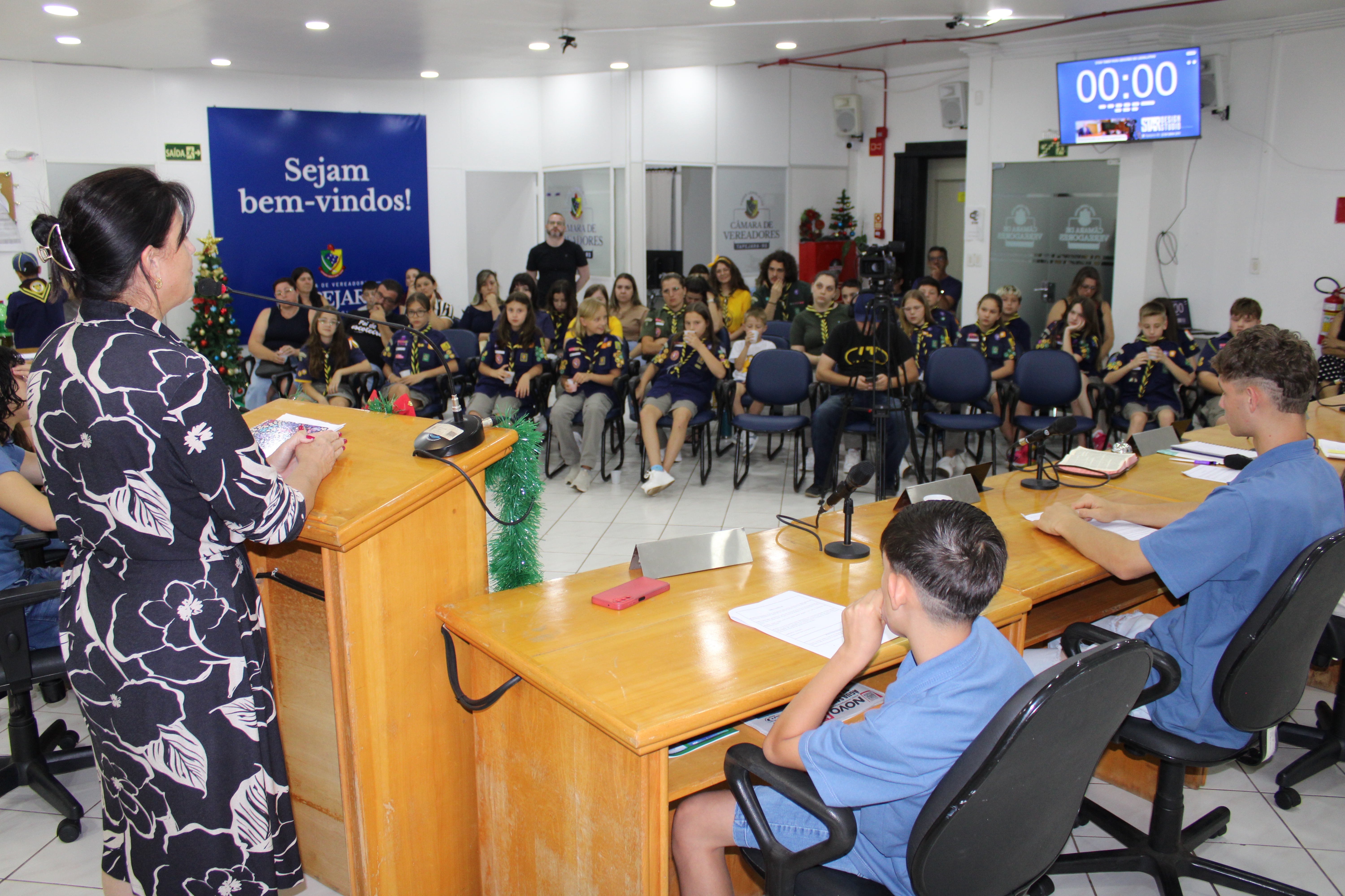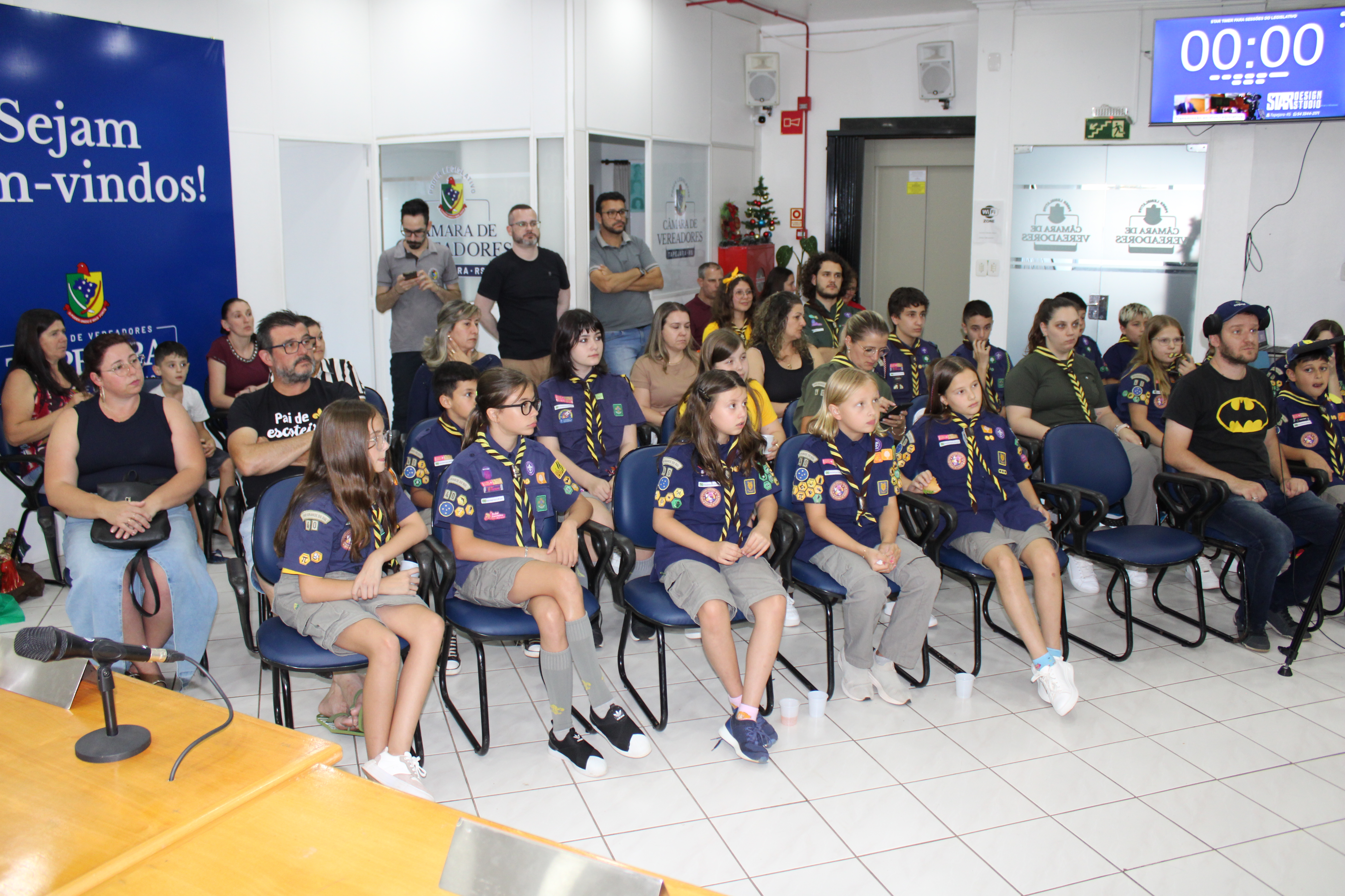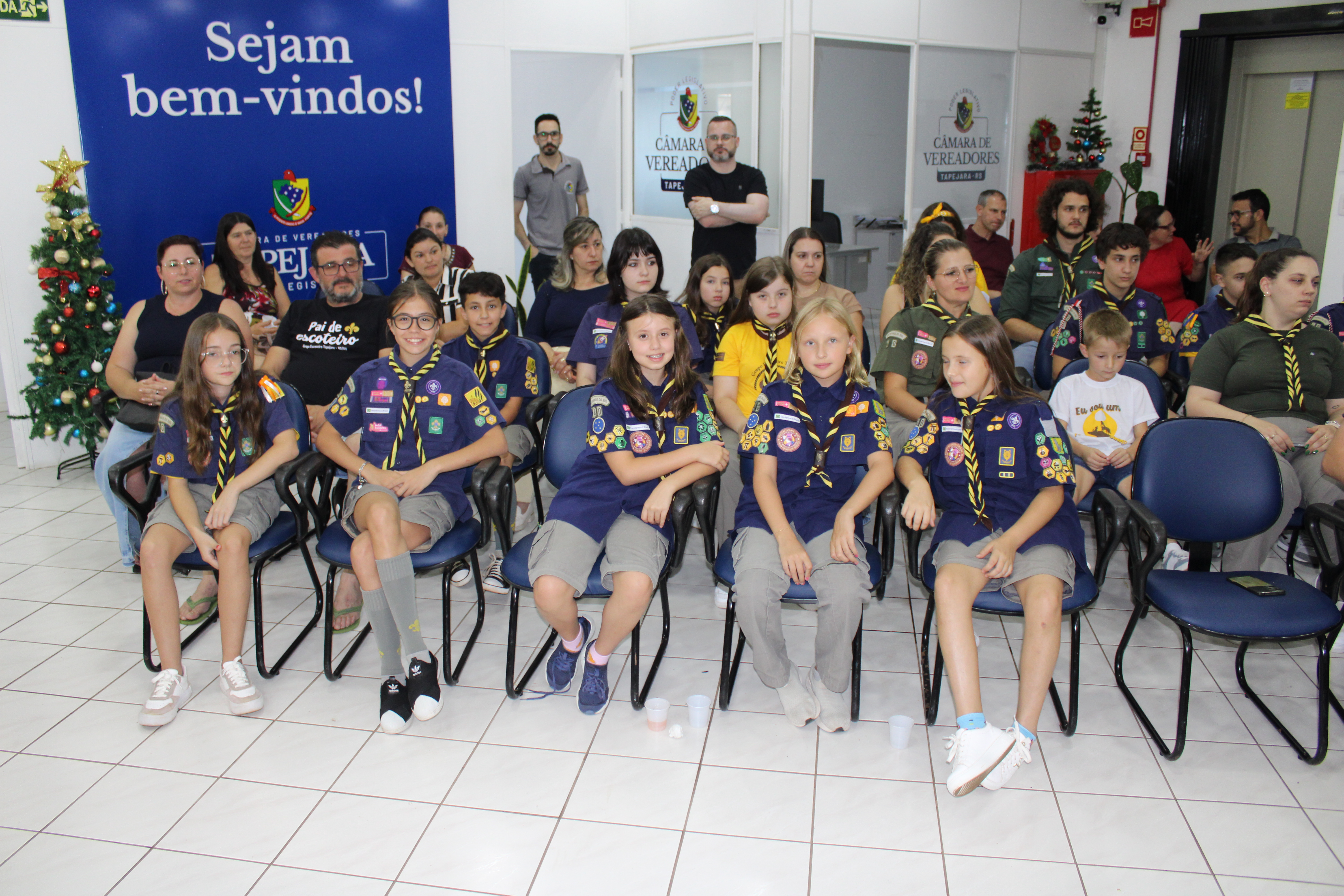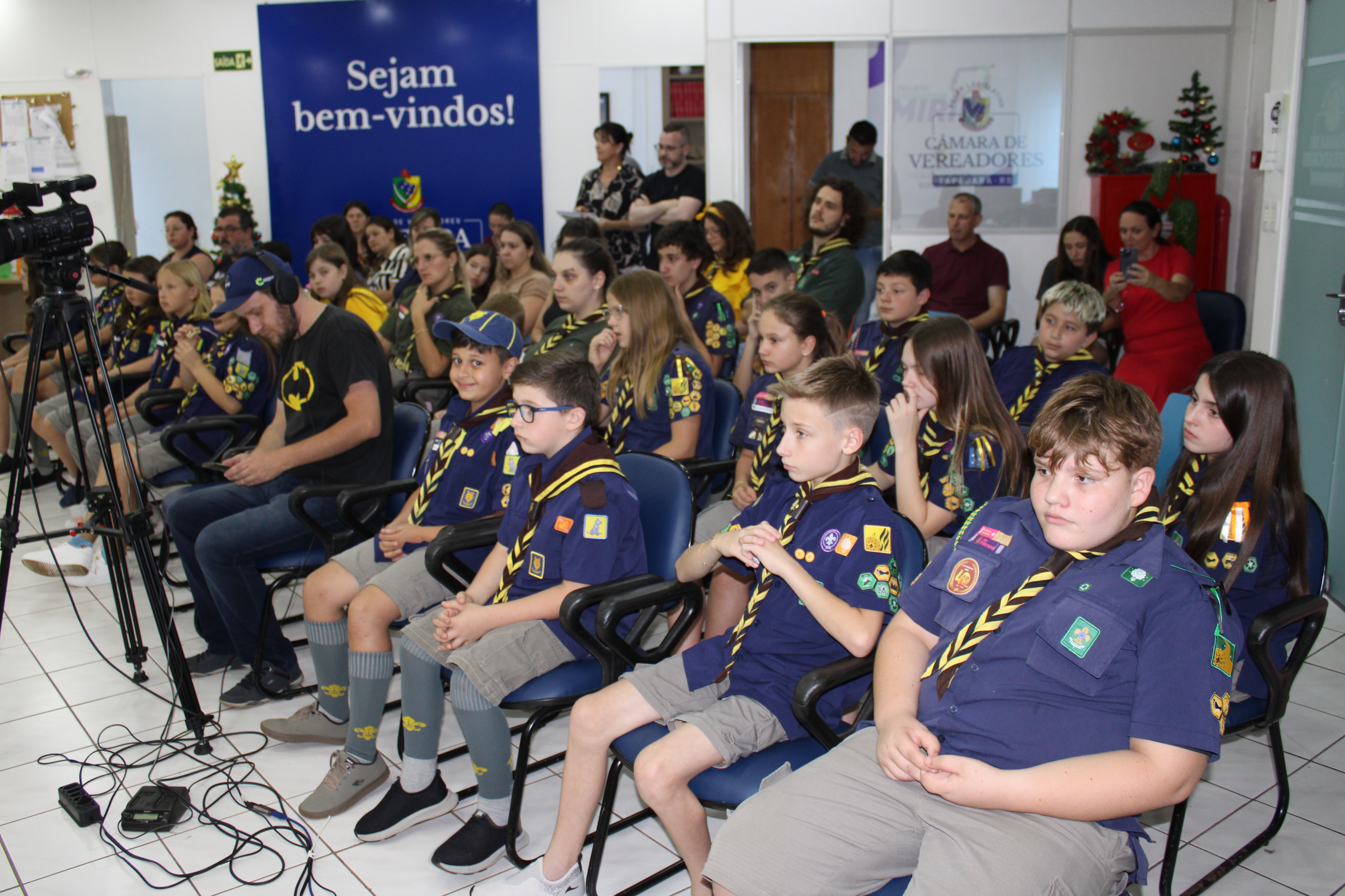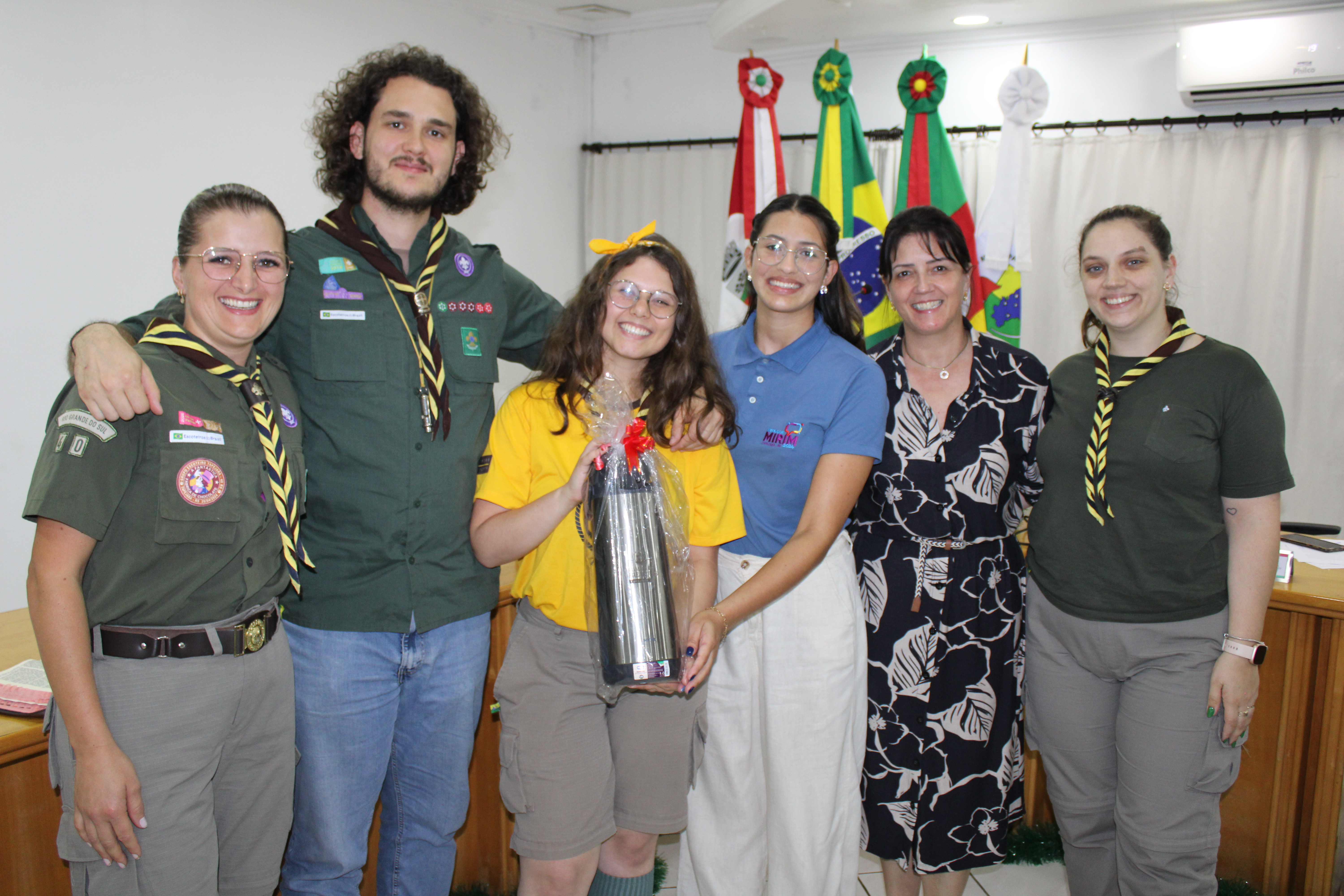 Com fundamento no art. 43 do Regimento Interno Mirim, foi convidada a Sra. Letícia Agnes Bruch, Representante dos Escoteiros de Tapejara para utilizar da tribuna e fazer uma explanação sobre o Movimento e em especial ao Grupo Escoteiro Tapejara. Na oportunidade os Verreadores Mirins puderam fazer muitas perguntas e esclarecer várias dúvidas e curiosidades que tinham sobre o assunto.