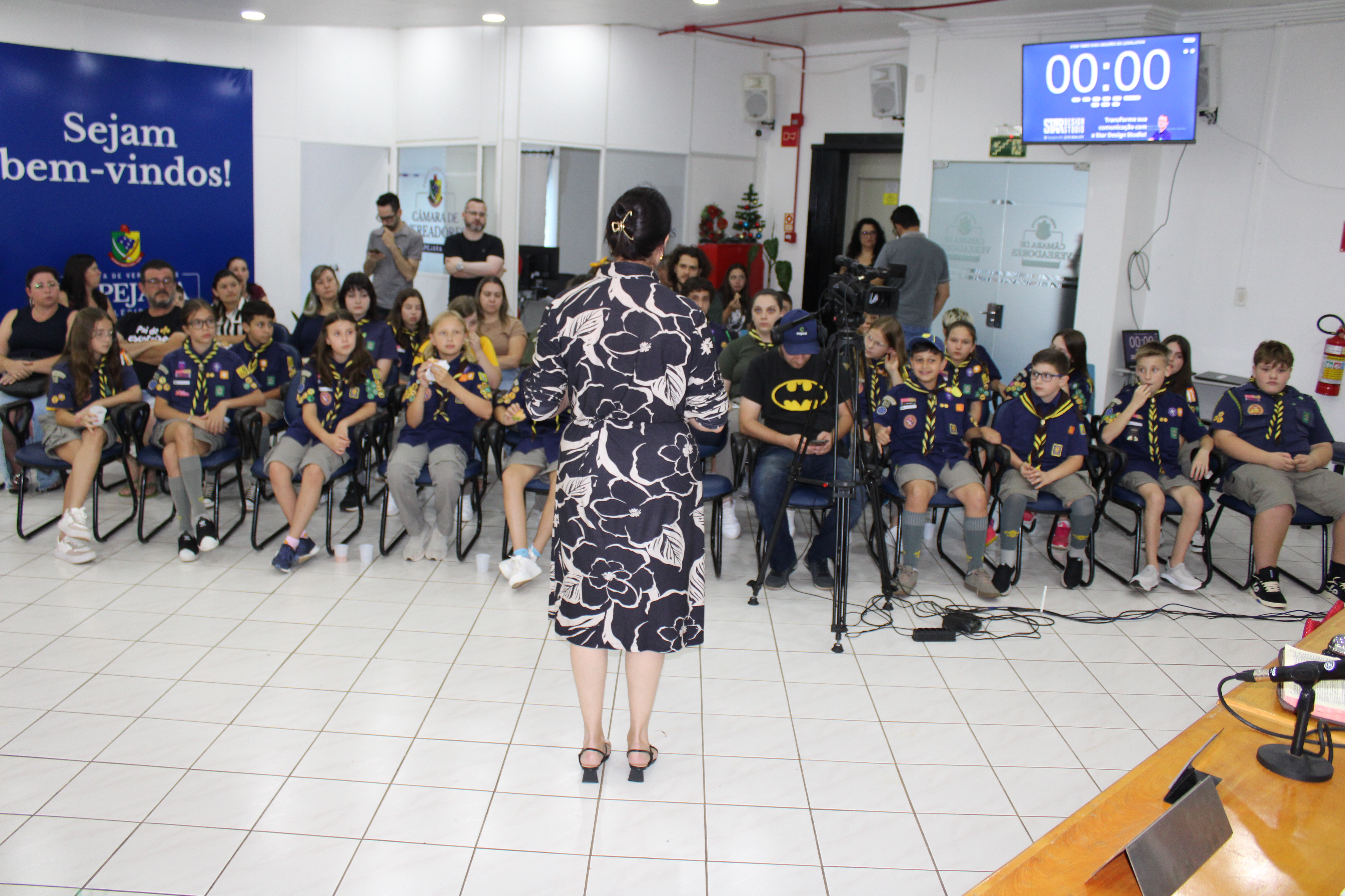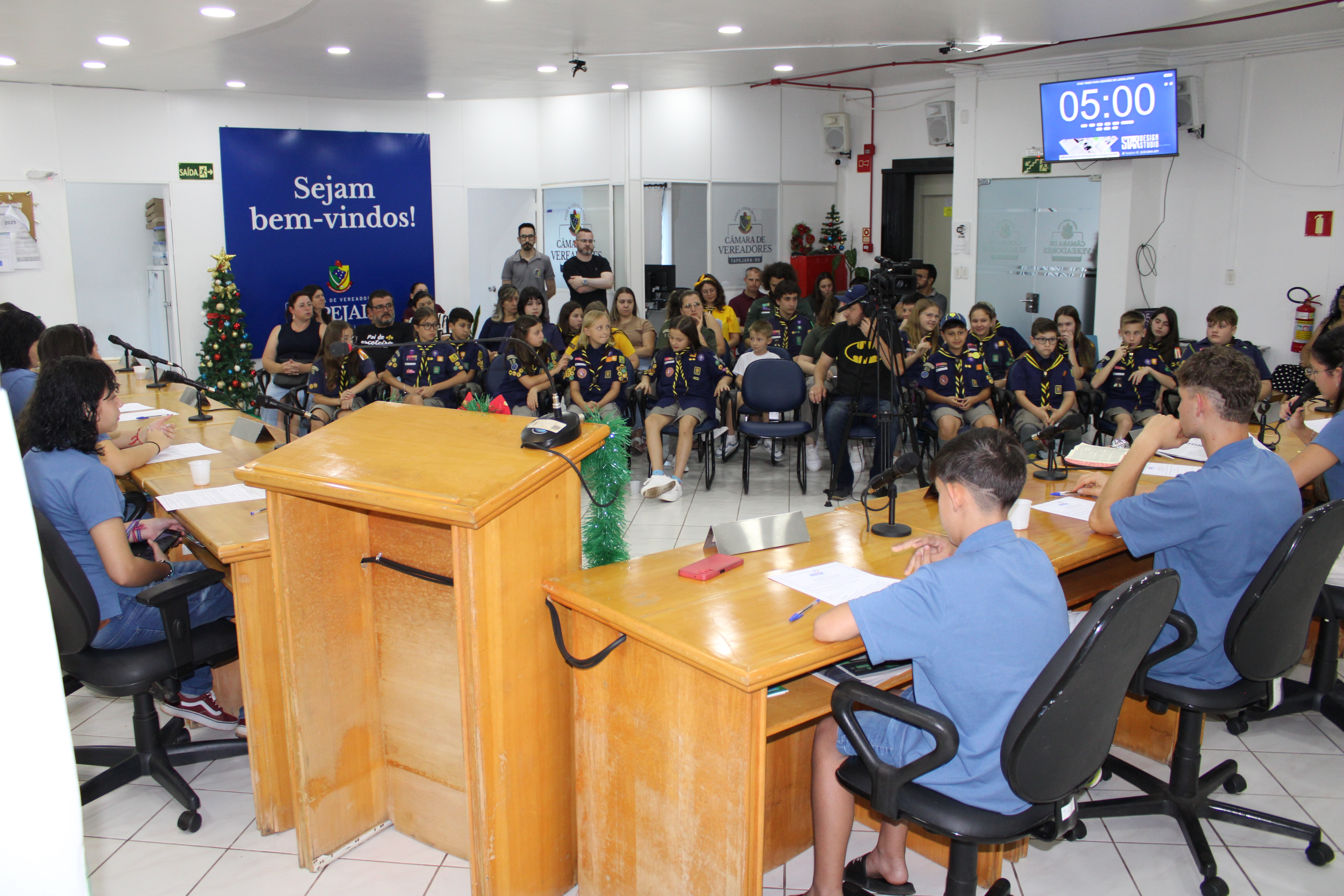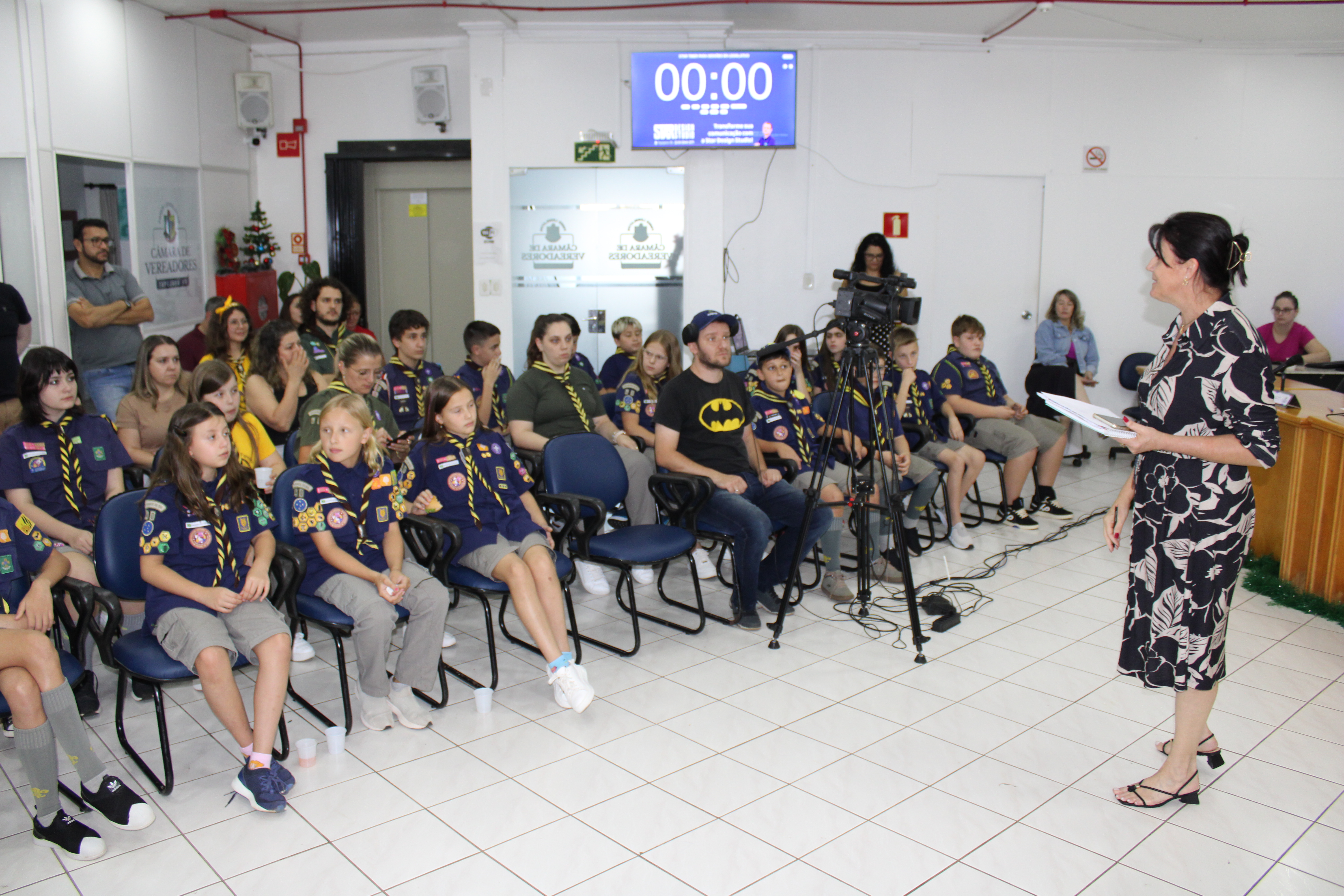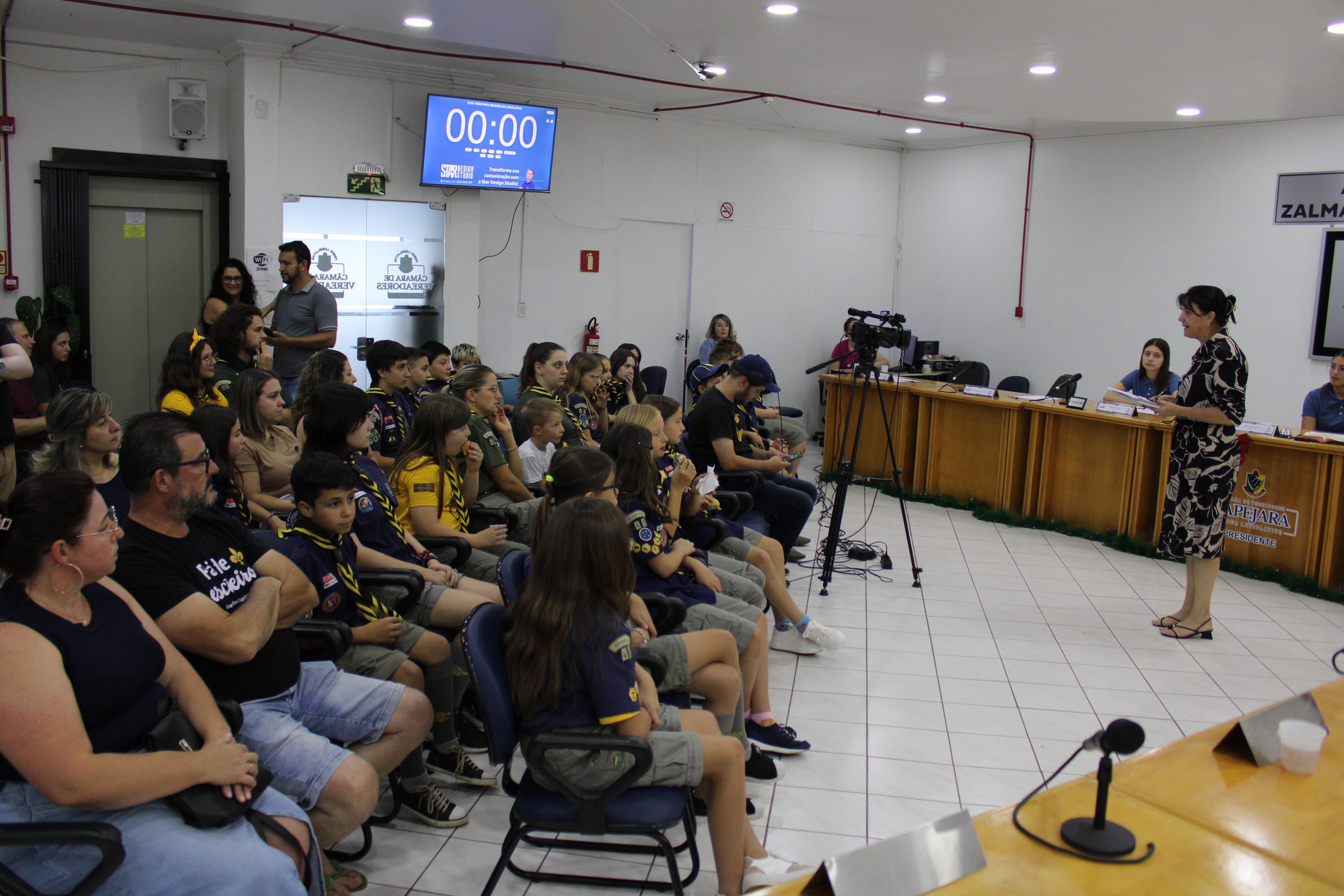 Com fundamento no art. 43 do Regimento Interno Mirim, foi convidada a Sra. Letícia Agnes Bruch, Representante dos Escoteiros de Tapejara para utilizar da tribuna e fazer uma explanação sobre o Movimento e em especial ao Grupo Escoteiro Tapejara. Na oportunidade os Verreadores Mirins puderam fazer muitas perguntas e esclarecer várias dúvidas e curiosidades que tinham sobre o assunto.