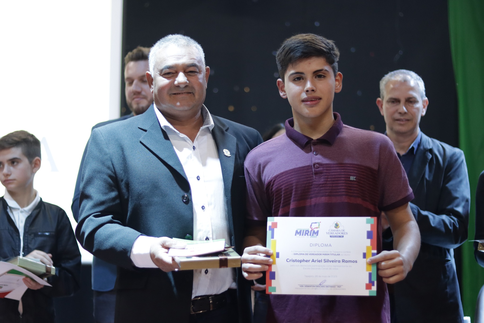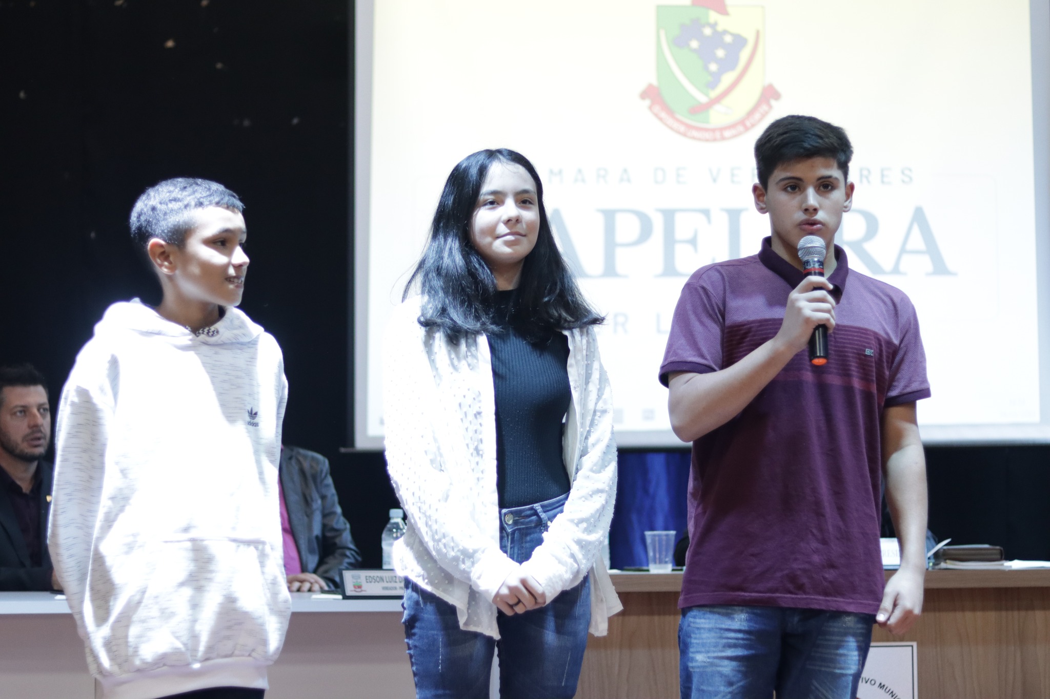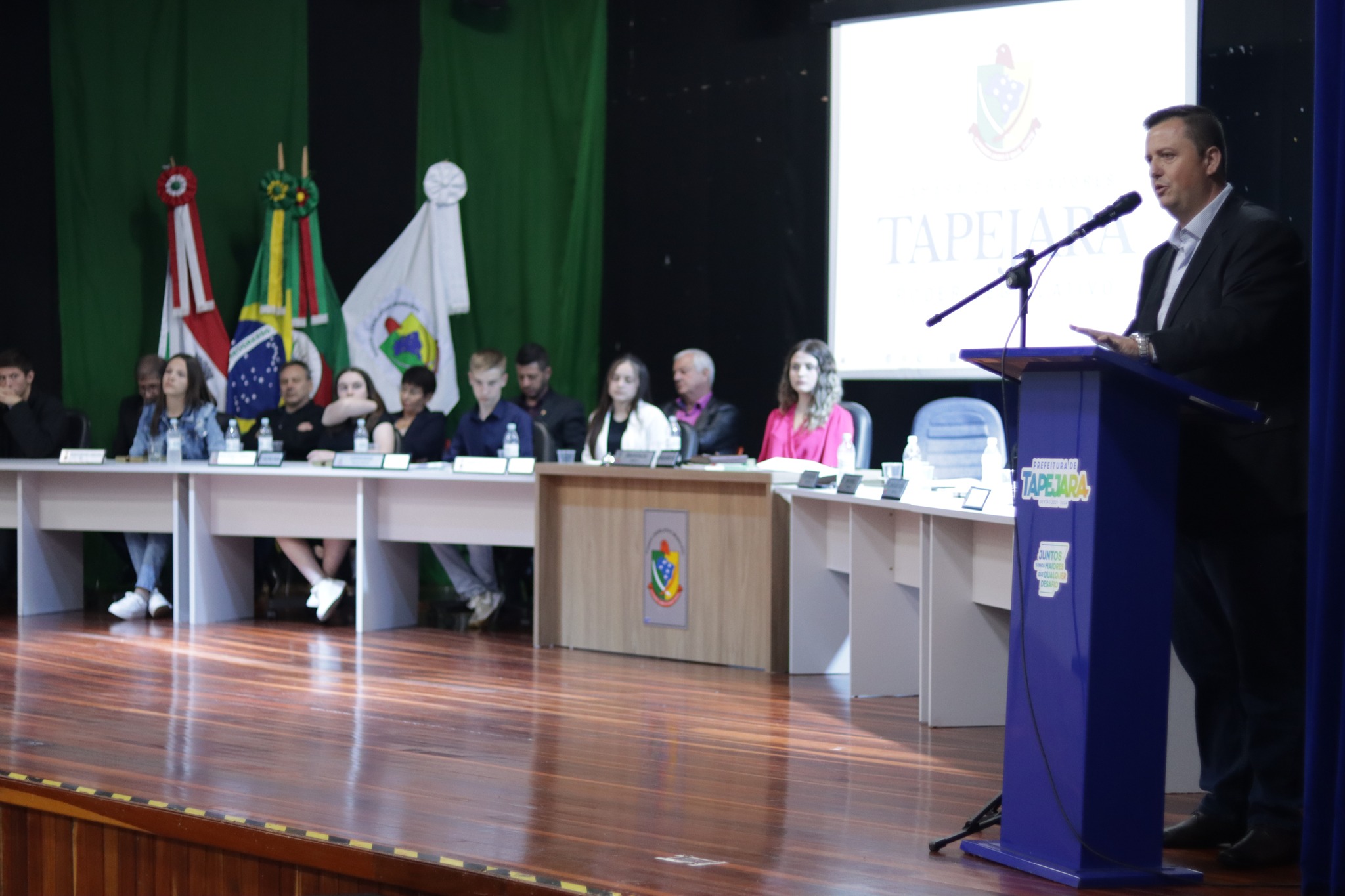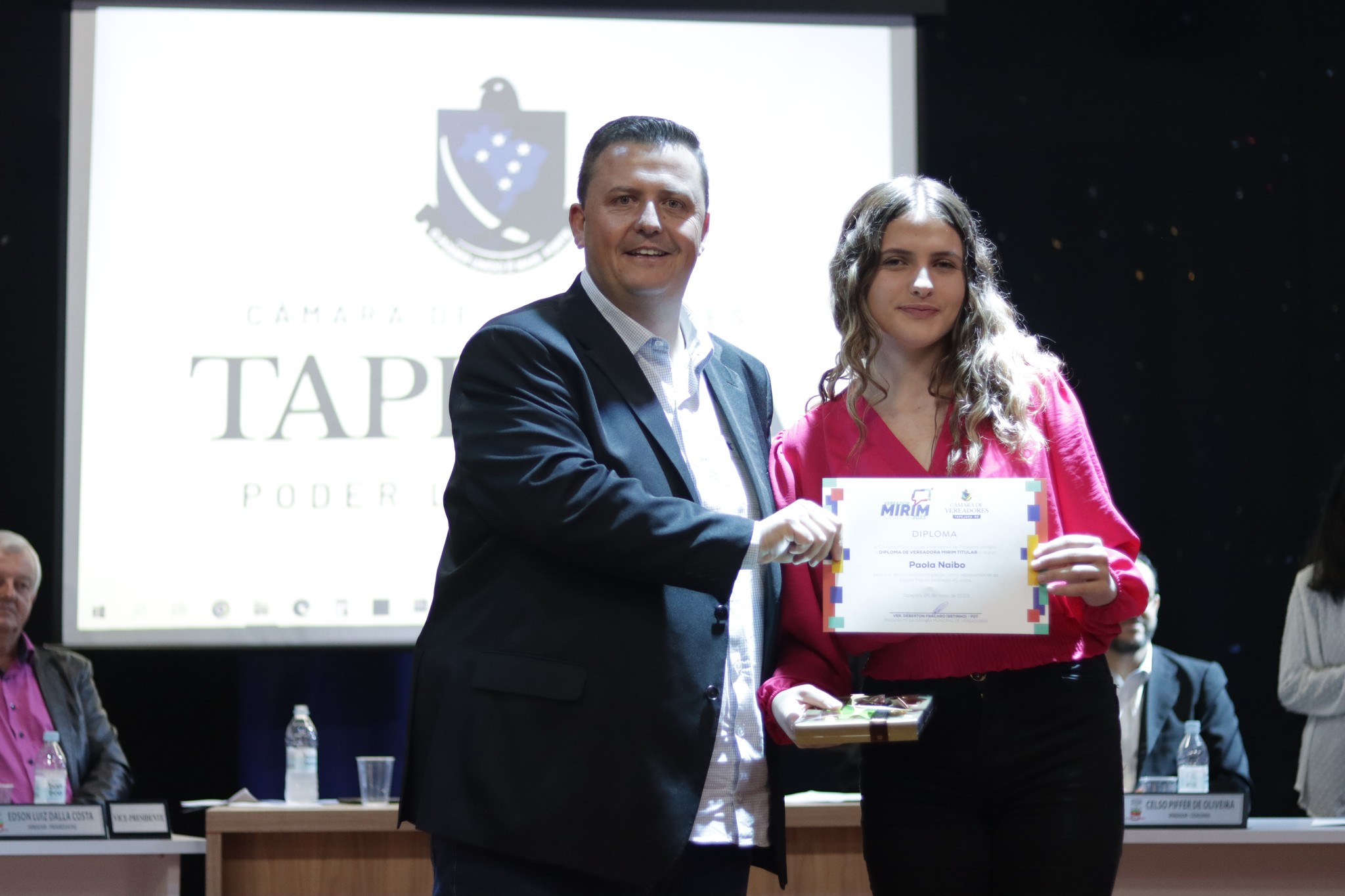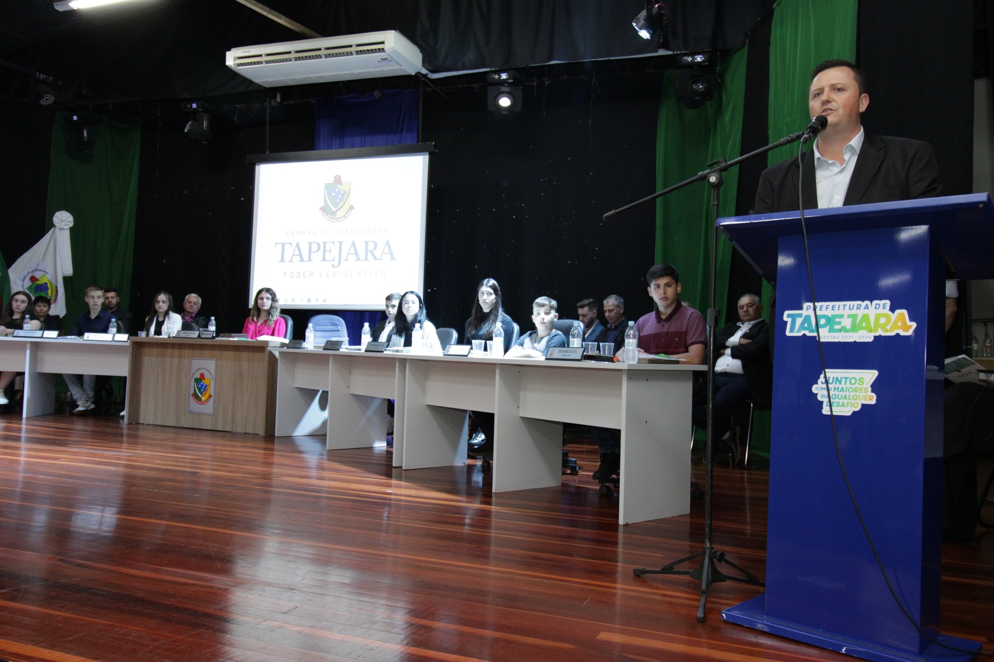 Aconteceu na noite de sexta feira dia 26 de maio no auditório do Centro Cultural, a Sessão Solene com a Posse e Diplomação dos Vereadores Mirins de Tapejara.