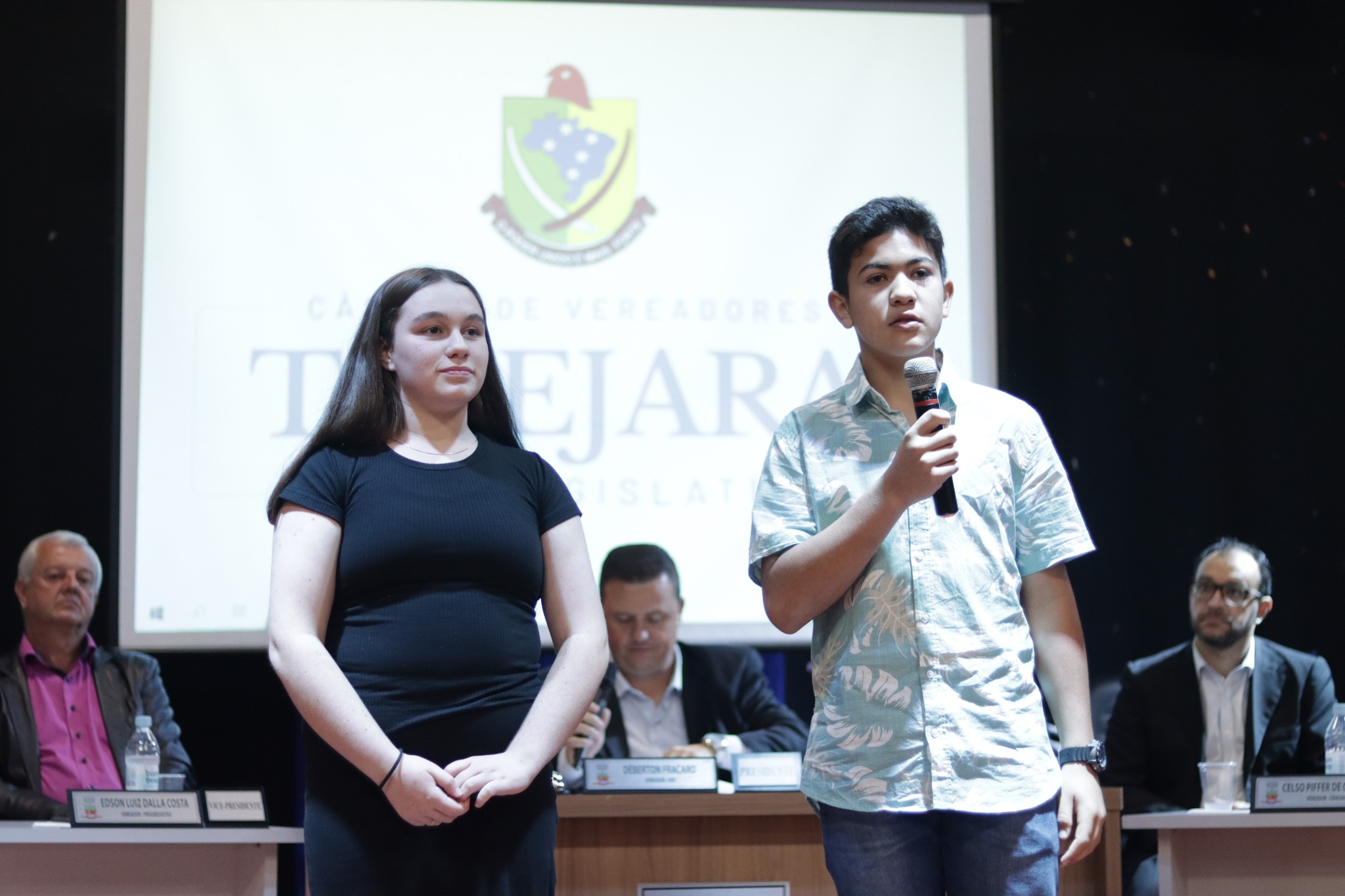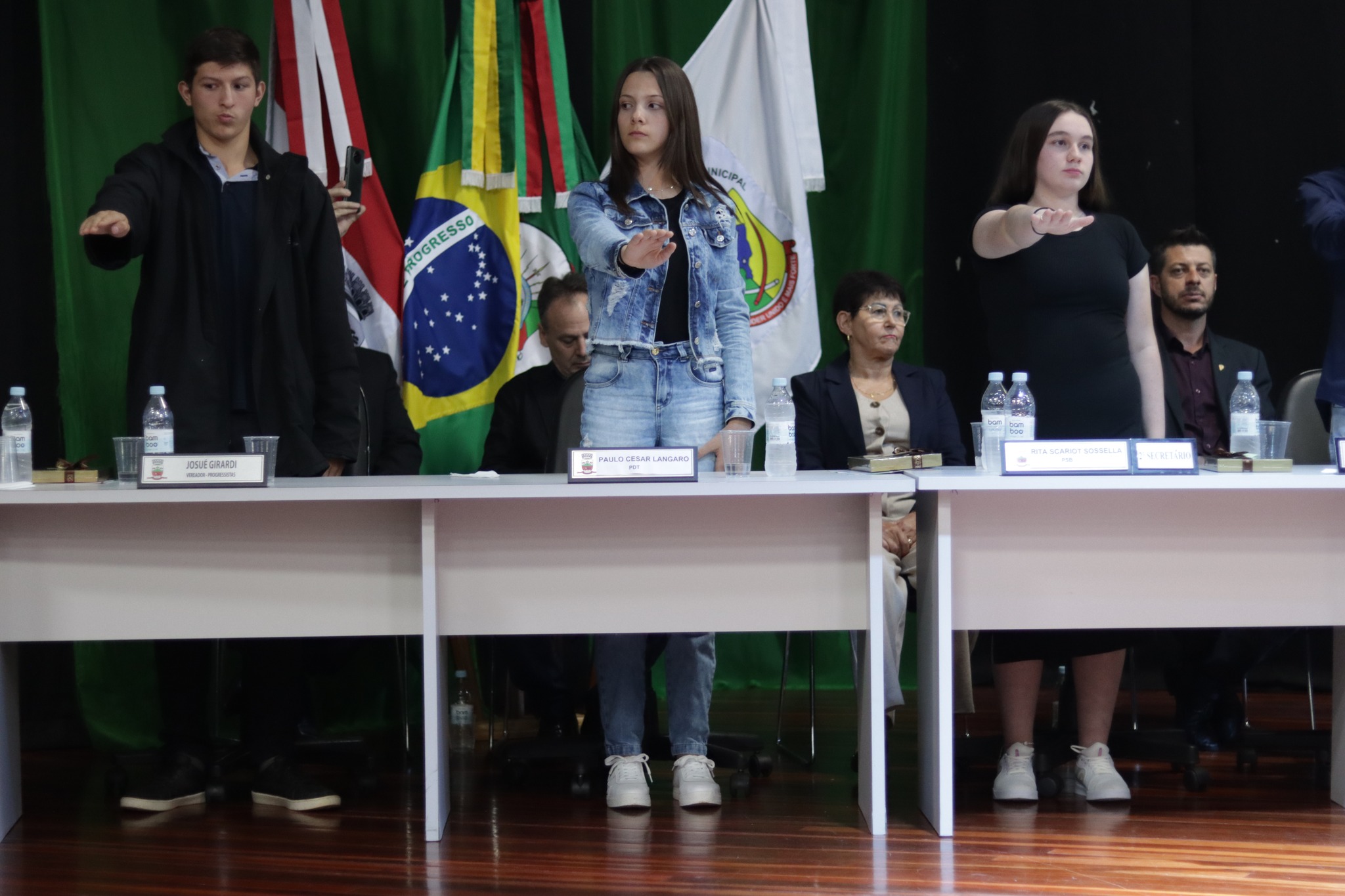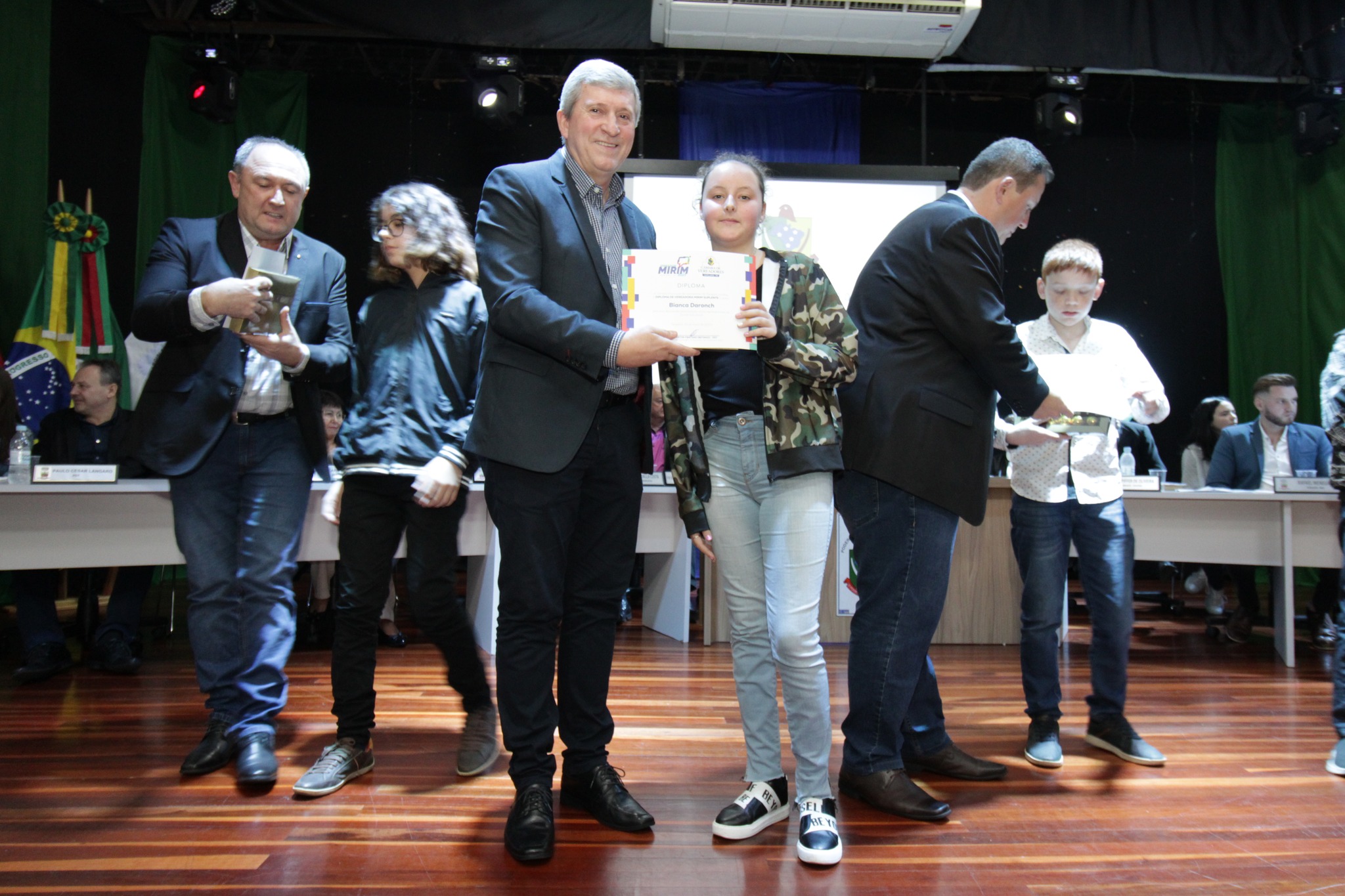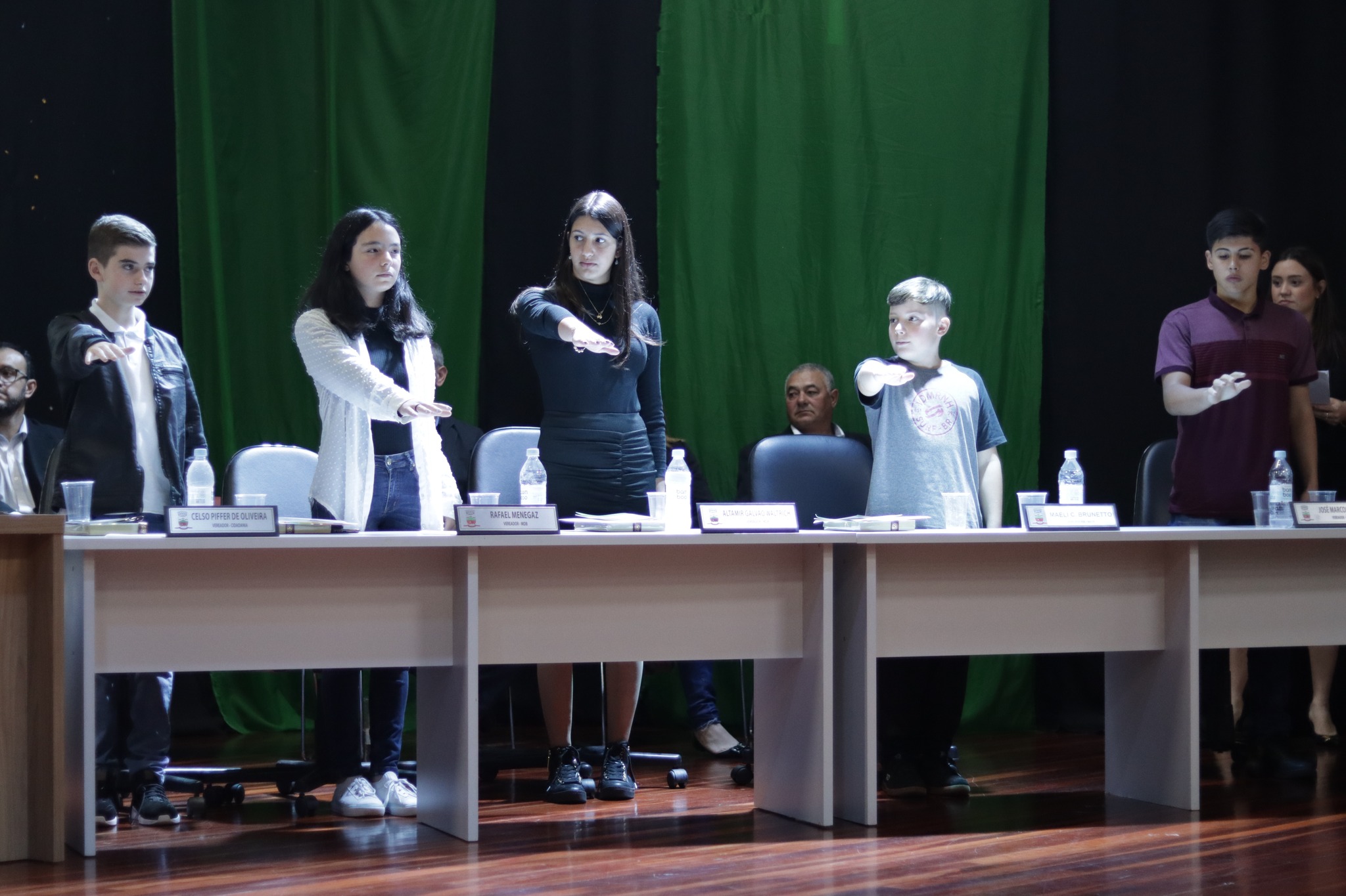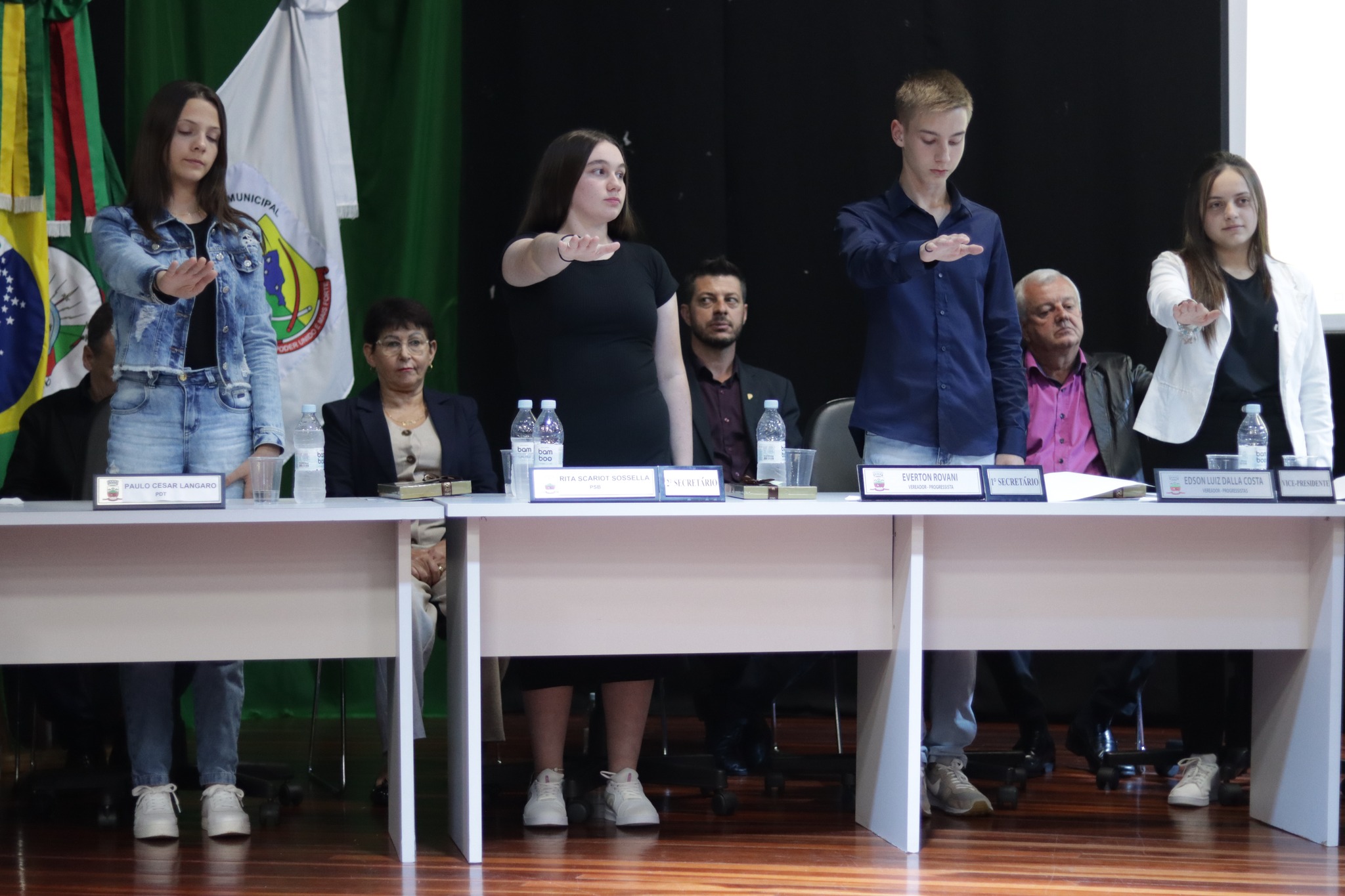Os Vereadores Mirins, participaram da sua primeira Sessão, tendo como escolhidos para Presidente da Mesa Paola Naibo, Vice Presidente Gabriely dos Santos Naibo, Primeiro Secretario Bruno Alberto Poplaski e Segunda Secretaria Bruna Benetti de Souza.