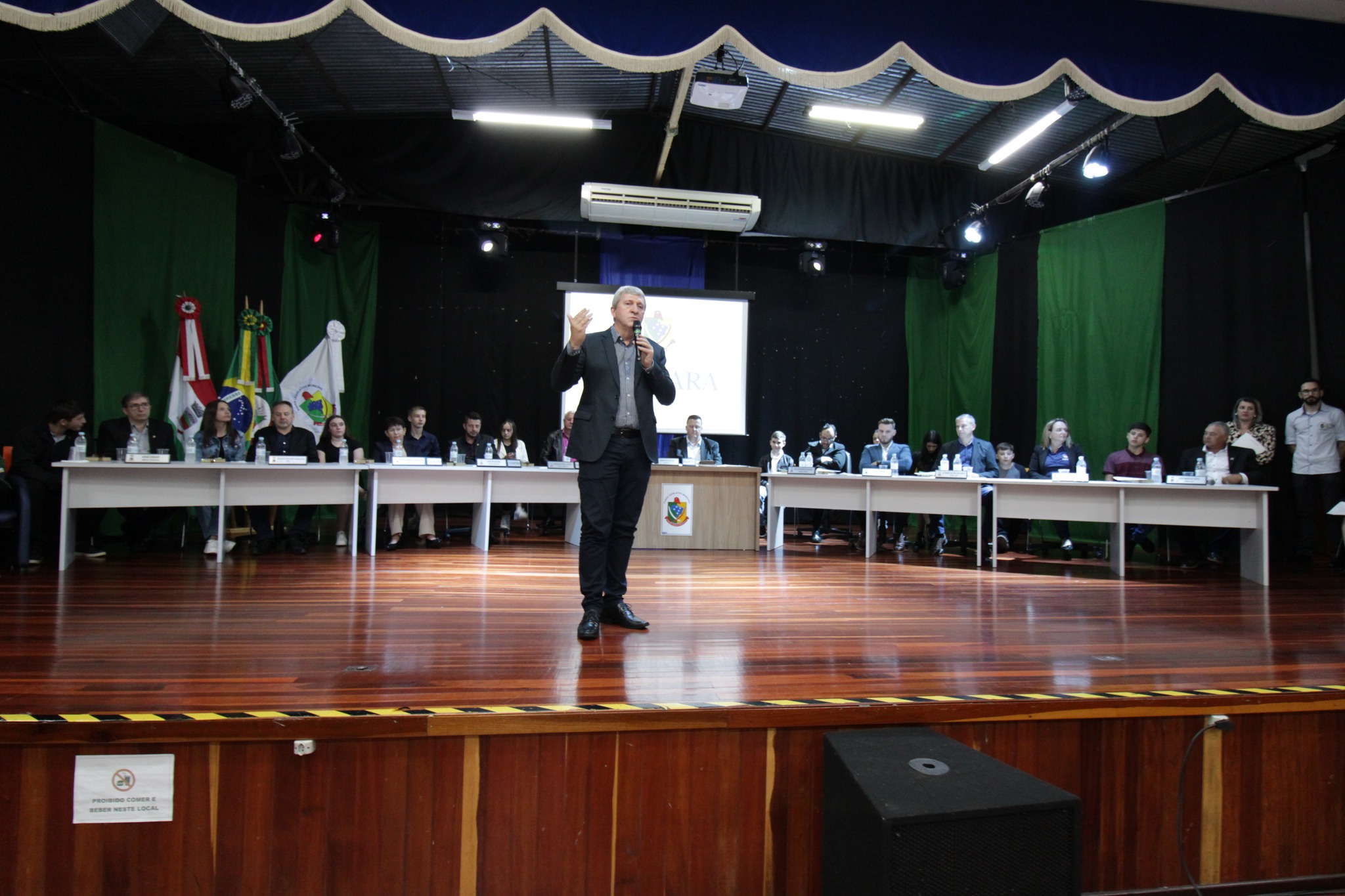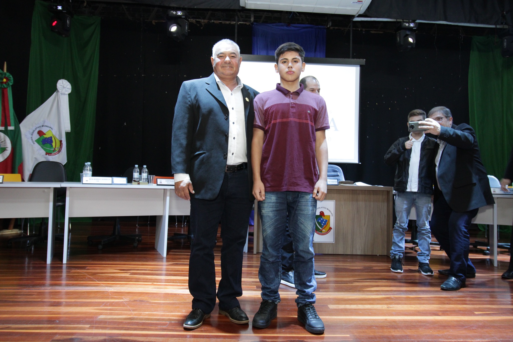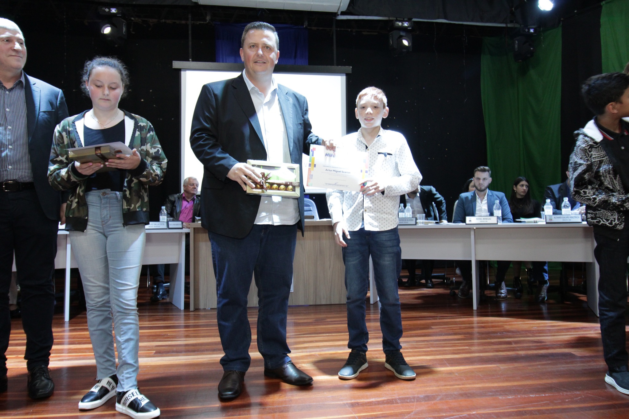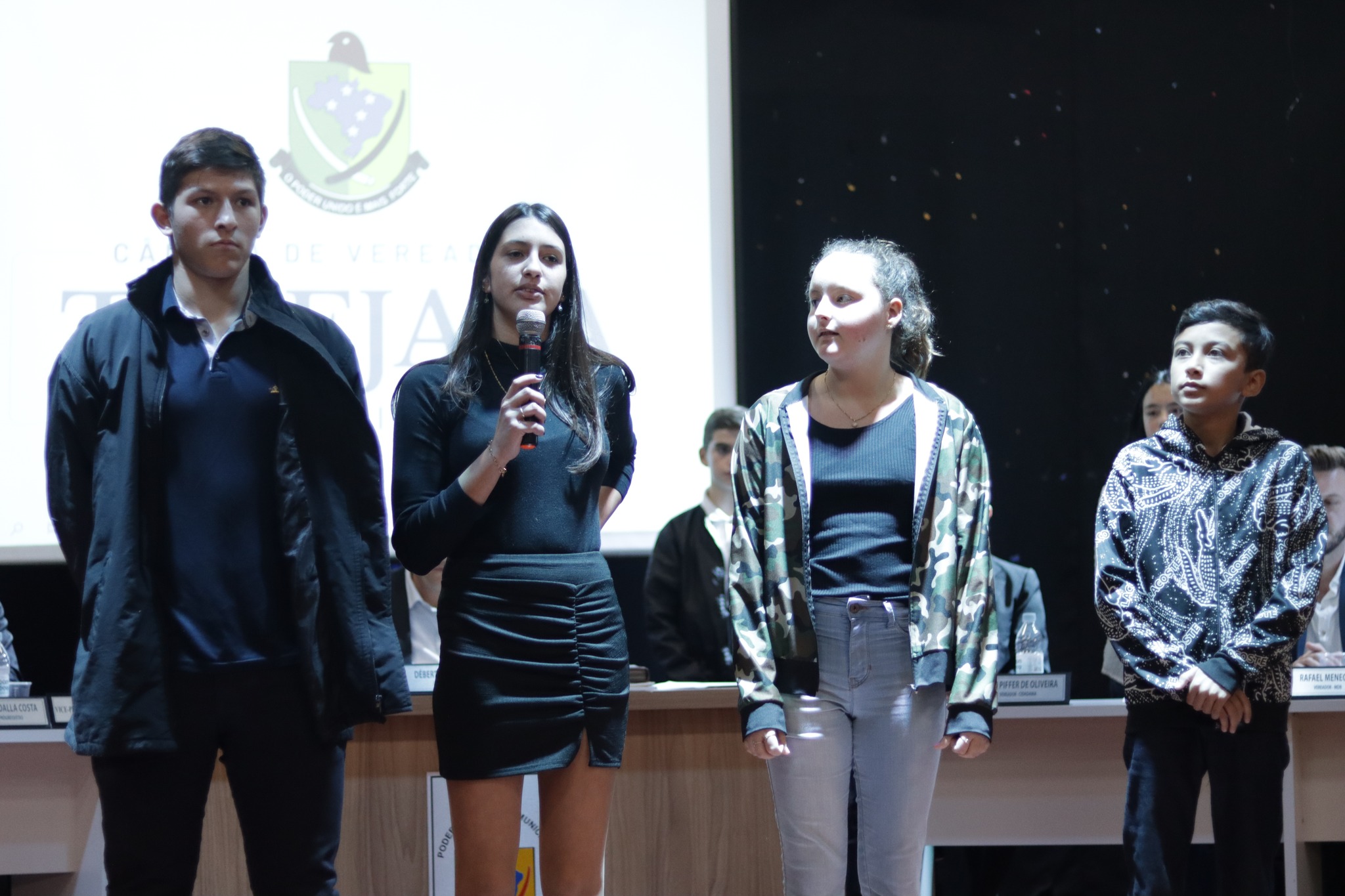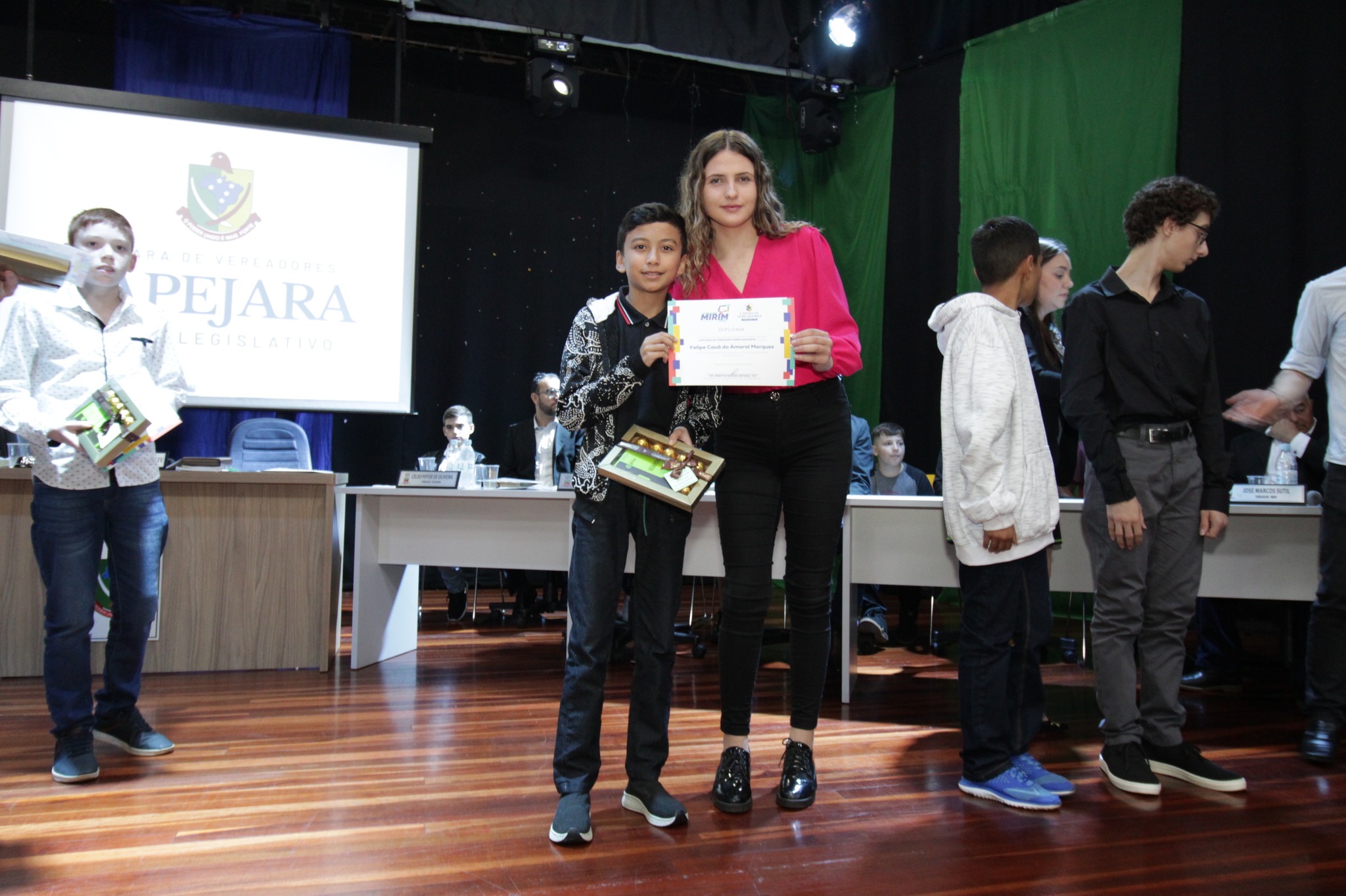 Os Vereadores Mirins, participaram da sua primeira Sessão, tendo como escolhidos para Presidente da Mesa Paola Naibo, Vice Presidente Gabriely dos Santos Naibo, Primeiro Secretario Bruno Alberto Poplaski e Segunda Secretaria Bruna Benetti de Souza.