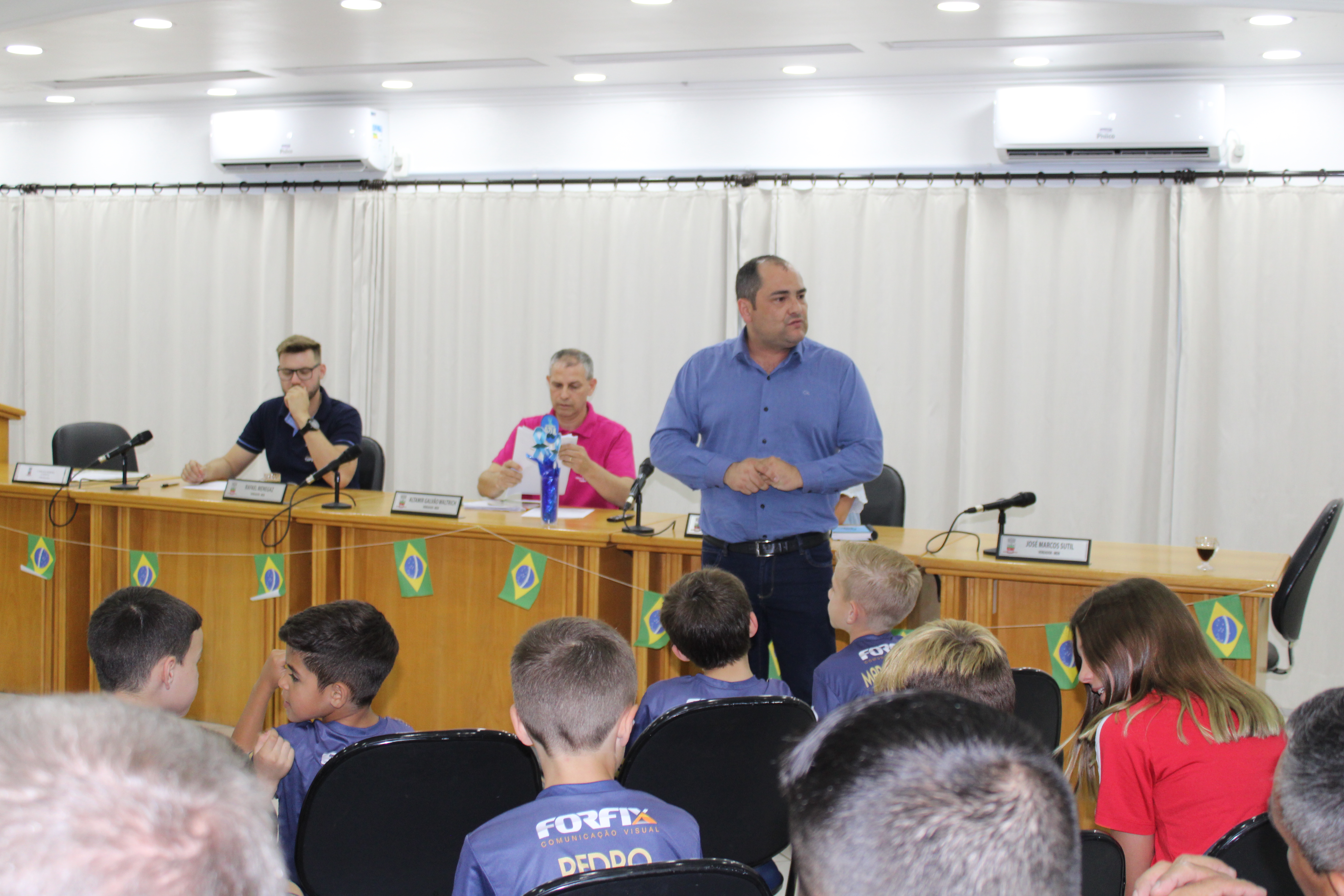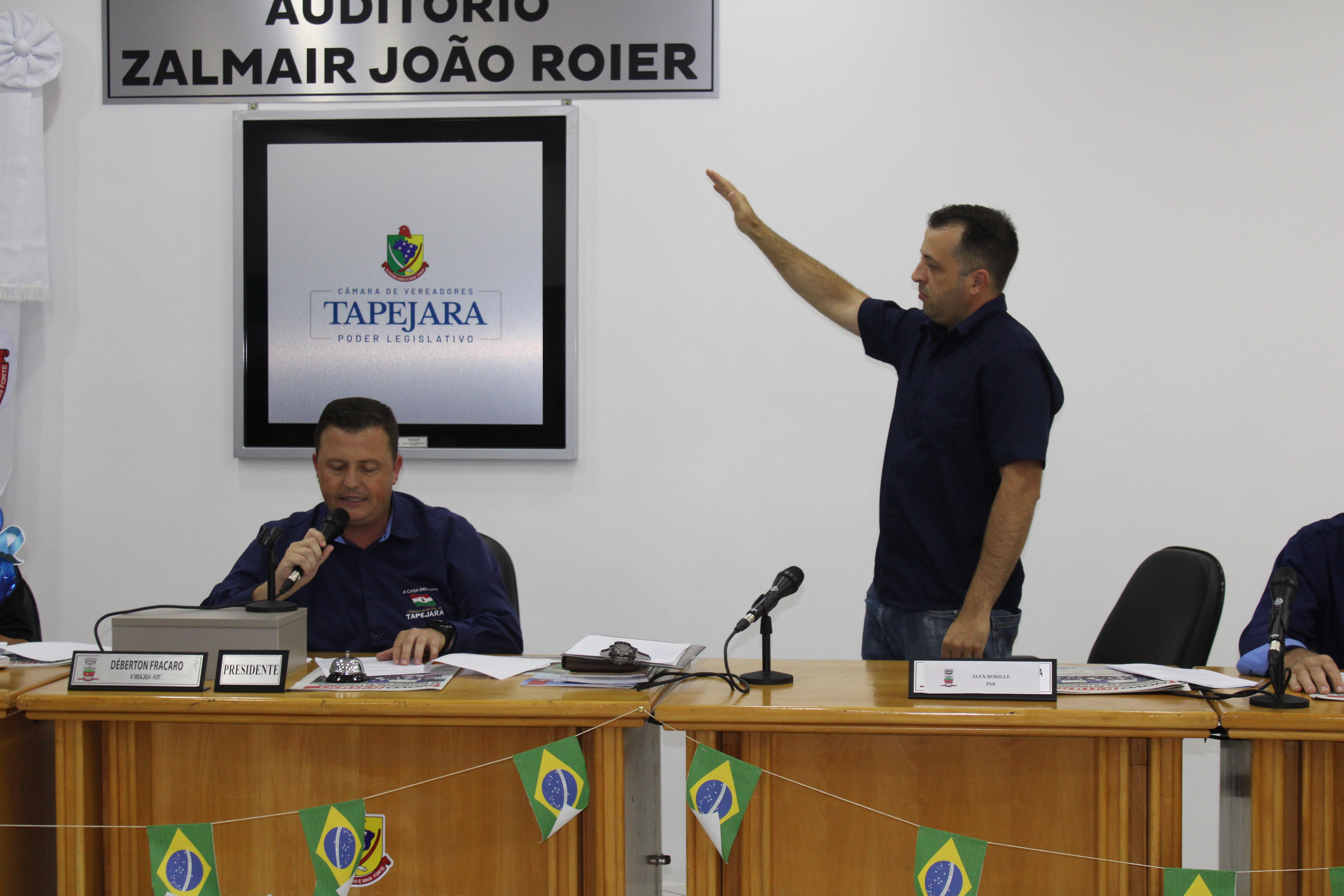 Uma noite diferenciada, pois o Prefeito em exercício Carlos Eduardo de Oliveira (Edu) esteve prestigiando os trabalhos legislativos, por sua vez o Vereador Déberton Fracaro (Betinho) esteve presidindo a sessão ordinária, aonde o mesmo deu posse ao vereador Alex Borille Loss.