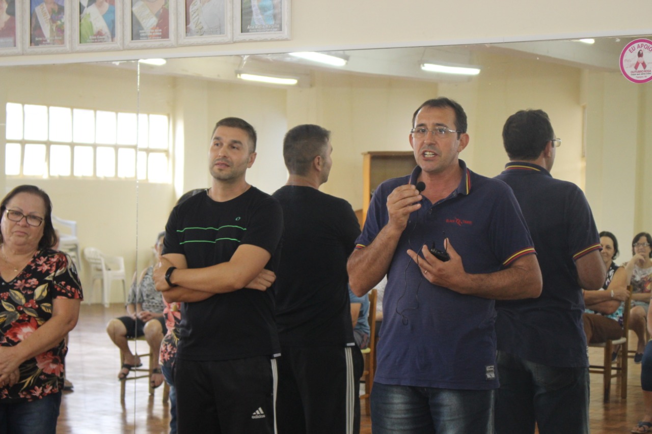 Além da assinatura, o presidente participou das atividades físicas junto com o grupo e com o prefeito Vilmar Merotto, primeira dama Rosane Faedo Merotto, secretária da Assistência Social Ilmara Sebben, coordenadora da Assistência Social Elisangela Merotto, coordenadora da Terceira Idade Micheli Fontana e com a presidente do Giti, Dilva Sasset.