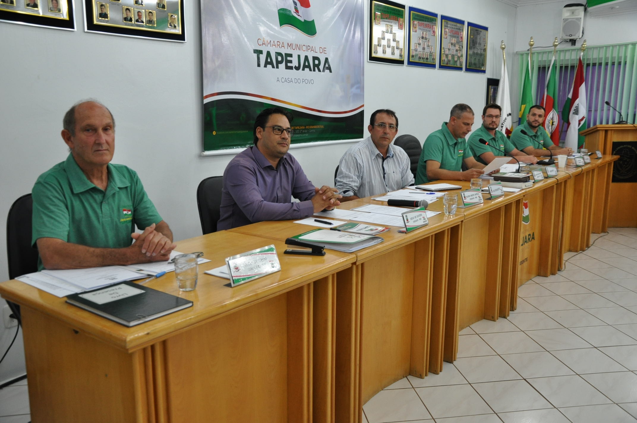 Nesta segunda-feira, dia 04, foi realizada a primeira Sessão Ordinária do Legislativo Tapejarense. Já no início da Sessão, presidida pelo vereador Altamir Galvão Waltrich, tomaram posse dois suplentes de vereador: Diego Antônio de Oliveira e Hugo Tanquilino Dalposso. Eles tomaram posse após o pedido de licença dos vereadores: Maeli Brunetto Cerezoli que assumiu a Secretaria da Saúde e Marcos Bressan que assumiu a Secretaria da Agricultura e Meio Ambiente, Indústria e Comércio.