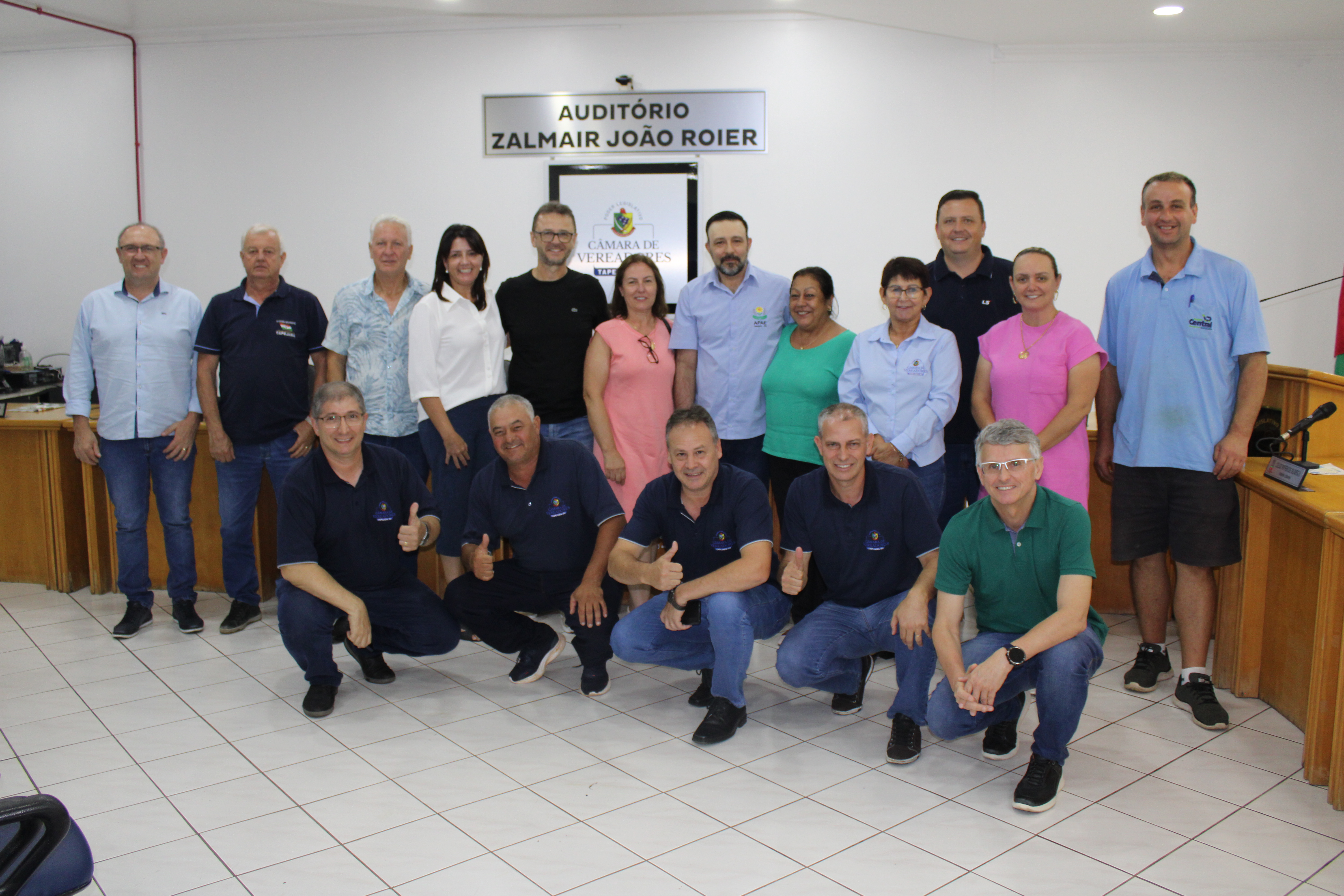 A Presidente Adriana Bueno Artuzi, coordenou os trabalhos da Casa Legislativa que contou com a participação dos integrantes da Diretoria da Associação de Pais e Amigos dos Excepcionais – Elisabete Lucion, Vani Rodigueri, Elisa Scariot, Marcos Zanini e Epitágoras Duarte, também estiveram presentes no auditório Paulo Frizzo Jr. do Departamento de T.I, Ouvidoria e Patrimônio, Presidente do Partido Democrático Trabalhista – Darcilo Fracaro, Secretario da Habitação – Jackson Geisel da Silva, Representante do Sindicato dos Comerciários – Nédio Lopes e o Prefeito em Exercício – Rodinei Bruel.