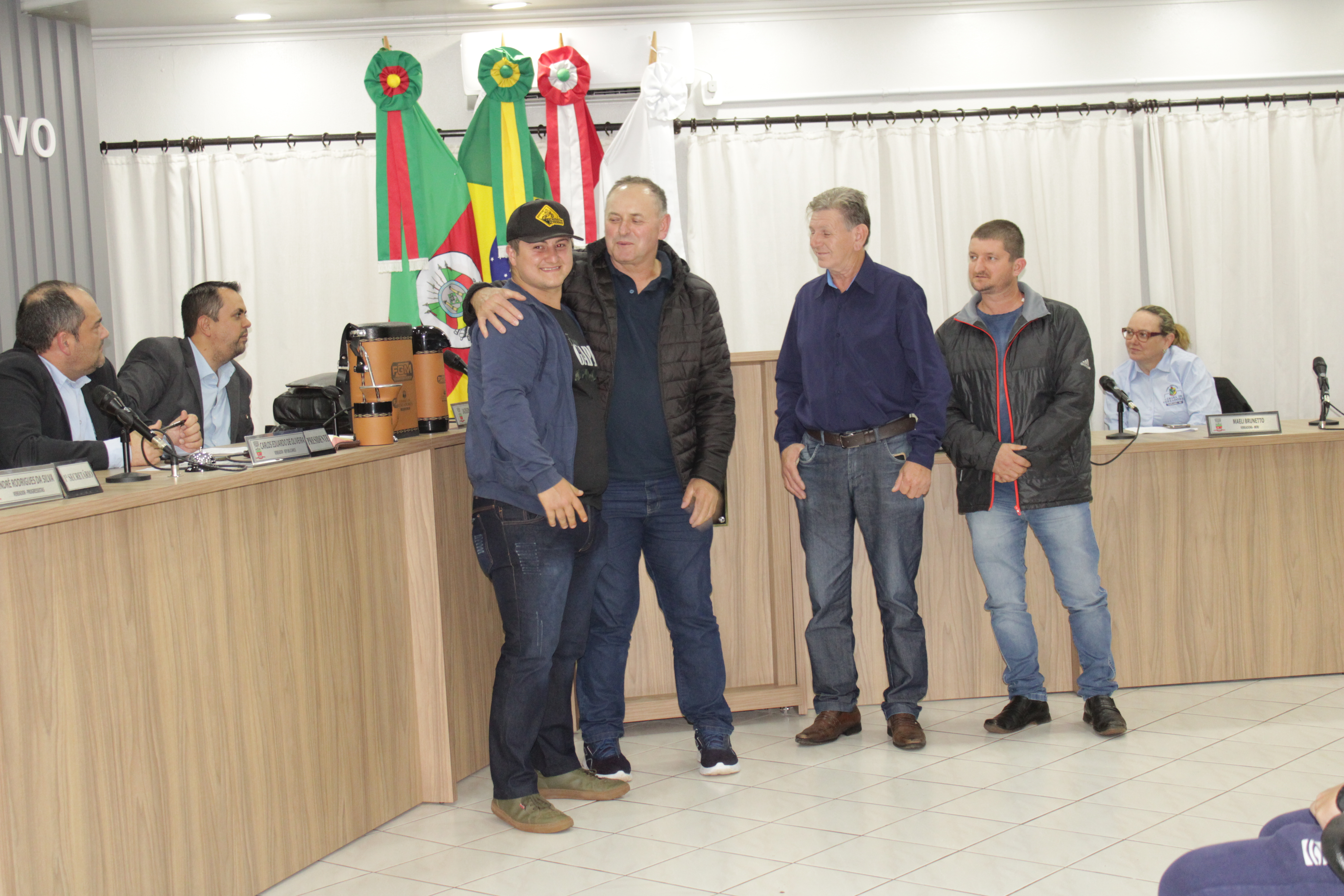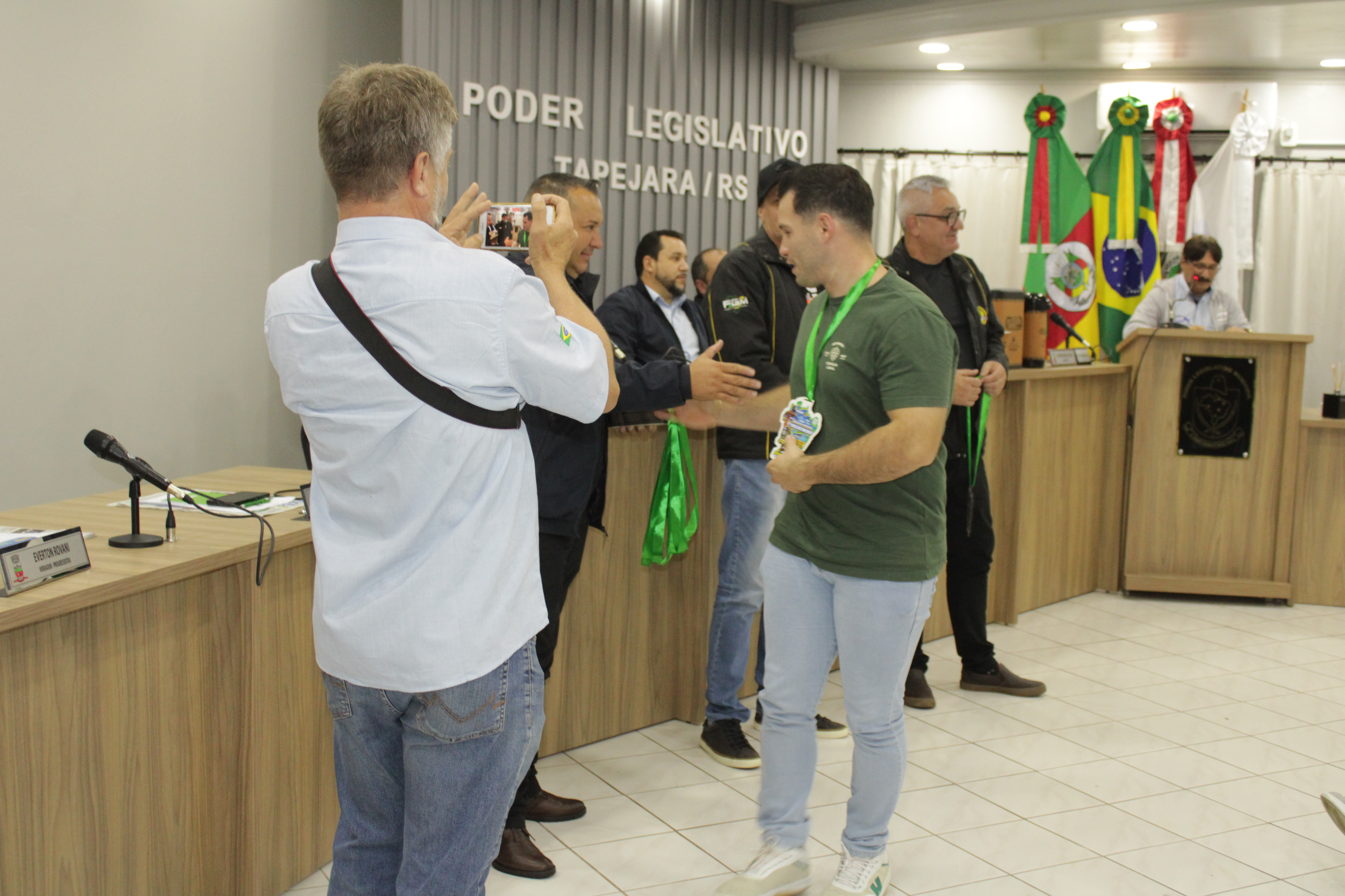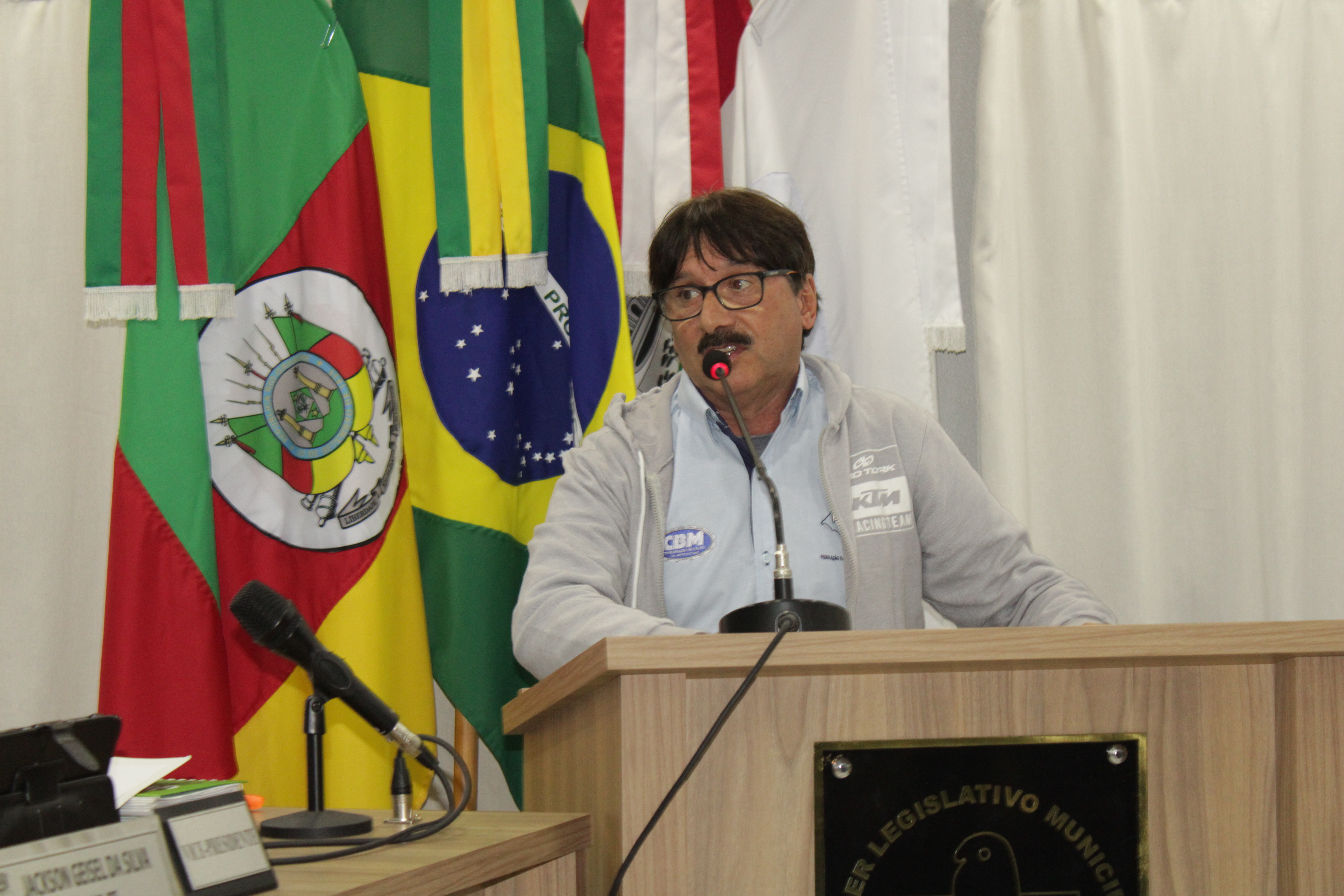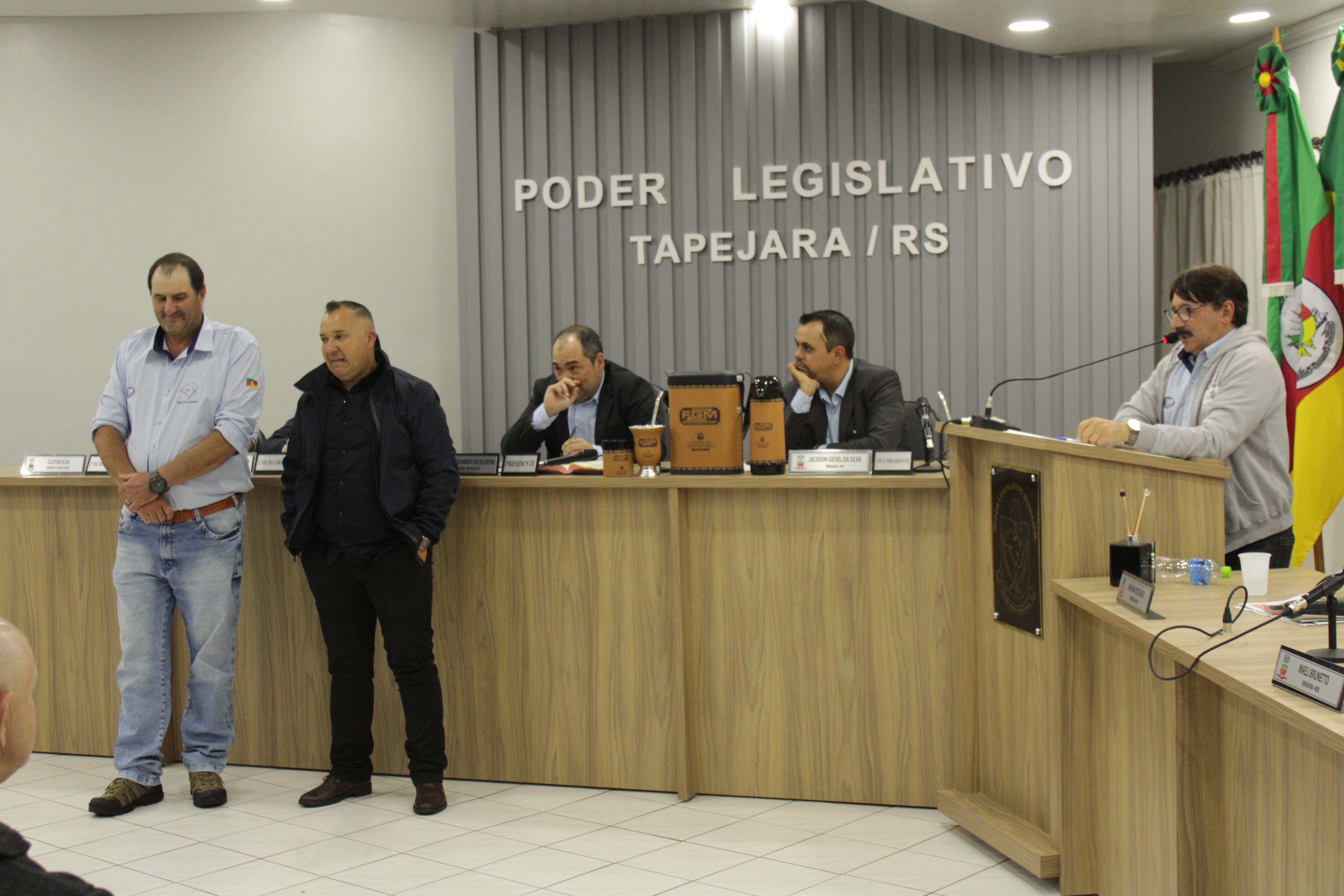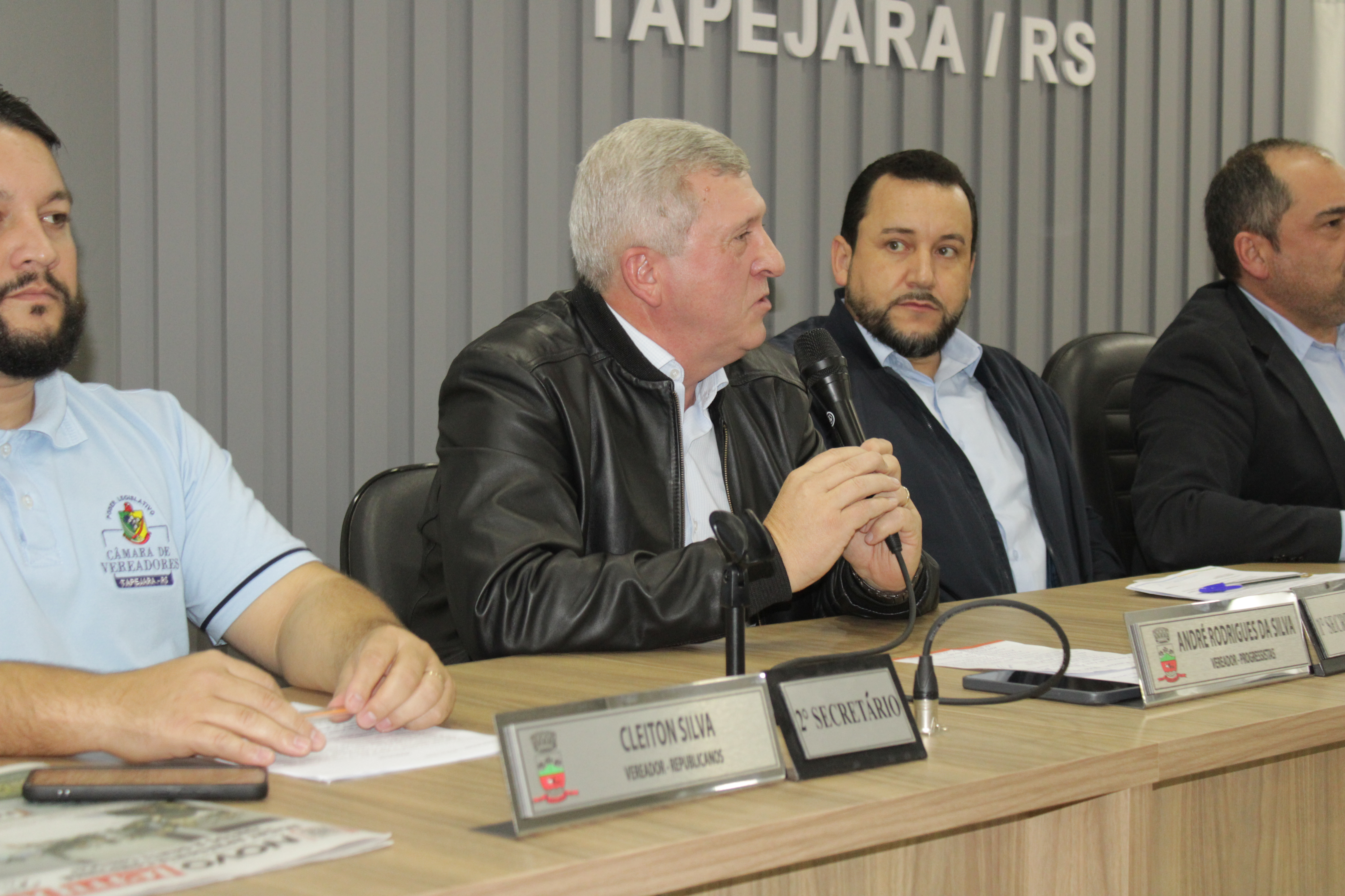 - Por solicitação do Prefeito Municipal Evanir Wolf, com anuência da Mesa Diretora desta Casa, fundamentado no artigo 41 alínea “o”; e no artigo 219 do nosso Regimento Interno, foi concedido o espaço de 05 minutos para que para que o Prefeito Municipal Evanir Wolf e o Vice Prefeito Rodinei Bruel, juntamente com o representante dos Pilotos de Tapejara: Willian Mioto, representando o Moto Clube de Tapejara: Roberto Urbanski e Representando a Federação Gaúcha de Motocross: Jair Silveira.
