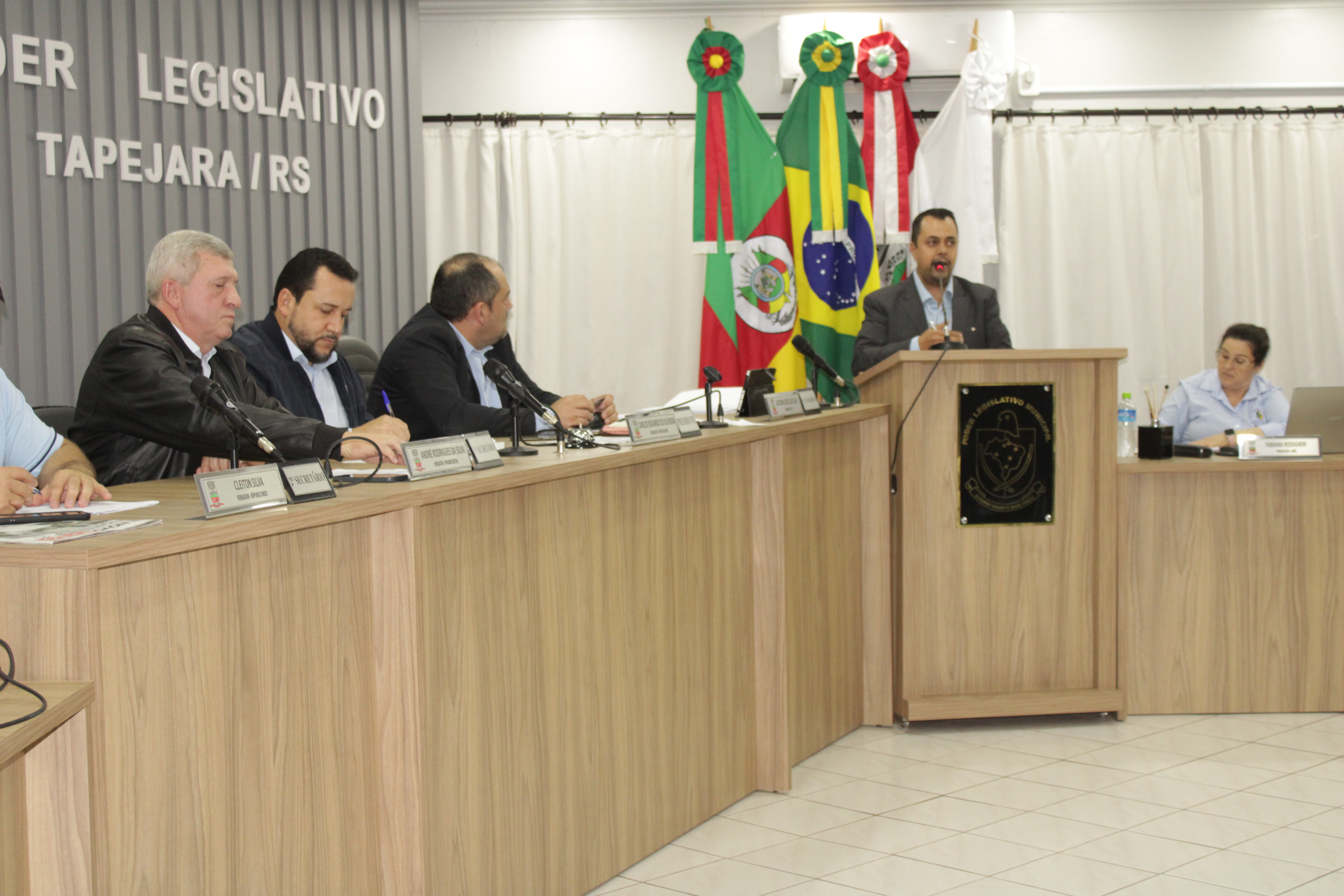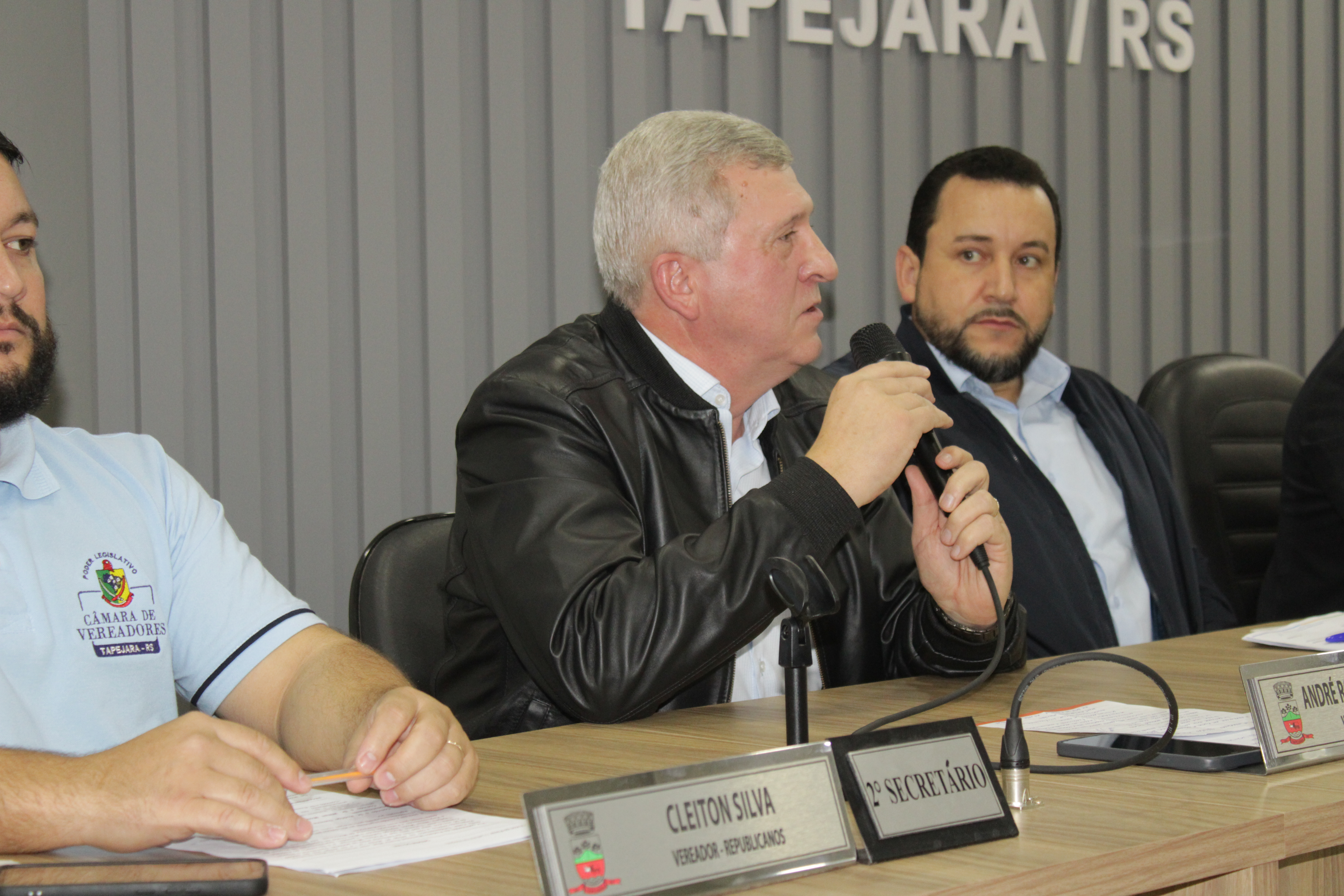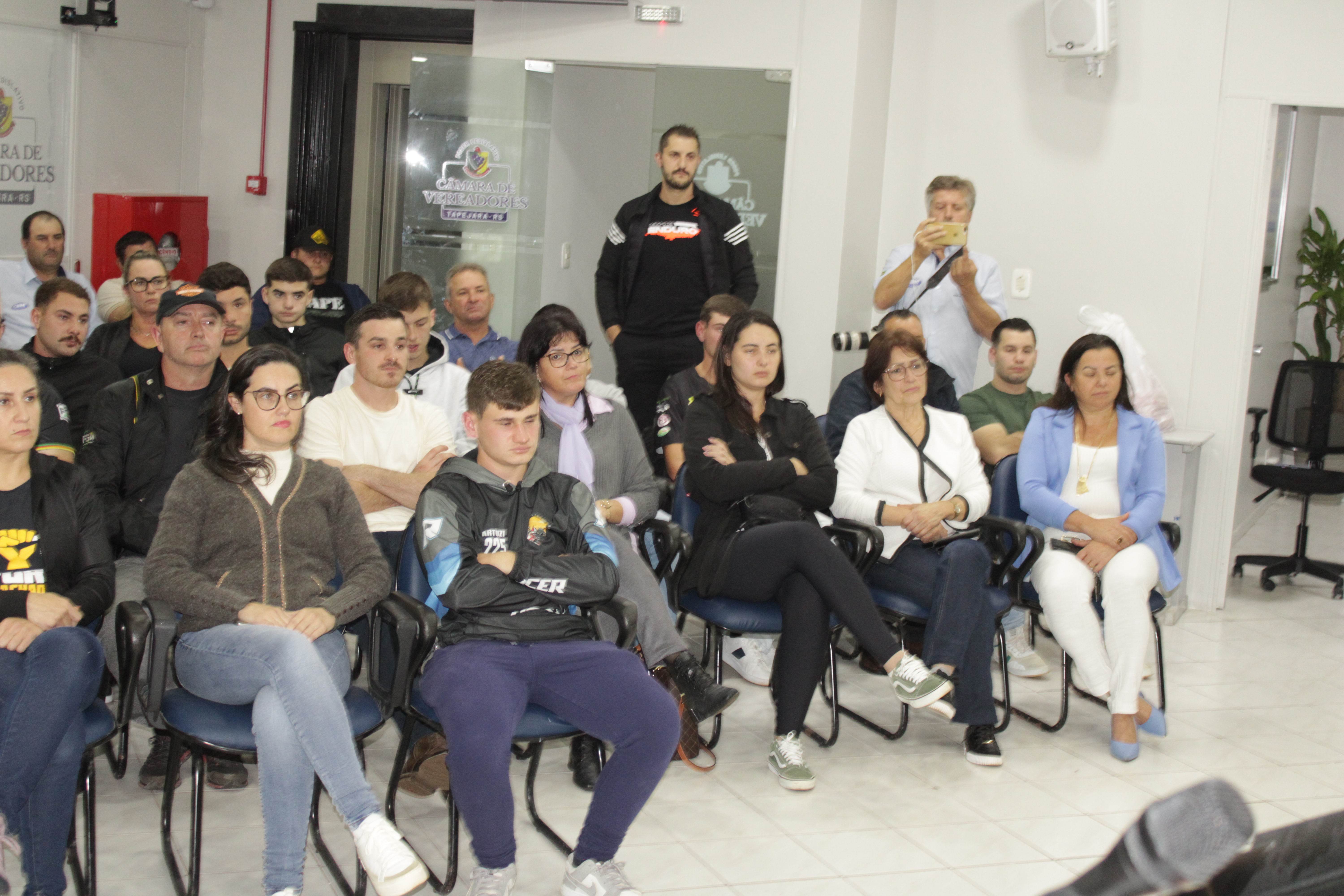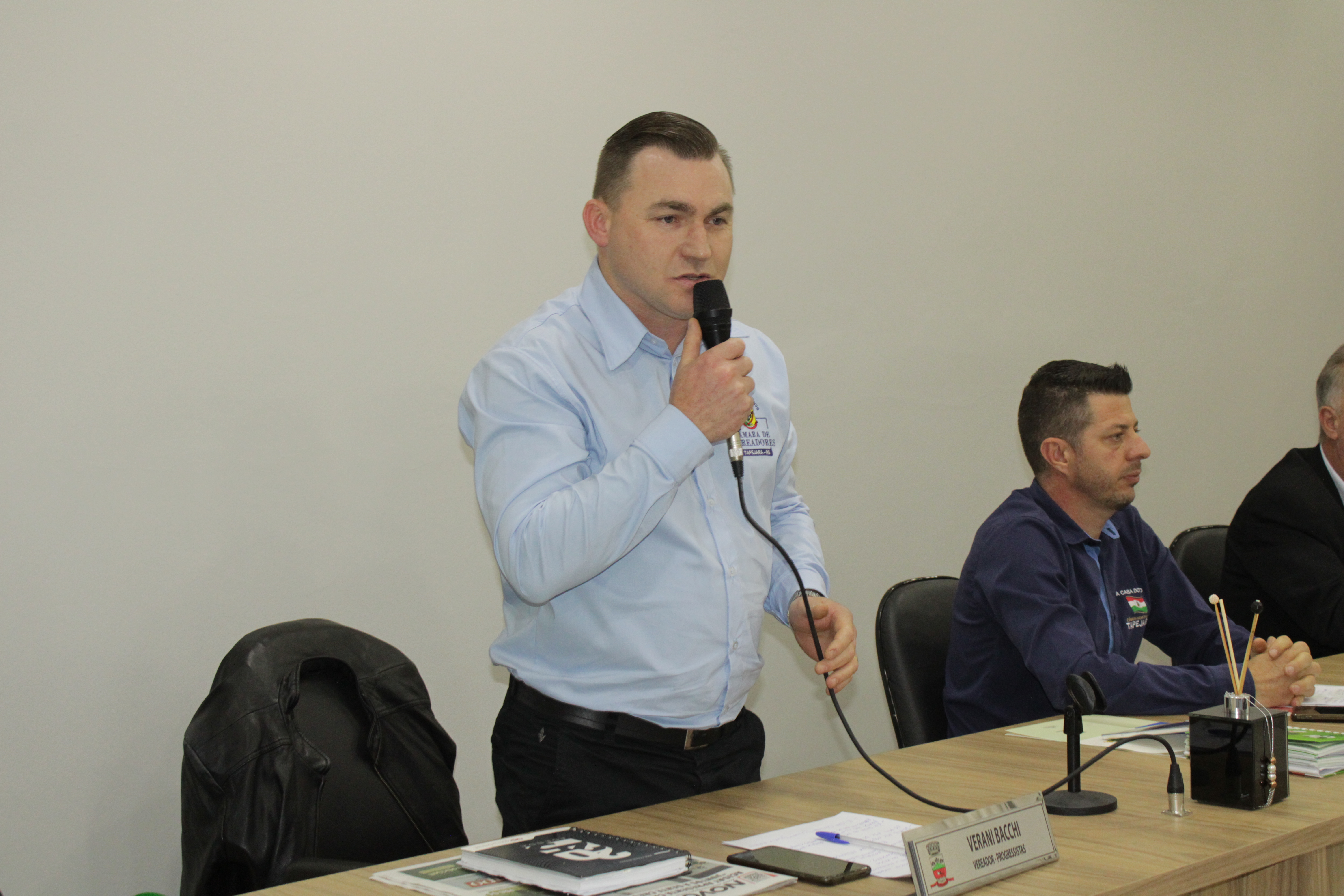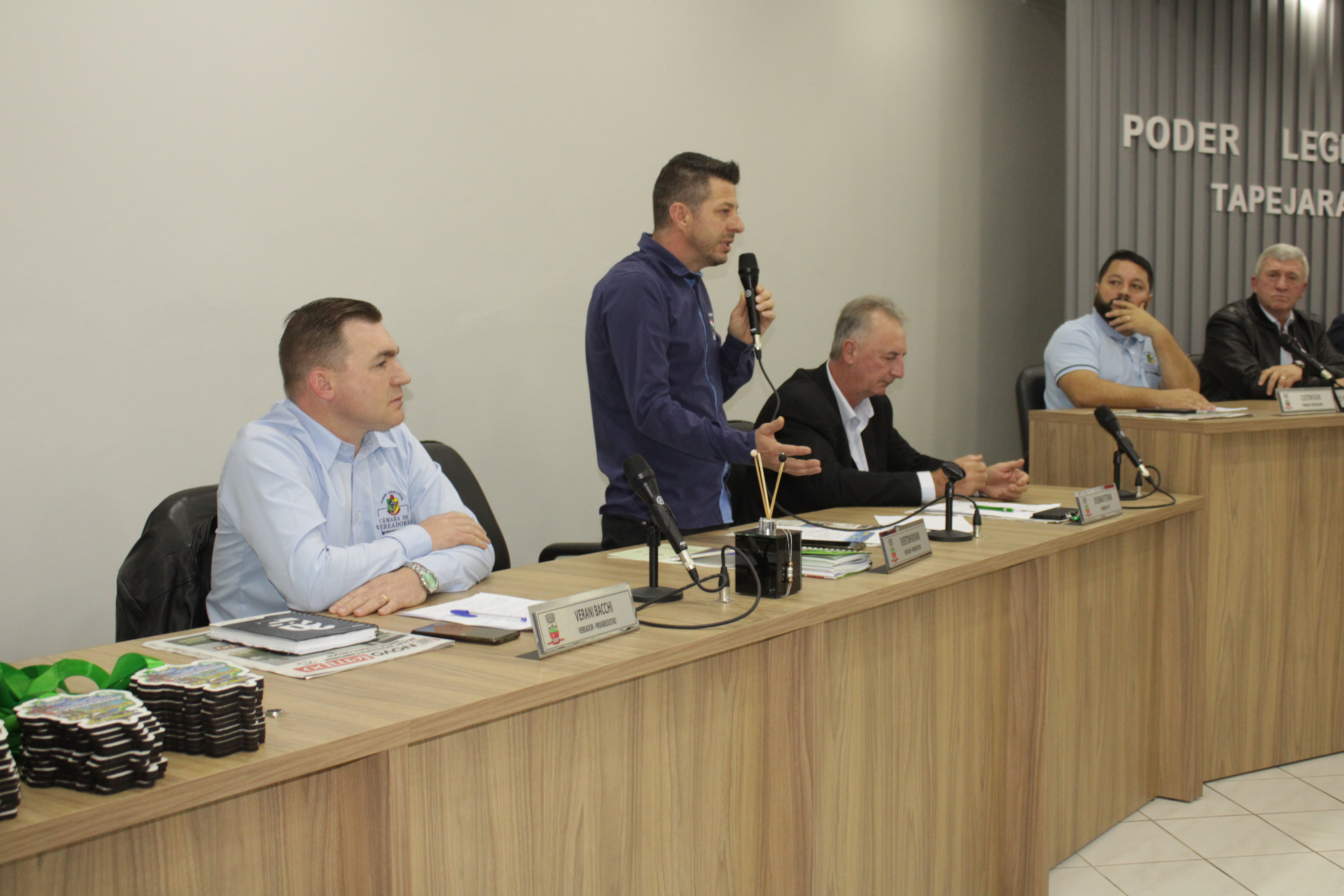 - Por solicitação do Prefeito Municipal Evanir Wolf, com anuência da Mesa Diretora desta Casa, fundamentado no artigo 41 alínea “o”; e no artigo 219 do nosso Regimento Interno, foi concedido o espaço de 05 minutos para que para que o Prefeito Municipal Evanir Wolf e o Vice Prefeito Rodinei Bruel, juntamente com o representante dos Pilotos de Tapejara: Willian Mioto, representando o Moto Clube de Tapejara: Roberto Urbanski e Representando a Federação Gaúcha de Motocross: Jair Silveira.