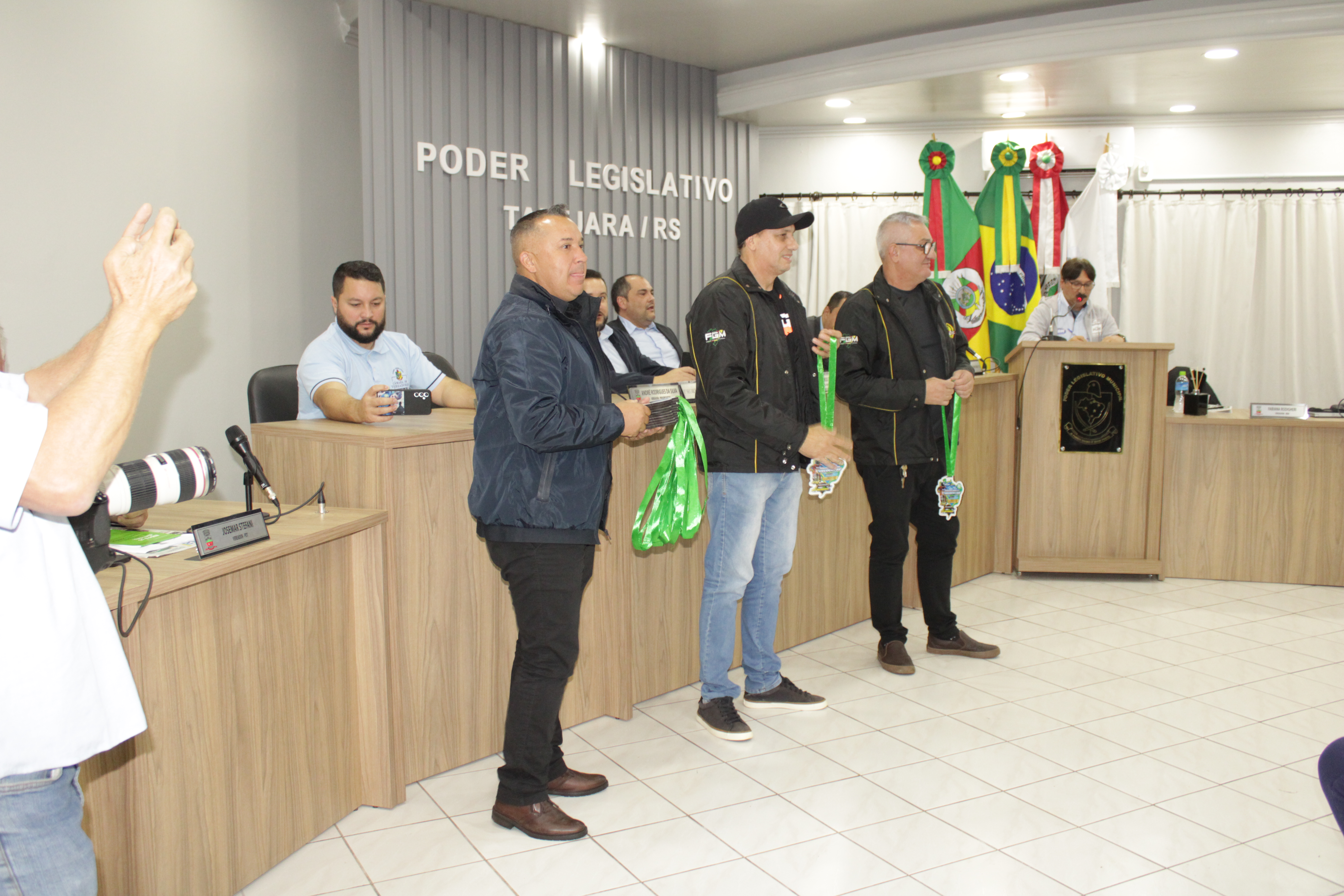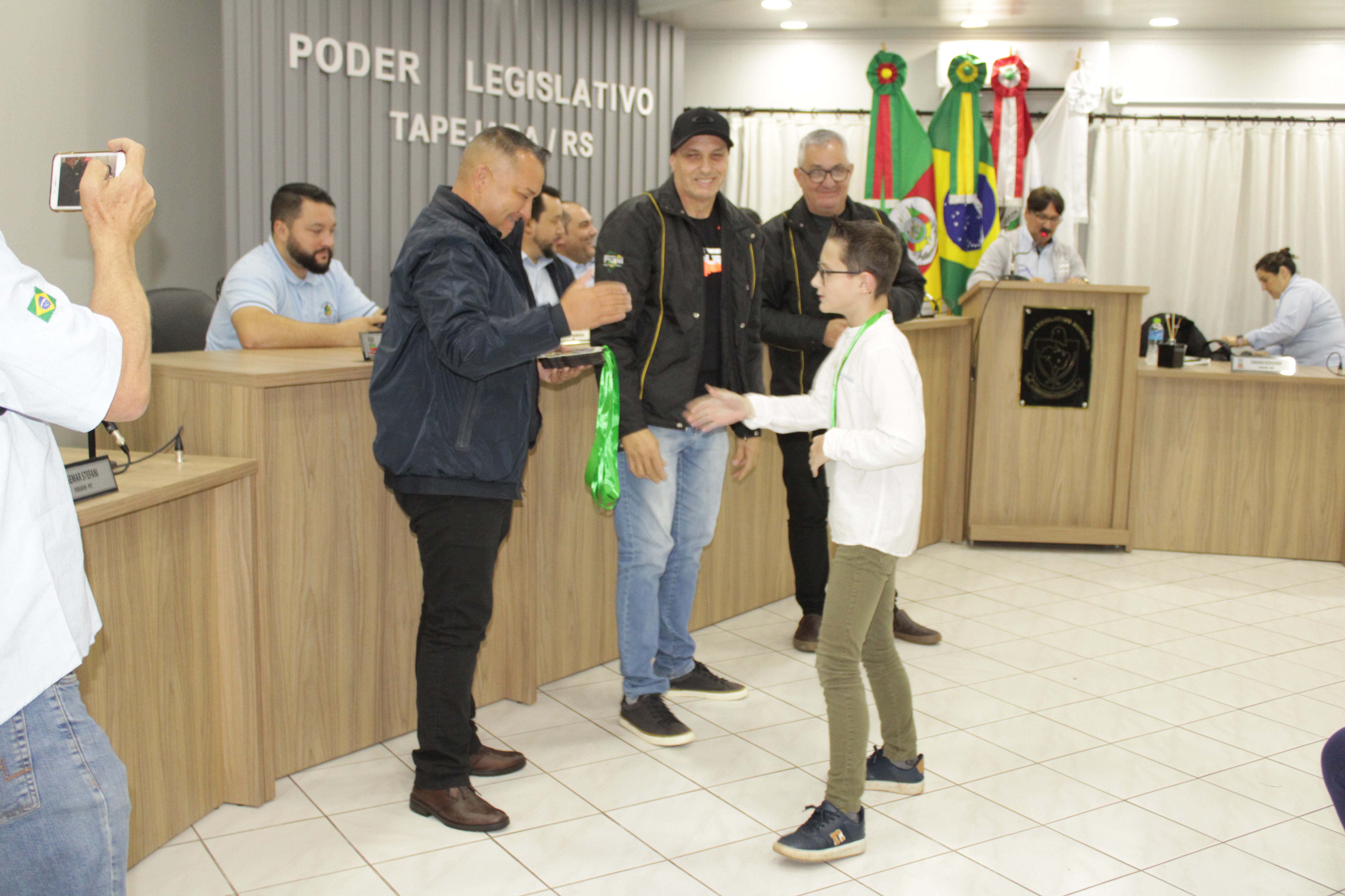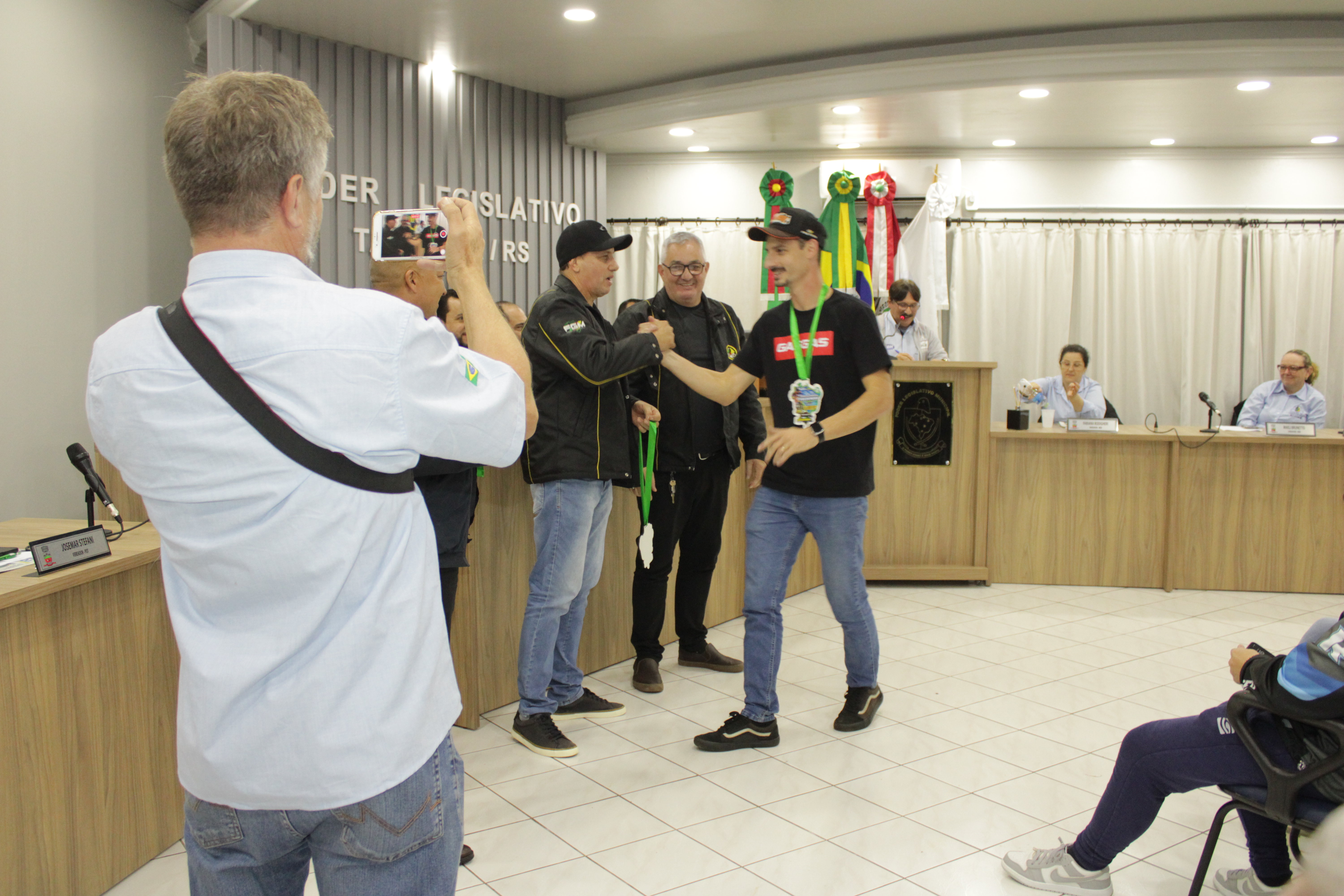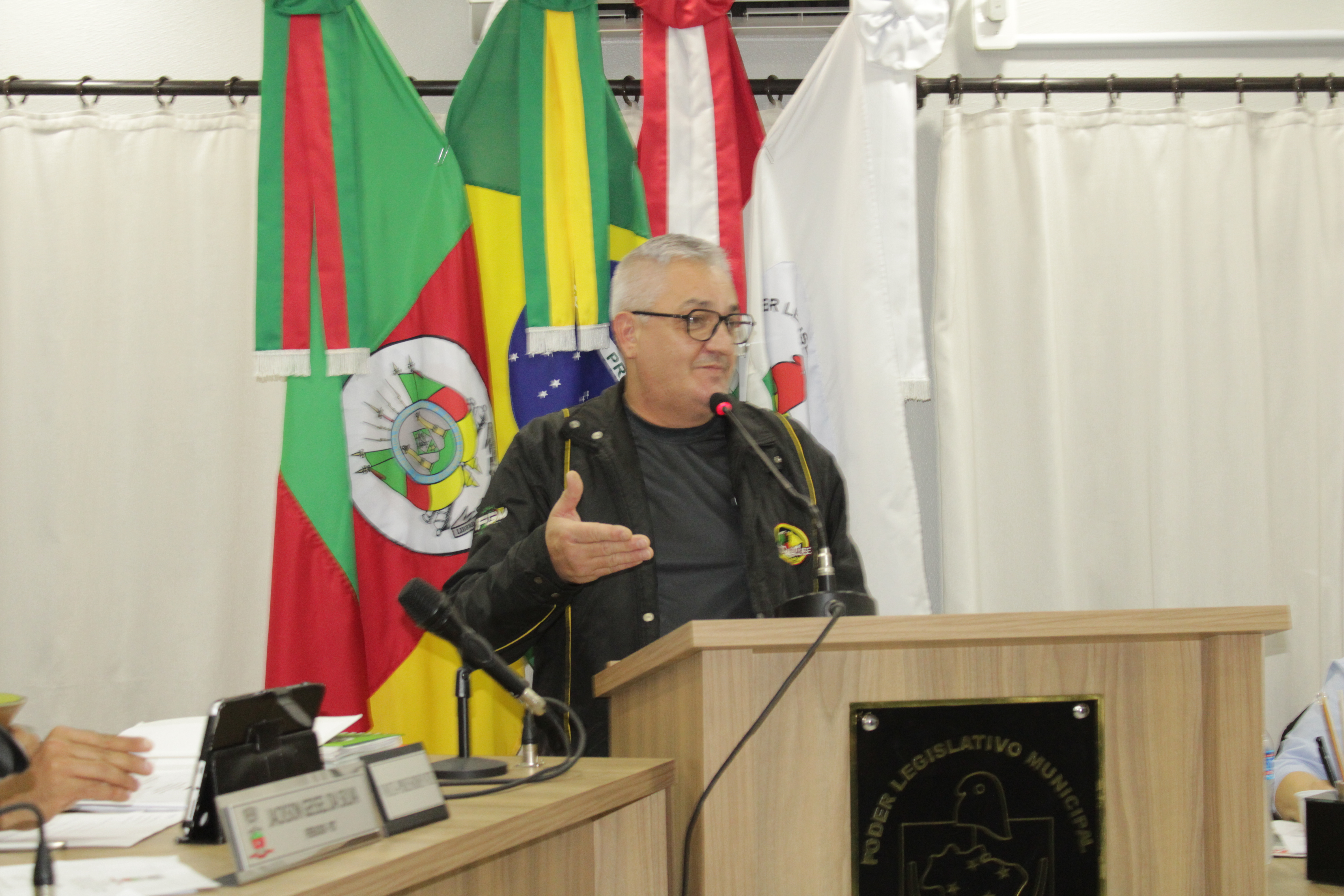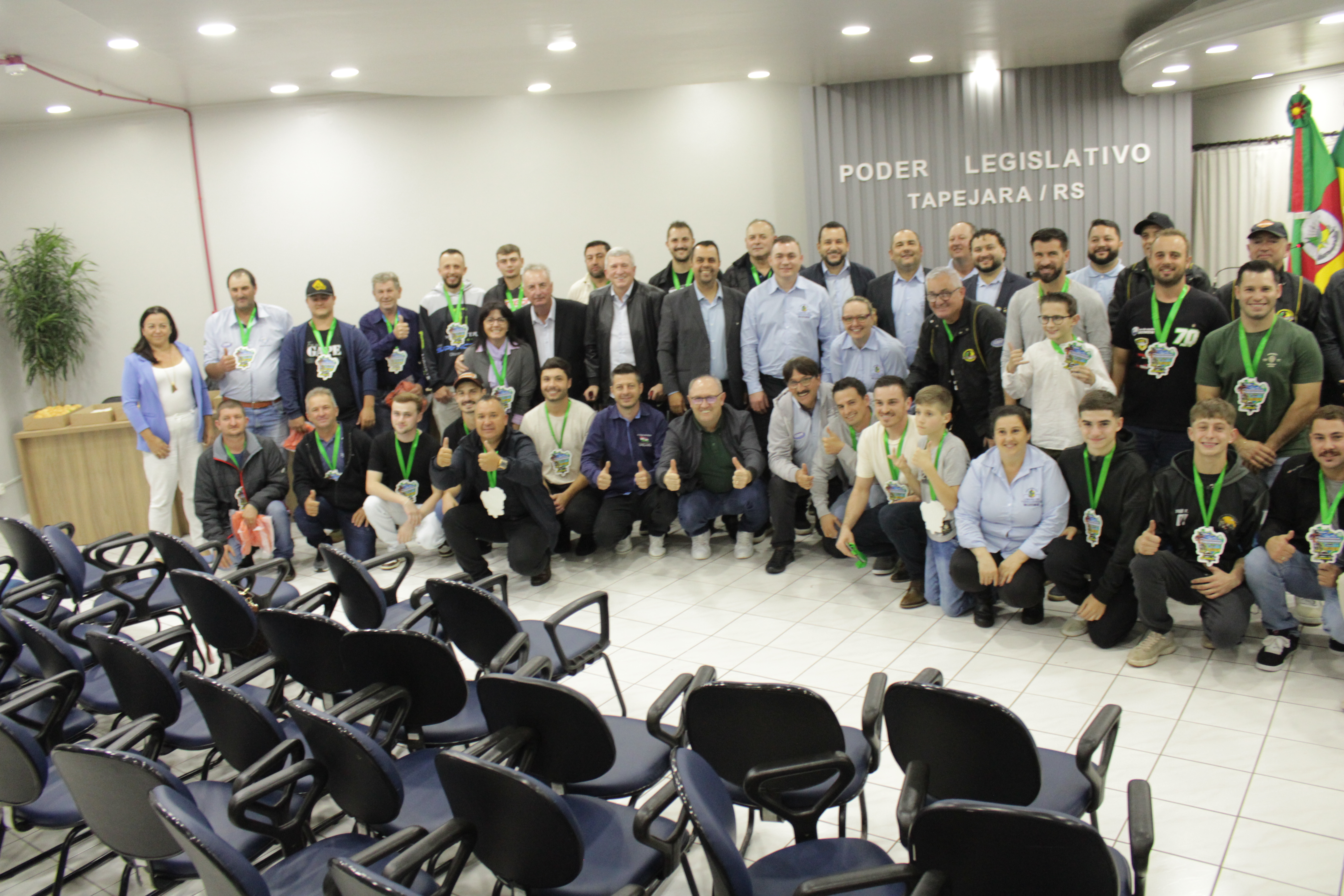 - Por solicitação do Prefeito Municipal Evanir Wolf, com anuência da Mesa Diretora desta Casa, fundamentado no artigo 41 alínea “o”; e no artigo 219 do nosso Regimento Interno, foi concedido o espaço de 05 minutos para que para que o Prefeito Municipal Evanir Wolf e o Vice Prefeito Rodinei Bruel, juntamente com o representante dos Pilotos de Tapejara: Willian Mioto, representando o Moto Clube de Tapejara: Roberto Urbanski e Representando a Federação Gaúcha de Motocross: Jair Silveira.