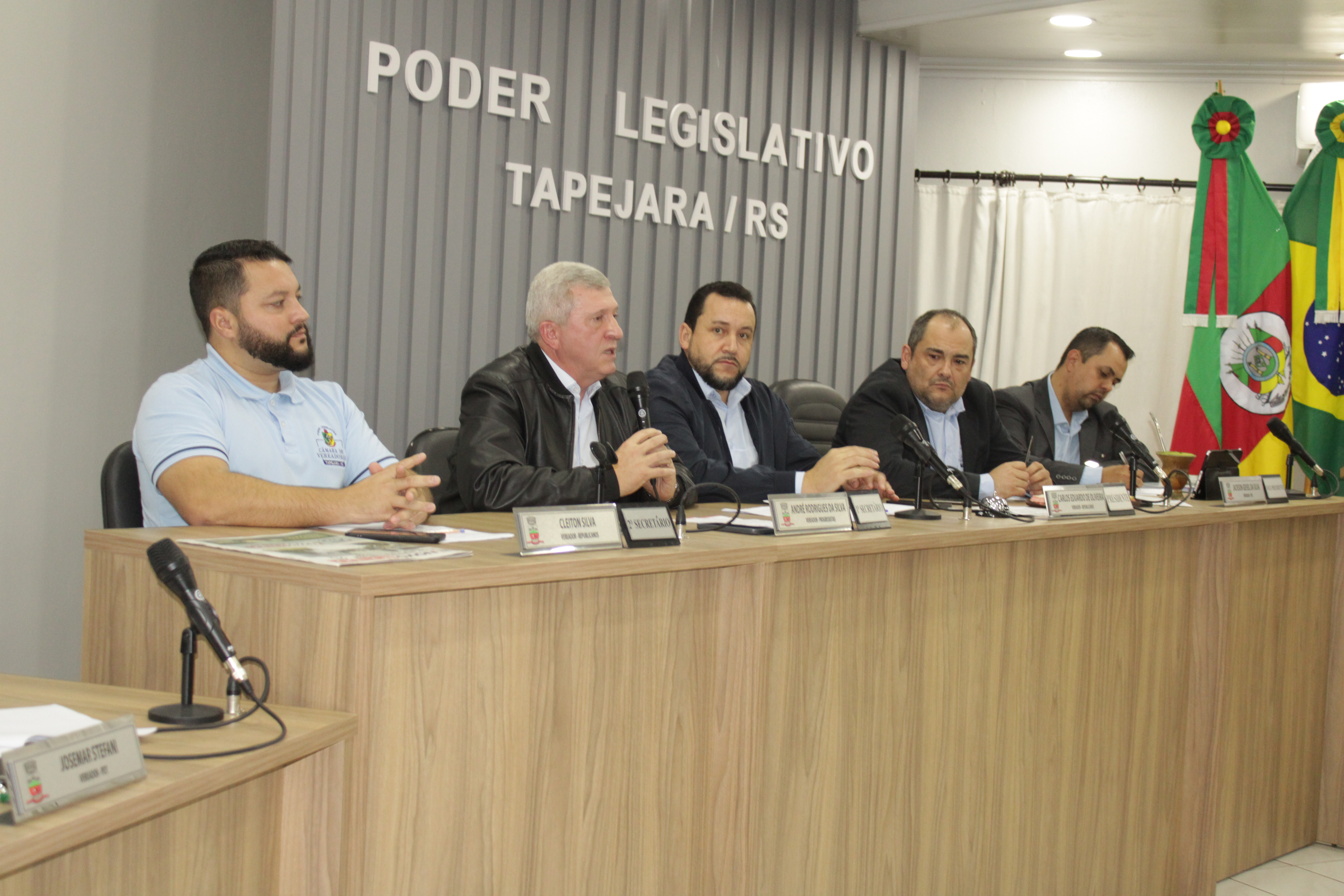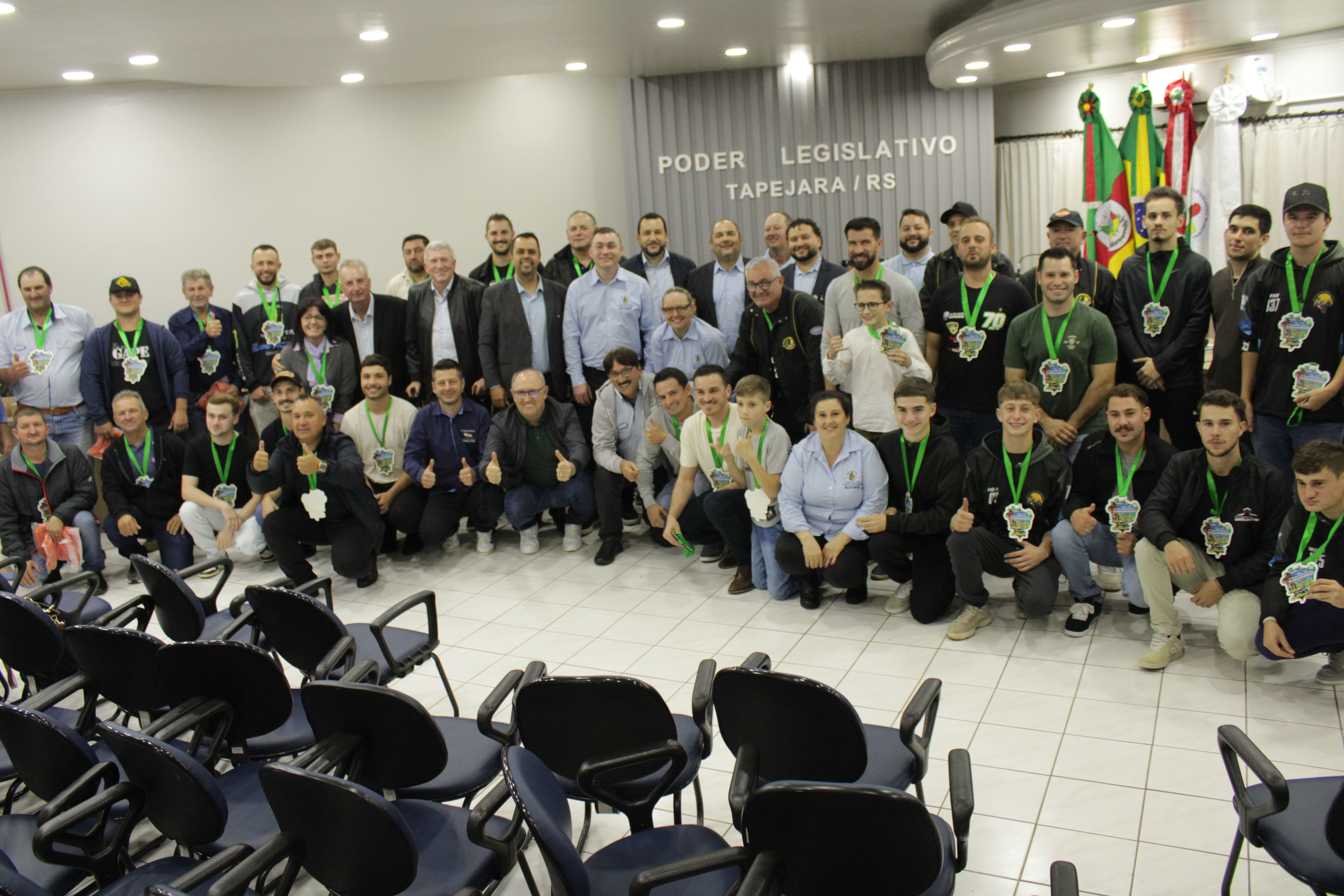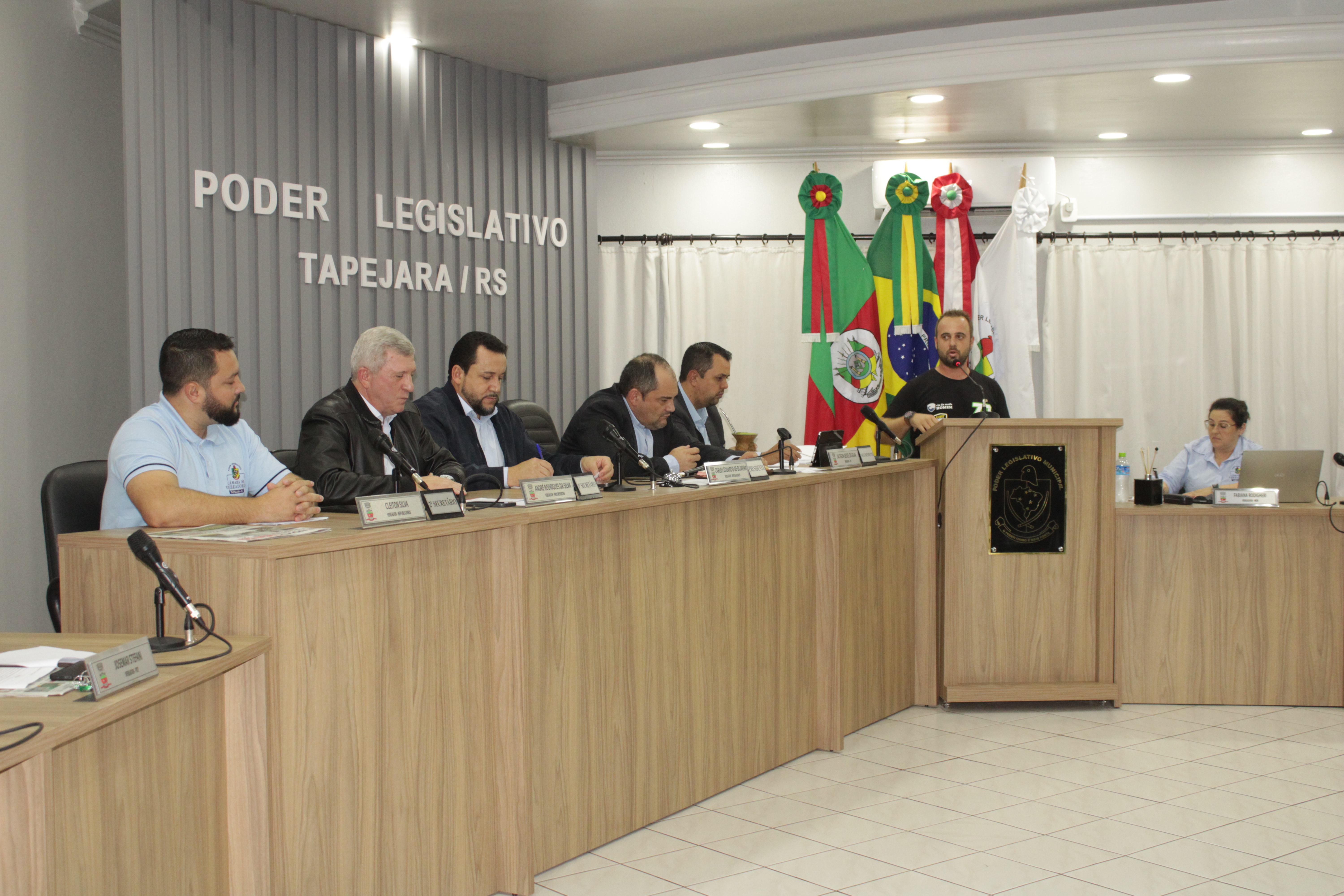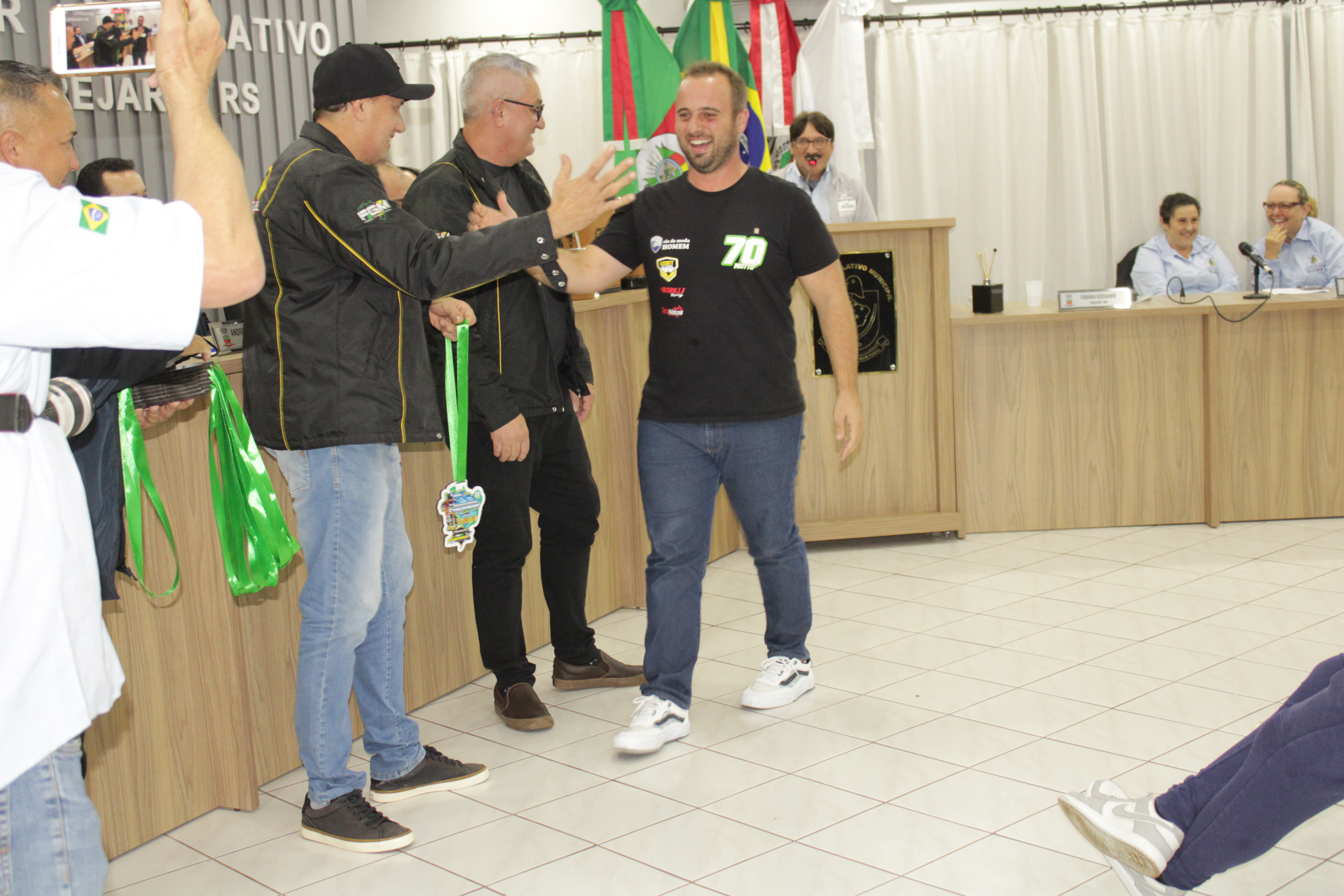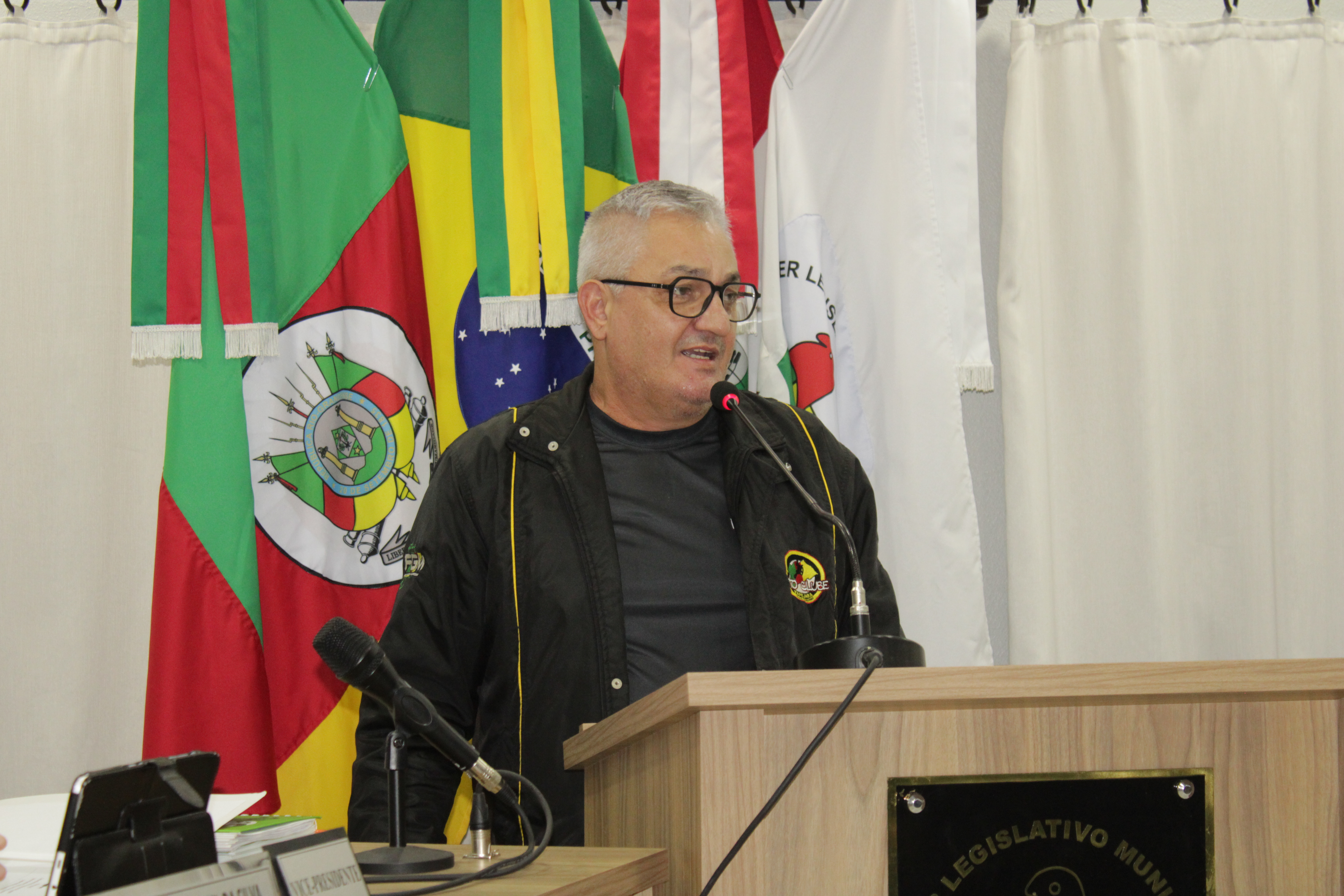 - Por solicitação do Prefeito Municipal Evanir Wolf, com anuência da Mesa Diretora desta Casa, fundamentado no artigo 41 alínea “o”; e no artigo 219 do nosso Regimento Interno, foi concedido o espaço de 05 minutos para que para que o Prefeito Municipal Evanir Wolf e o Vice Prefeito Rodinei Bruel, juntamente com o representante dos Pilotos de Tapejara: Willian Mioto, representando o Moto Clube de Tapejara: Roberto Urbanski e Representando a Federação Gaúcha de Motocross: Jair Silveira.