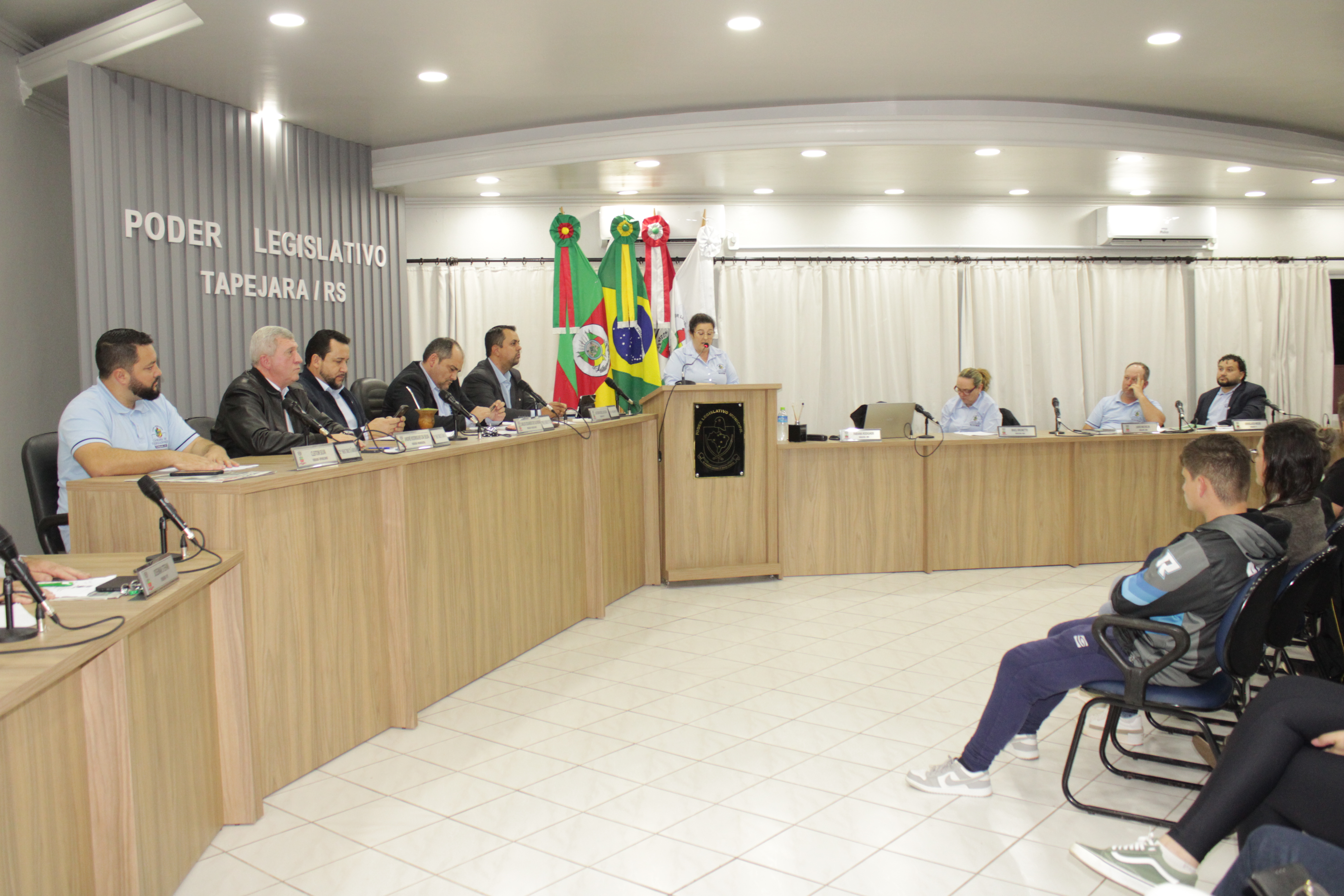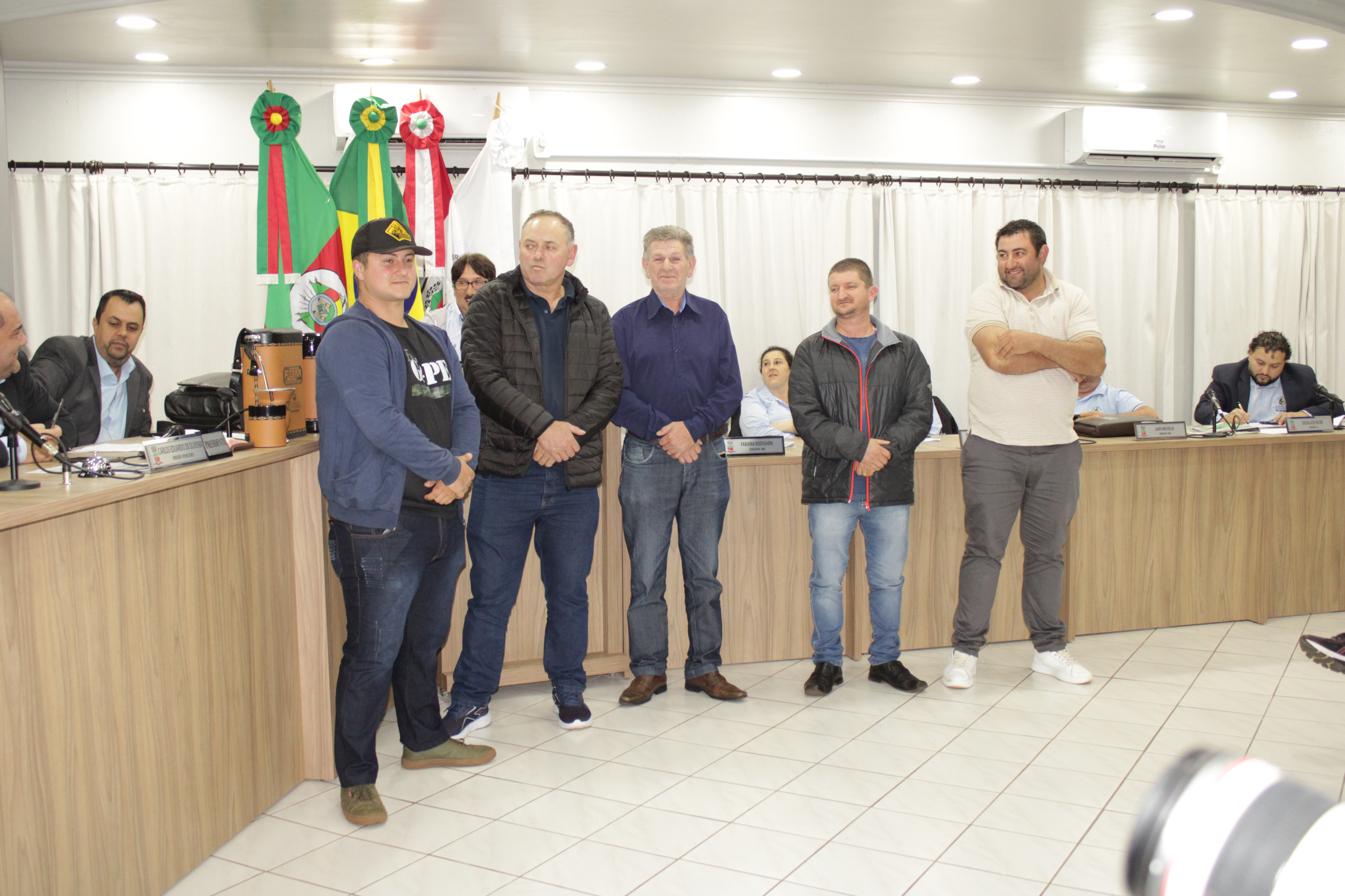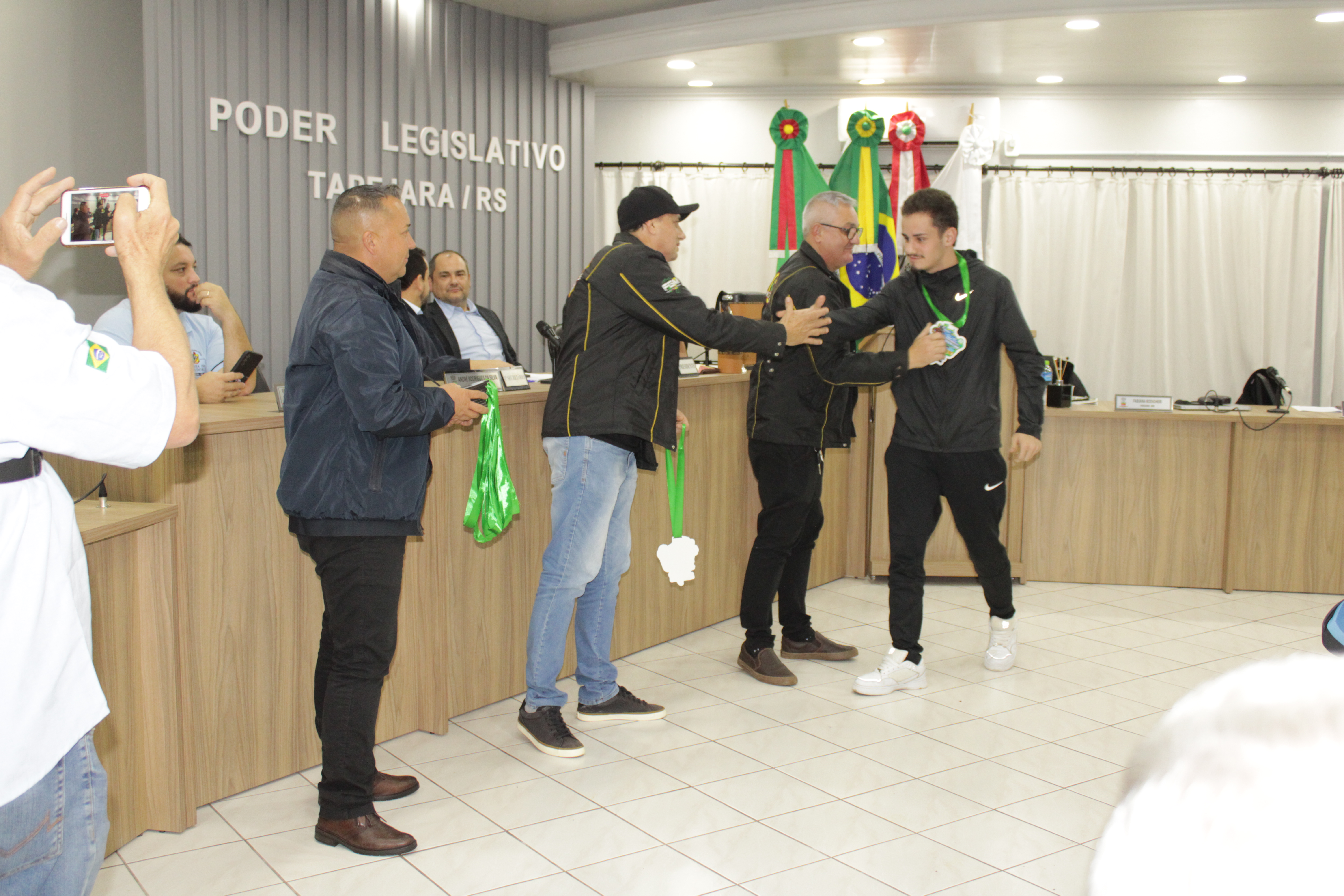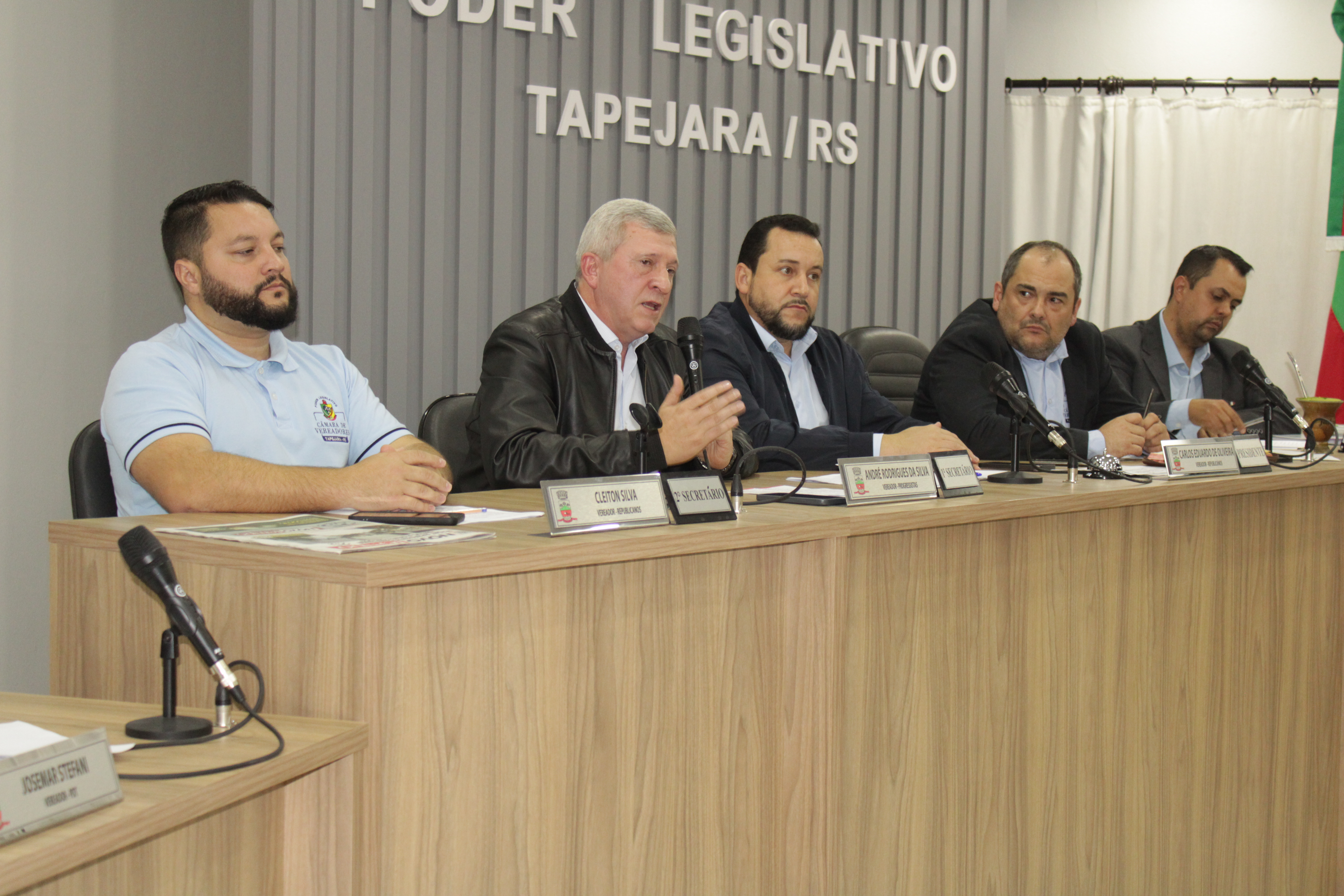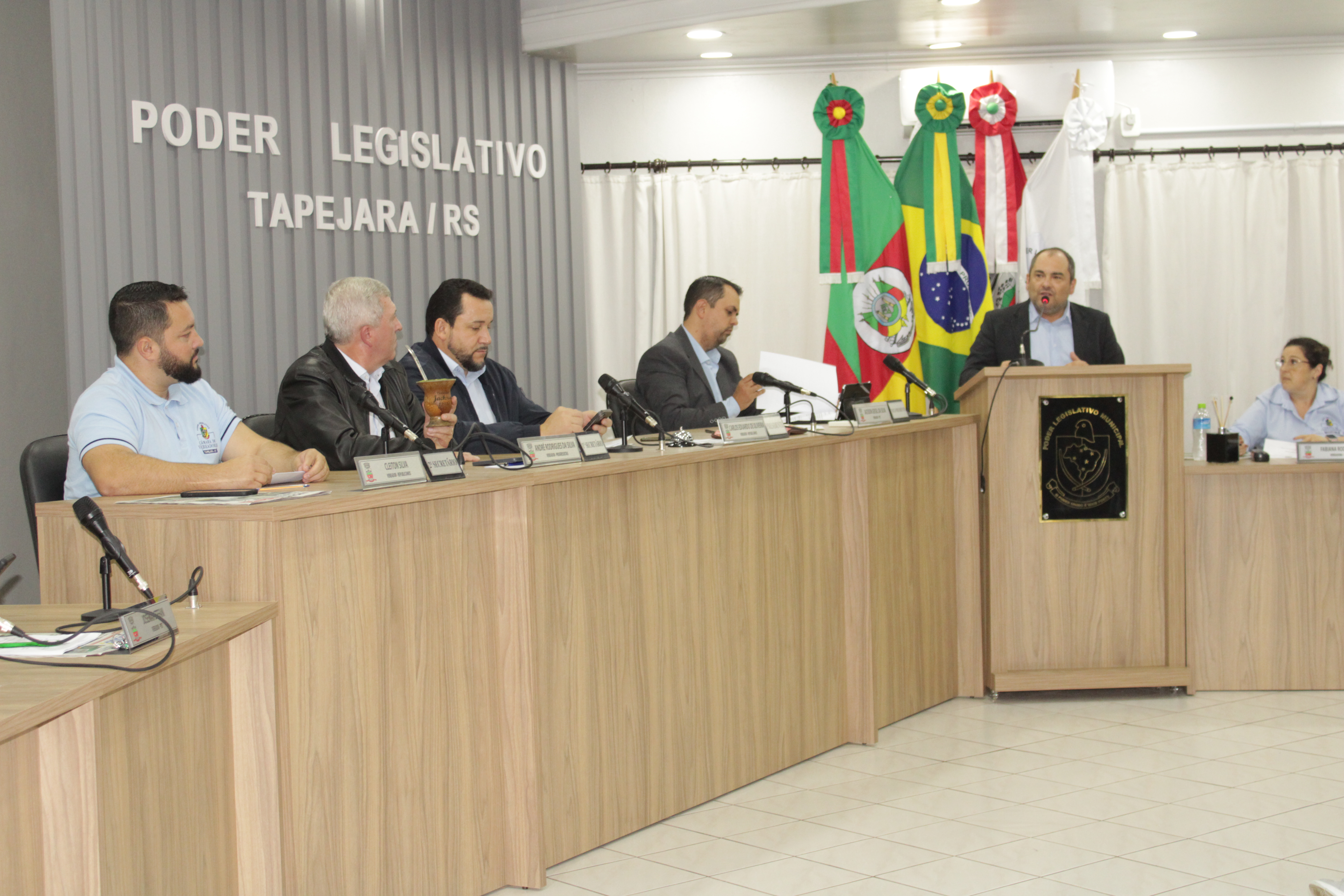 - Por solicitação do Prefeito Municipal Evanir Wolf, com anuência da Mesa Diretora desta Casa, fundamentado no artigo 41 alínea “o”; e no artigo 219 do nosso Regimento Interno, foi concedido o espaço de 05 minutos para que para que o Prefeito Municipal Evanir Wolf e o Vice Prefeito Rodinei Bruel, juntamente com o representante dos Pilotos de Tapejara: Willian Mioto, representando o Moto Clube de Tapejara: Roberto Urbanski e Representando a Federação Gaúcha de Motocross: Jair Silveira.