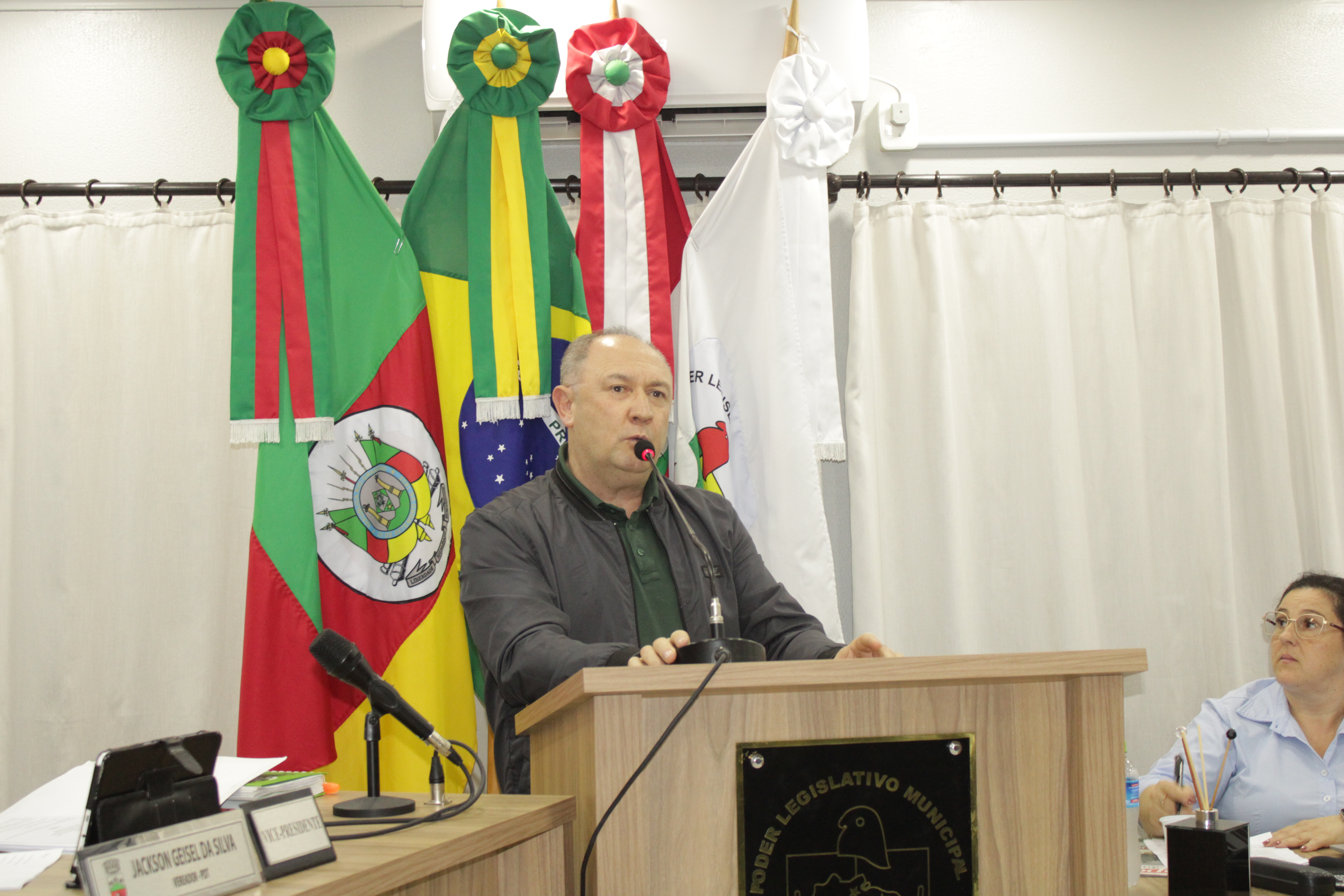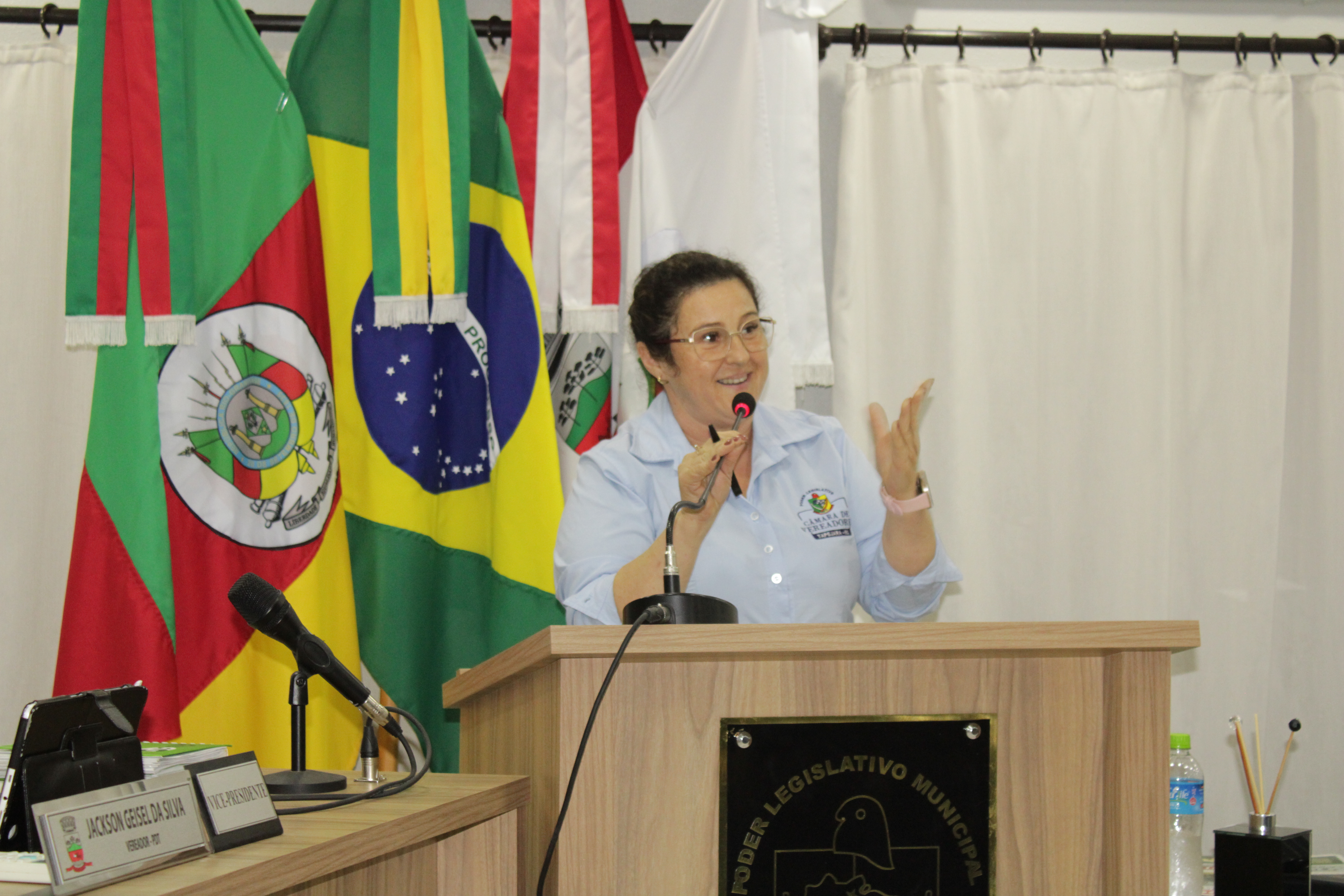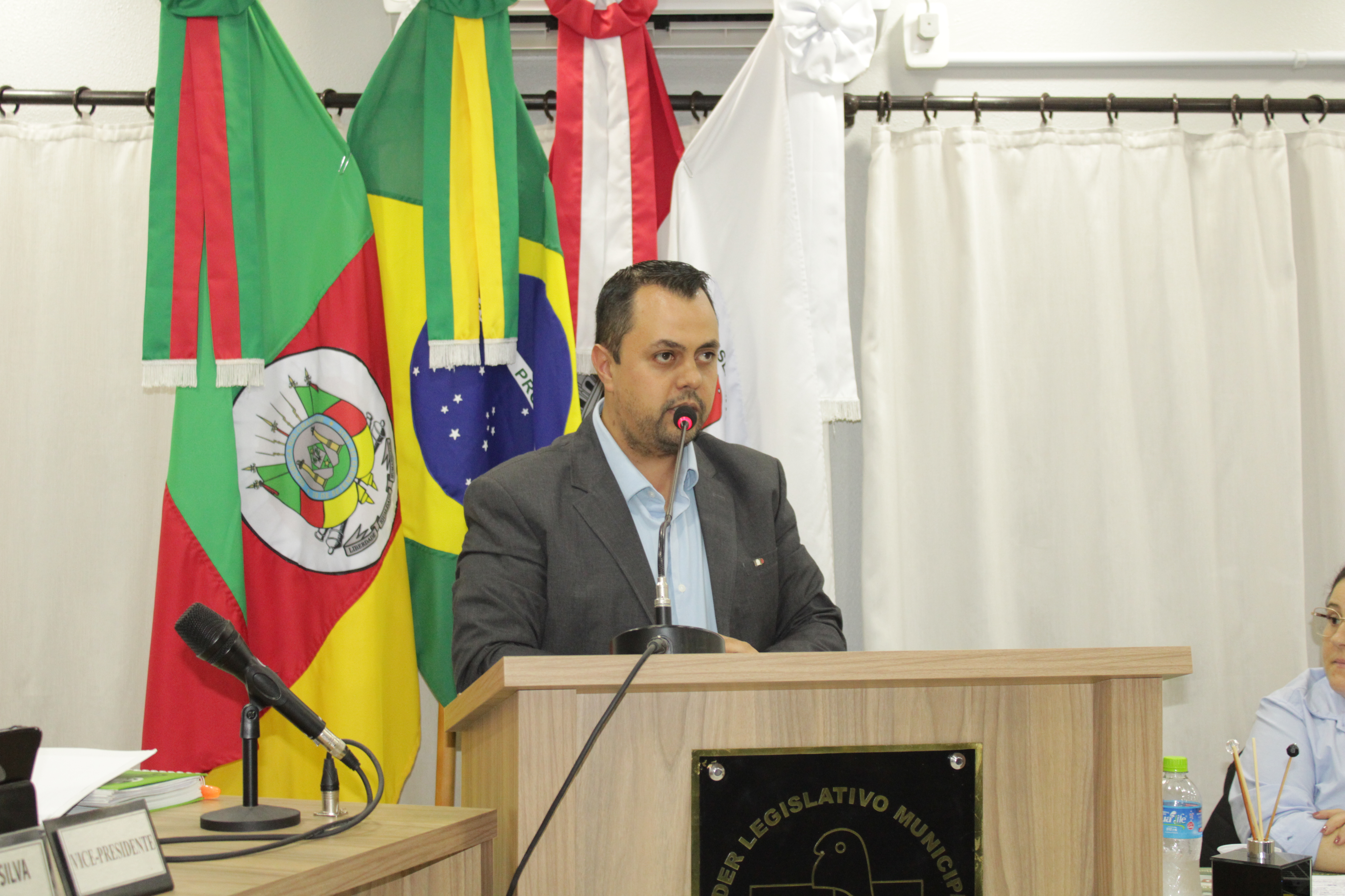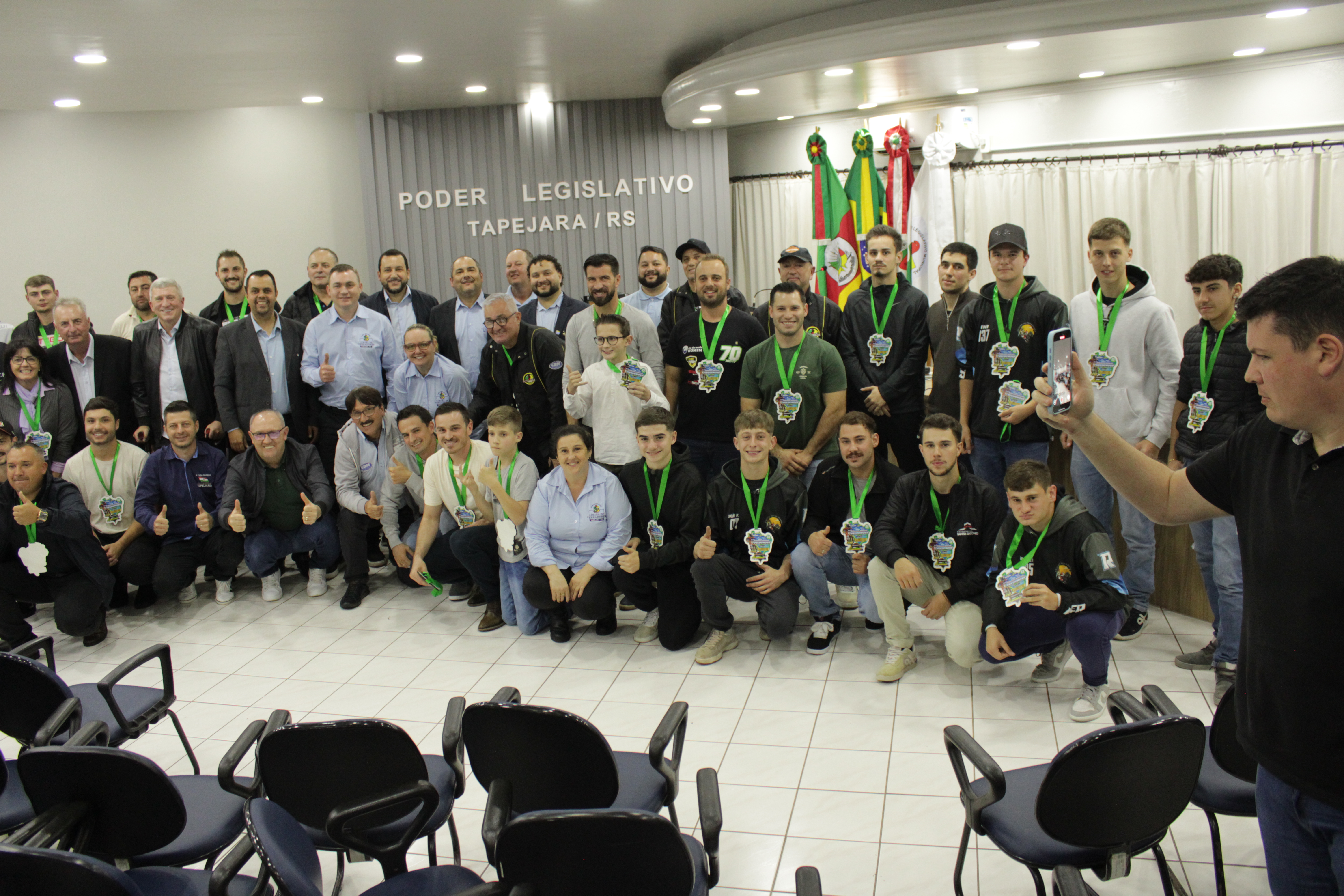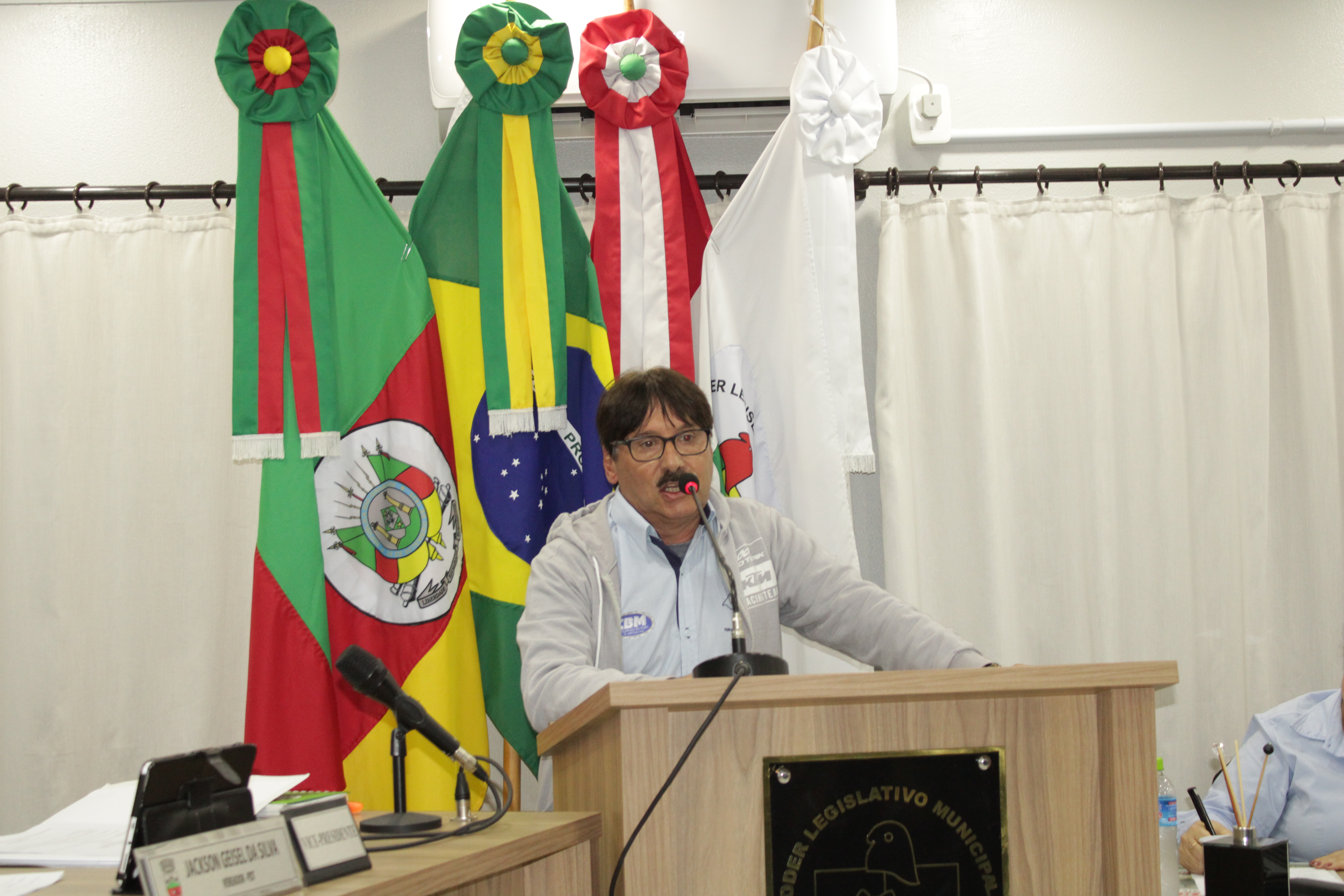 - Por solicitação do Prefeito Municipal Evanir Wolf, com anuência da Mesa Diretora desta Casa, fundamentado no artigo 41 alínea “o”; e no artigo 219 do nosso Regimento Interno, foi concedido o espaço de 05 minutos para que para que o Prefeito Municipal Evanir Wolf e o Vice Prefeito Rodinei Bruel, juntamente com o representante dos Pilotos de Tapejara: Willian Mioto, representando o Moto Clube de Tapejara: Roberto Urbanski e Representando a Federação Gaúcha de Motocross: Jair Silveira.