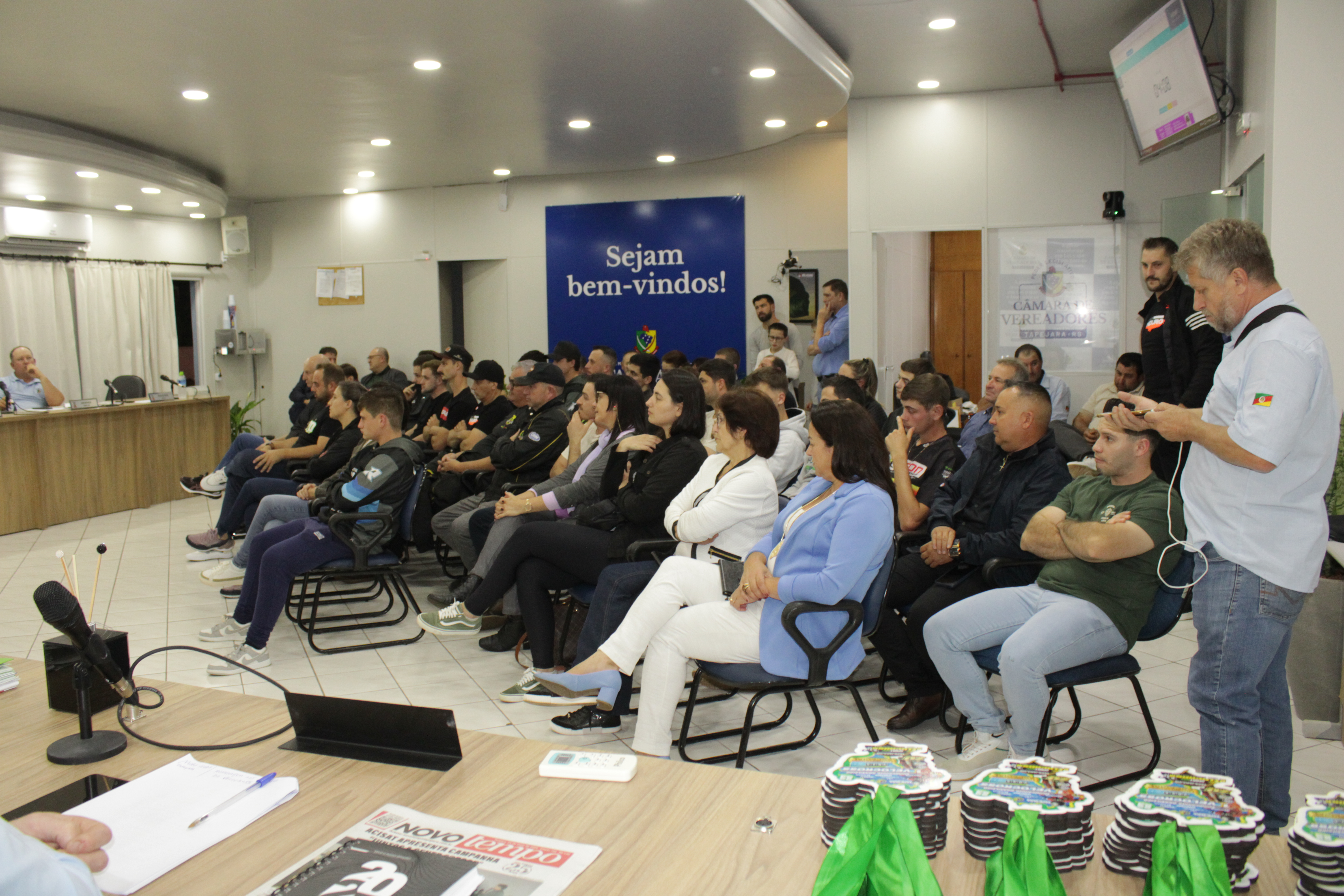 O Presidente Carlos Eduardo de Oliveira (Edu) agradeceu a presença de todos os pilotos que lotaram o plenária da Câmara.