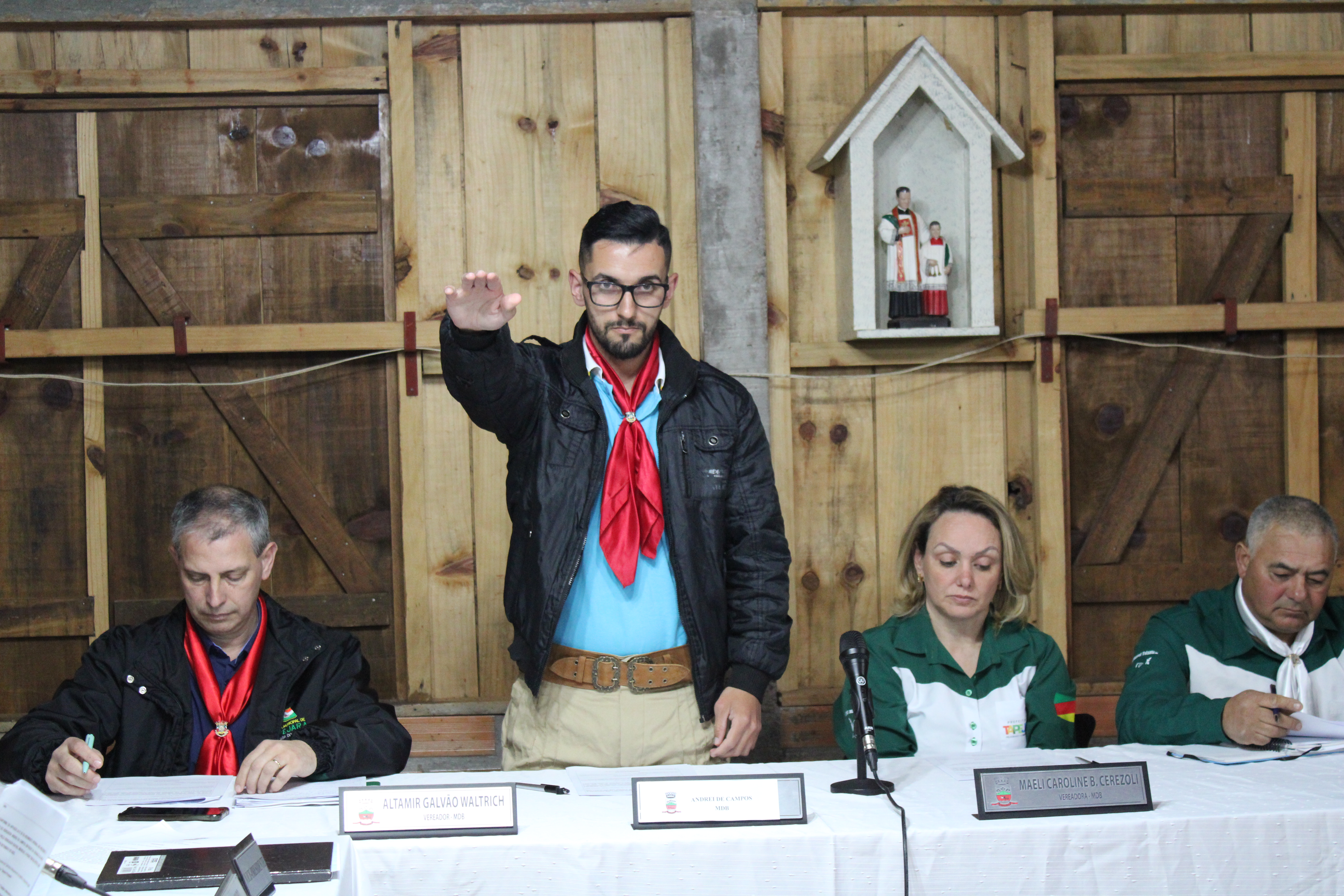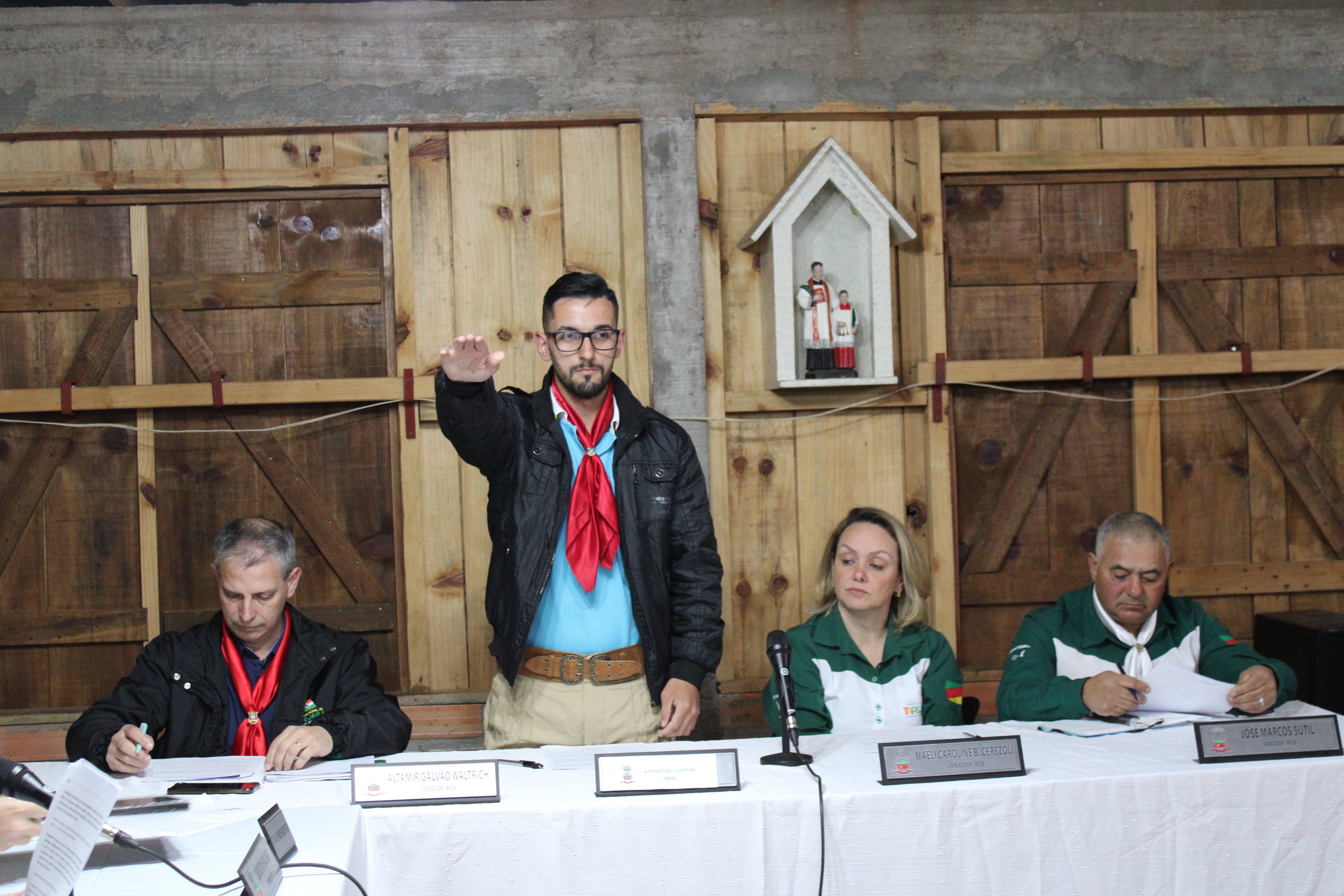 Convido então Gilberto Bortoloto representante do Tropilha Serrana, Bianca Spanhol e Ivania Langaro representantes do CTG, Ildo Aldino Lamb representante do Rota das Araucárias para que façam o uso da palavra.