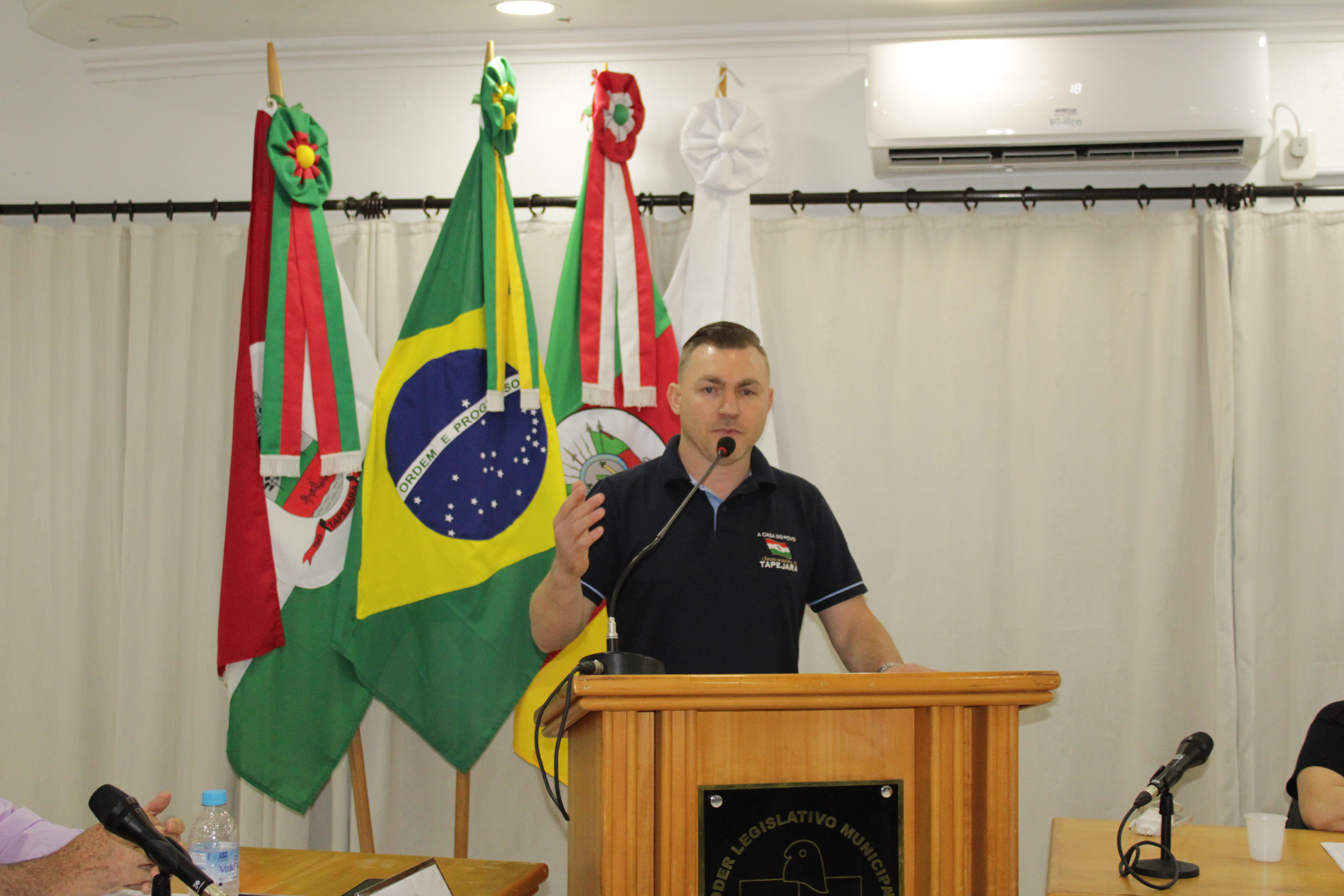 - Na manhã do dia 14/02 no auditório do Centro Administrativo do Sicredi, aconteceu a Solenidade da passagem de comando do 4º Pelotão da Brigada Militar de Tapejara, o 1º Tenente PM Paulo Ricardo de Mello assumiu a liderança da unidade em um evento marcado por respeito, compromisso e apoio das autoridades locais. O Evento contou com a presença do Presidente do Legislativo Carlos Eduardo de Oliveira, e dos vereadores André Rodrigues da Silva e Jackson Geisel da Silva.