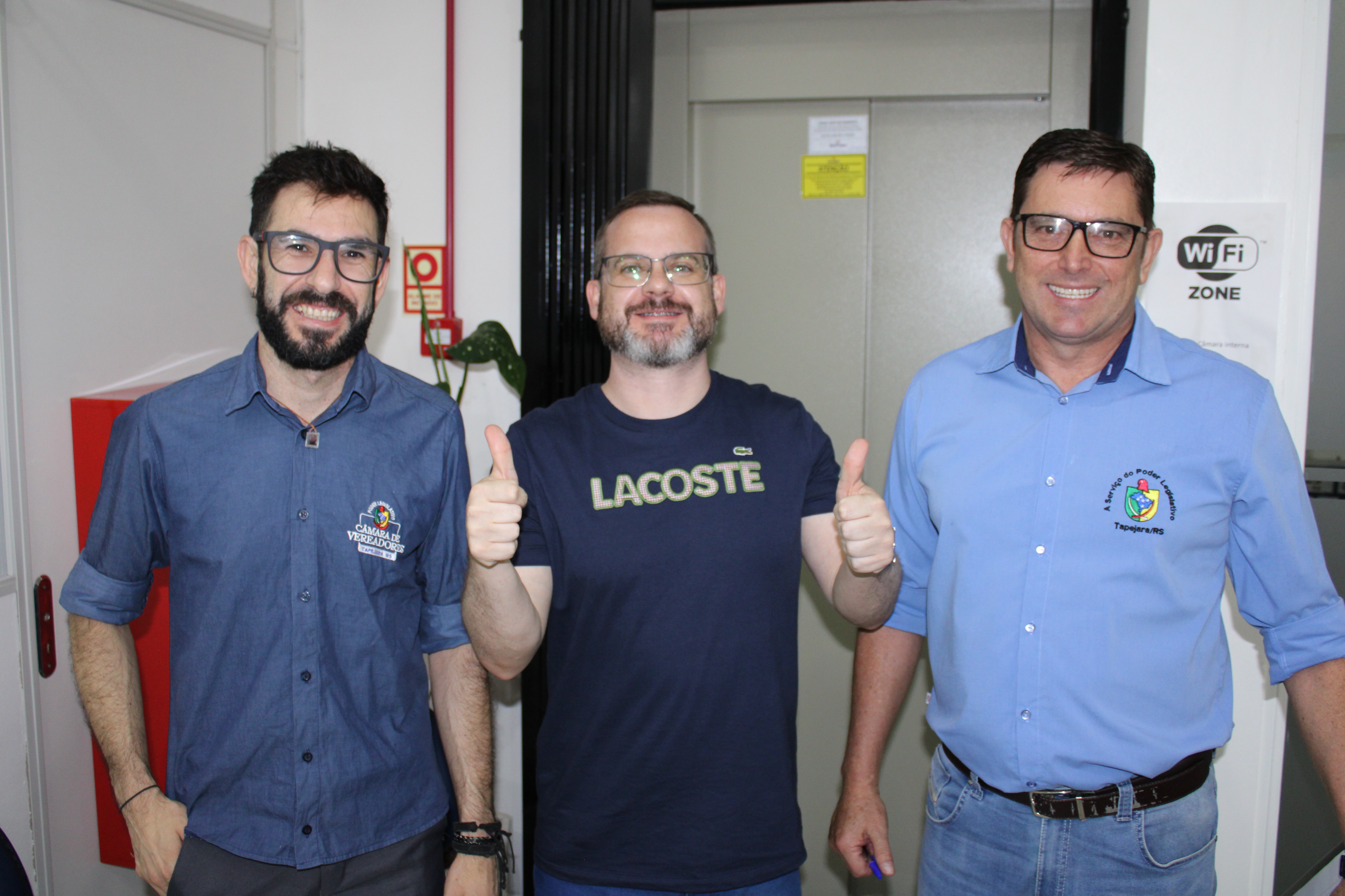 - No dia 12/02, o Presidente do Legislativo Carlos Eduardo de Oliveira juntamente com os servidores Neuri Domingos Coser, Mateus Emanuel de Paula e Pedro Ernesto Radaelli Orsatto, estiveram em Porto Alegre realizando uma visita técnica na Sede da DPM, em seguida estiveram no Gabinete da Deputada Franciane Bayer e por último no Gabinete do Secretário Estadual da Habitação Carlos Gomes.